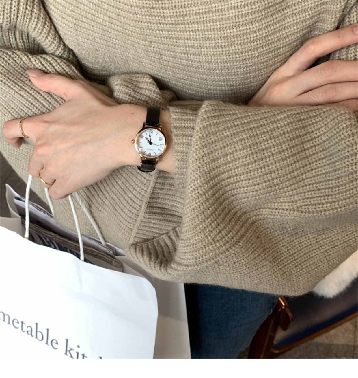 Кварцевые женские часы, французский стиль, простой и элегантный дизайн, изысканный стиль