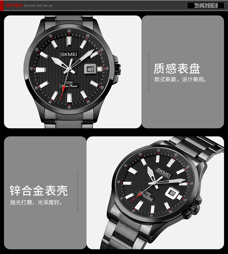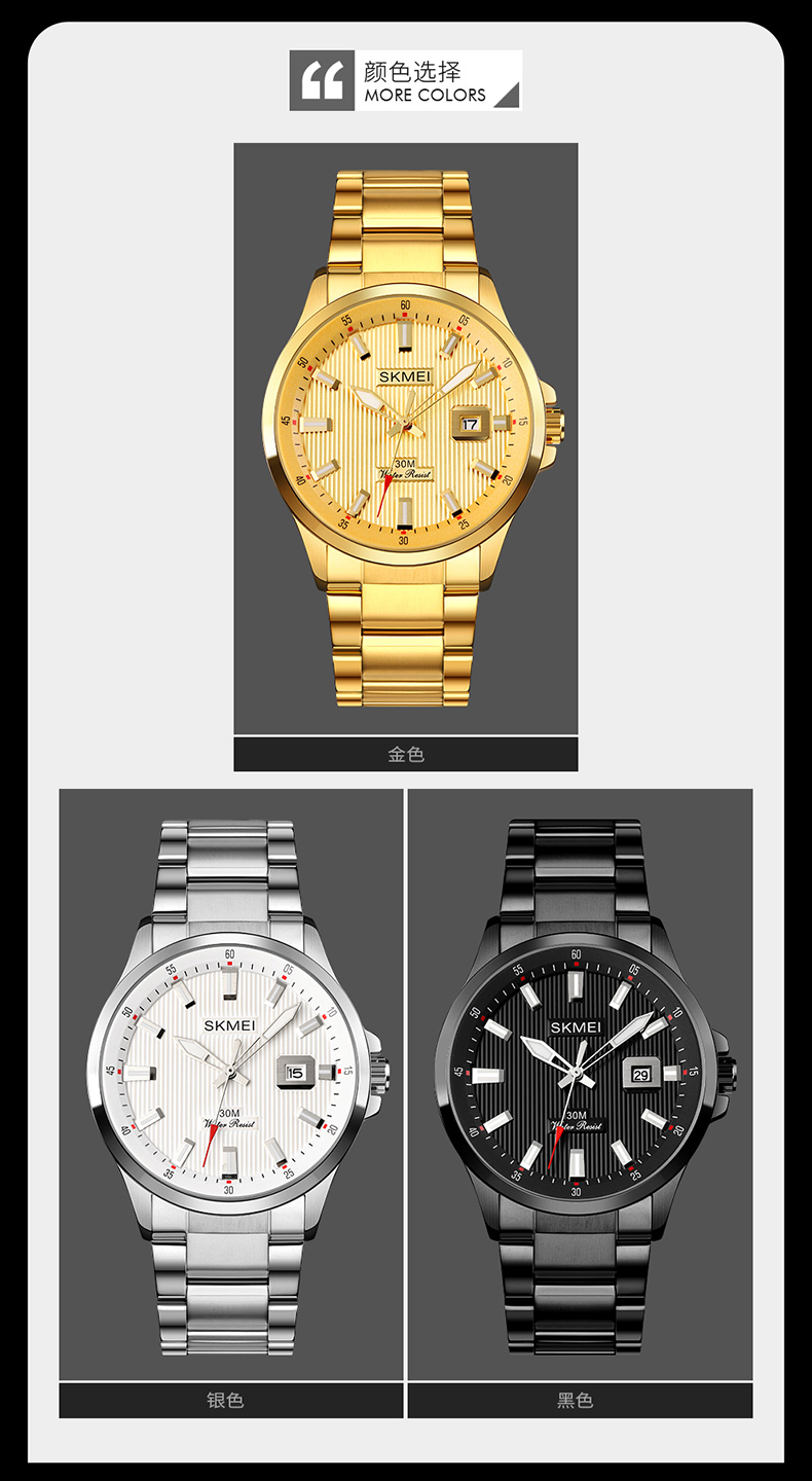 Skmei/时刻美 Мужской водонепроницаемый ретро трендовый модный календарь для отдыха, кварцевые часы, 2023