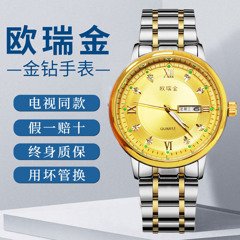 Телевидение того же самого eu ruijin diamond watch All -ore -gold drill watch анти -бумажные водонепроницаемые мужчины и смотрите подлинные