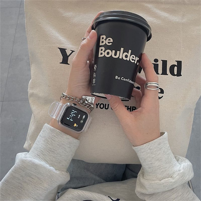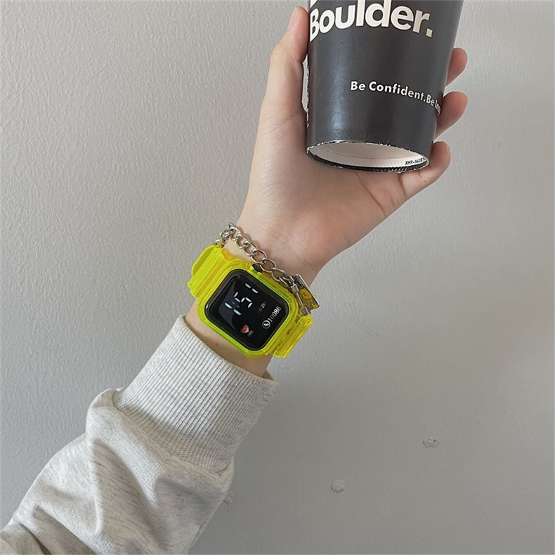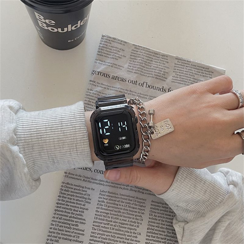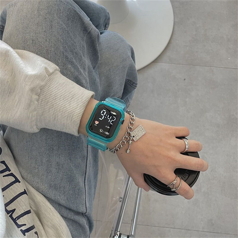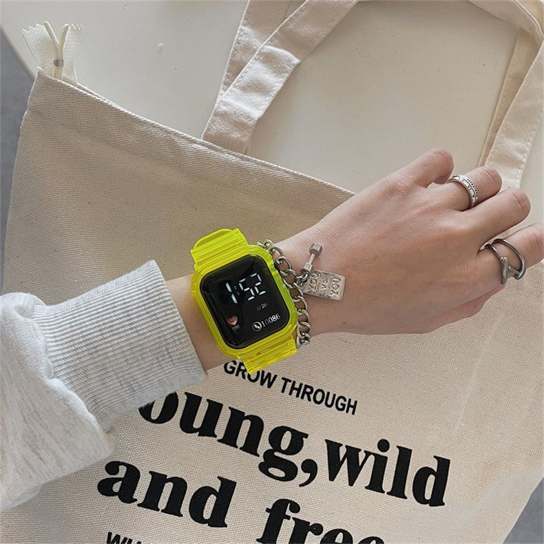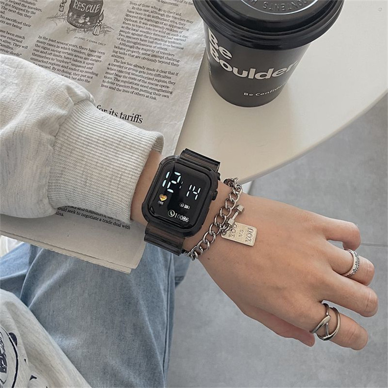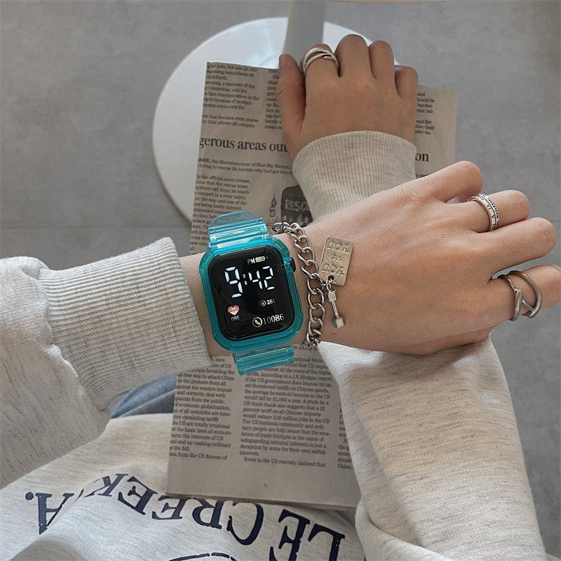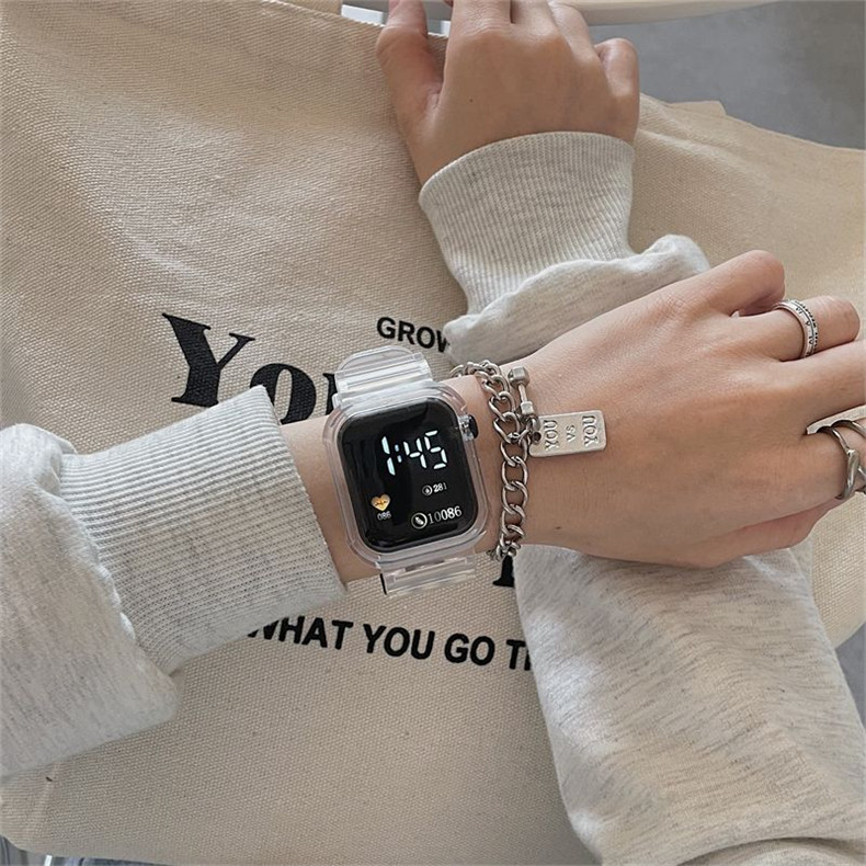 Прозрачные водонепроницаемые небольшие дизайнерские высококачественные квадратные универсальные электронные мужские часы подходит для мужчин и женщин