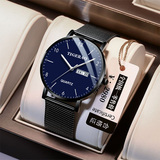 Ультратонкие мужские часы, водонепроницаемый механический календарь, в корейском стиле, полностью автоматический