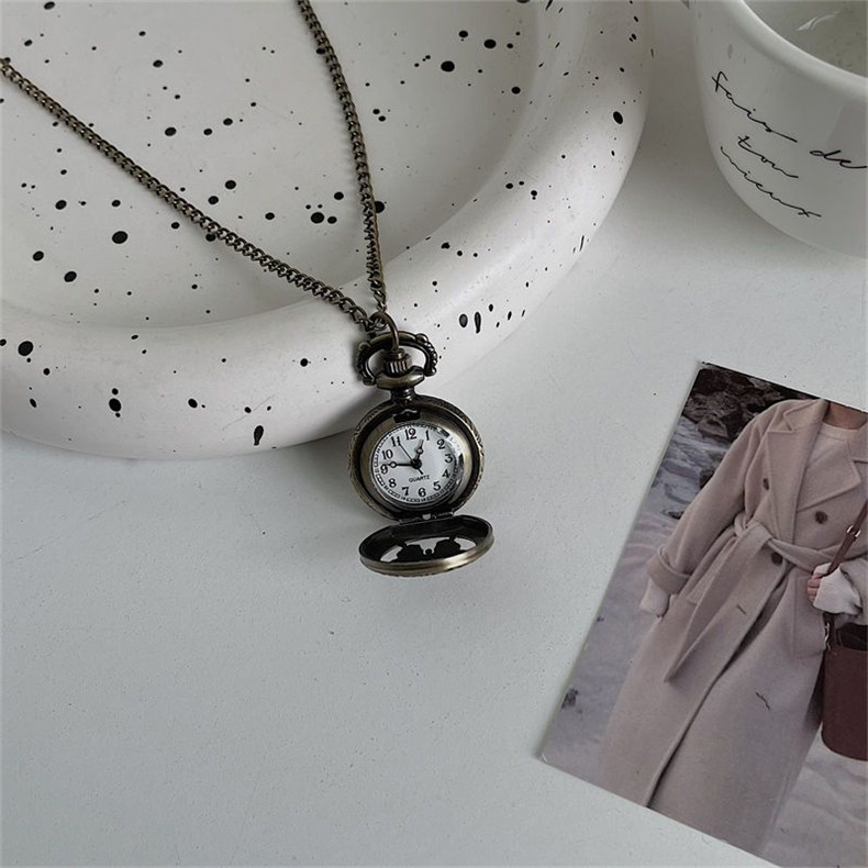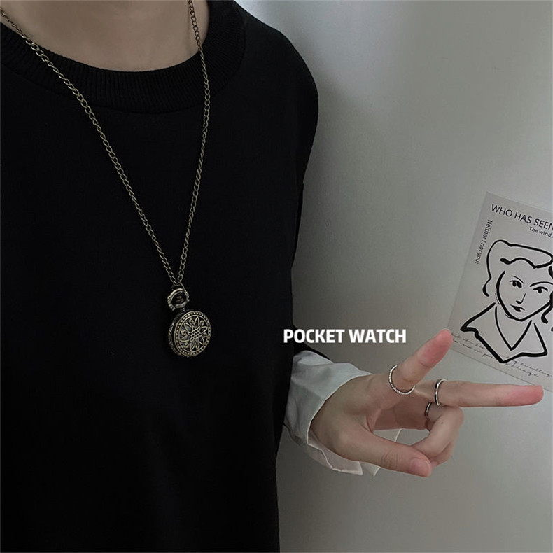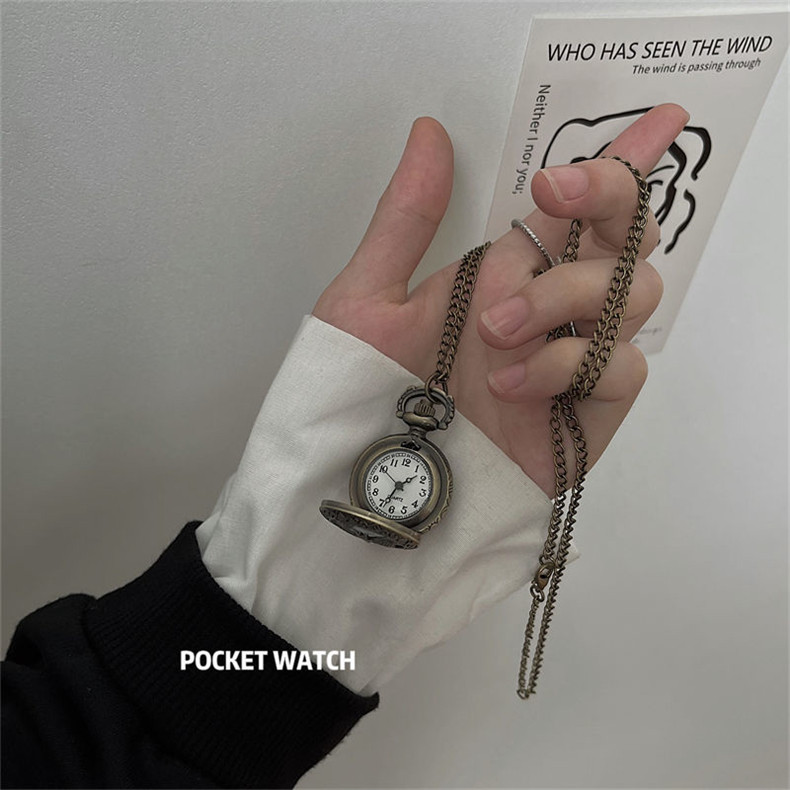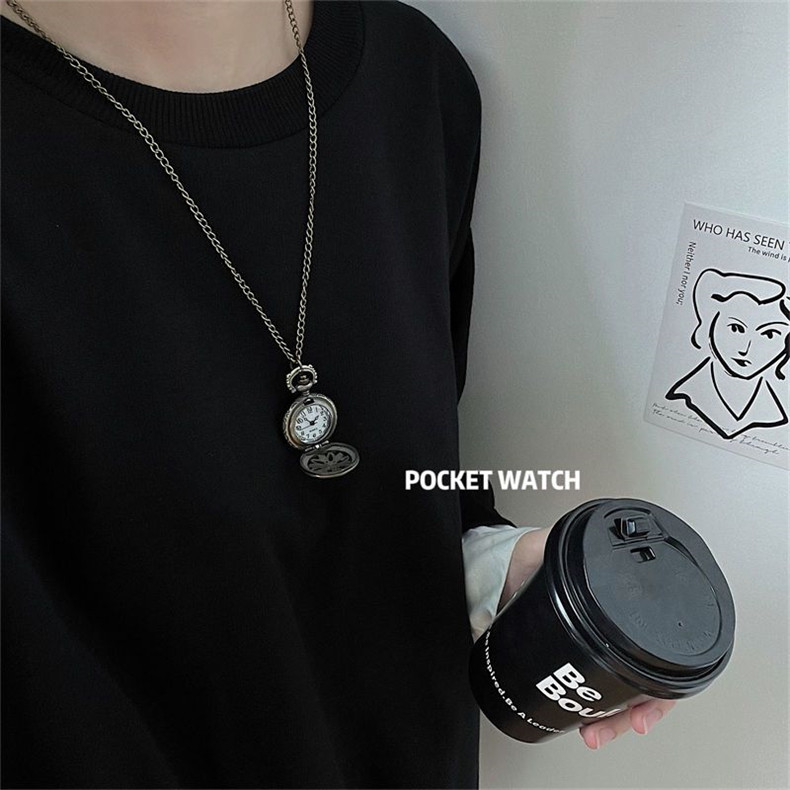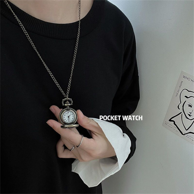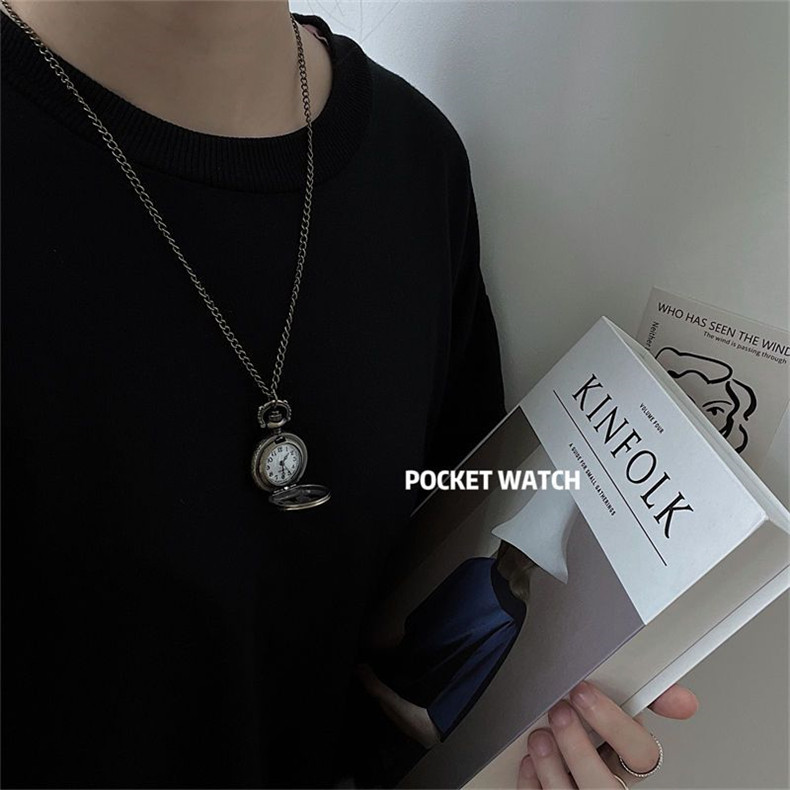 Мужские часы подходит для мужчин и женщин, карманные часы, ретро электронное механическое ожерелье, трендовые кварцевые часы для влюбленных, женский стиль, в корейском стиле, простой и элегантный дизайн