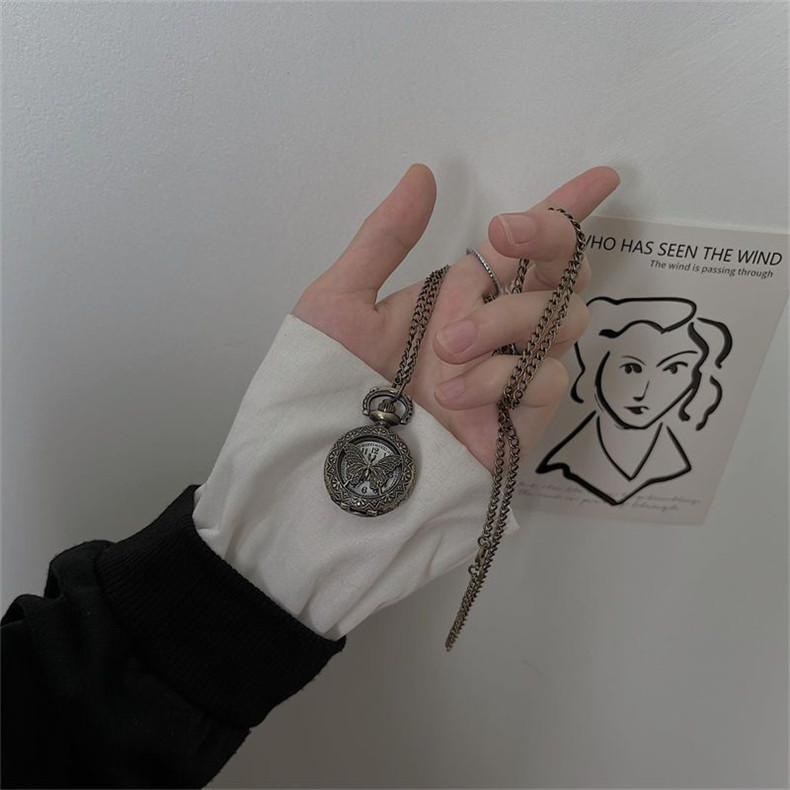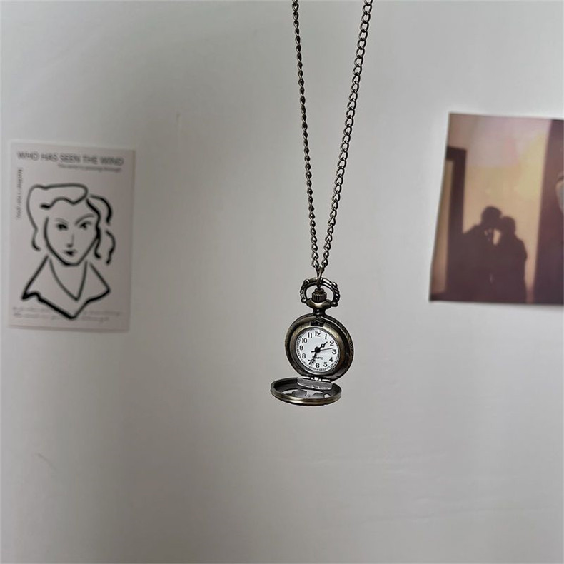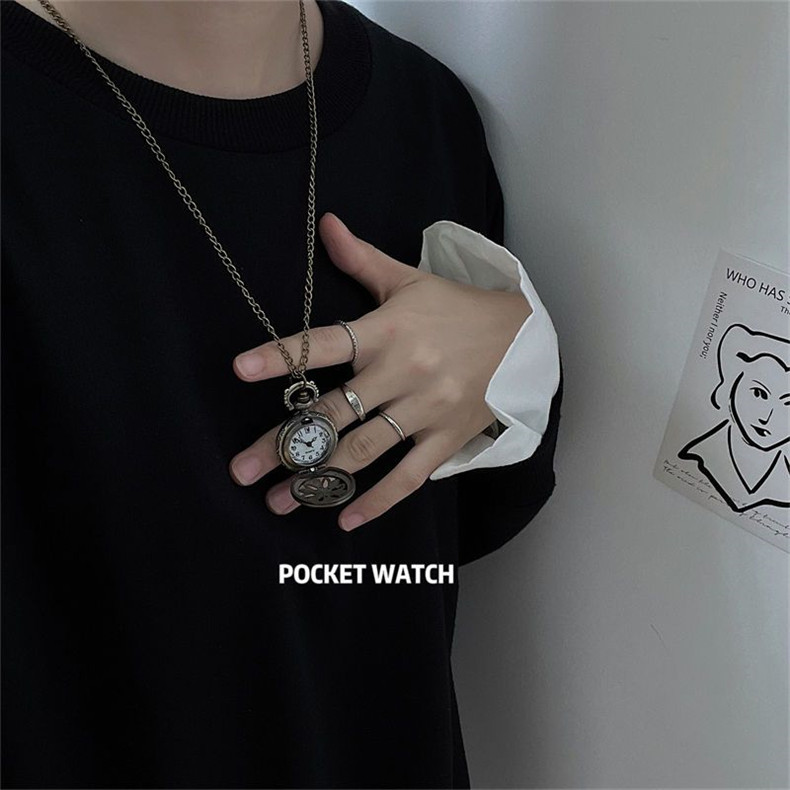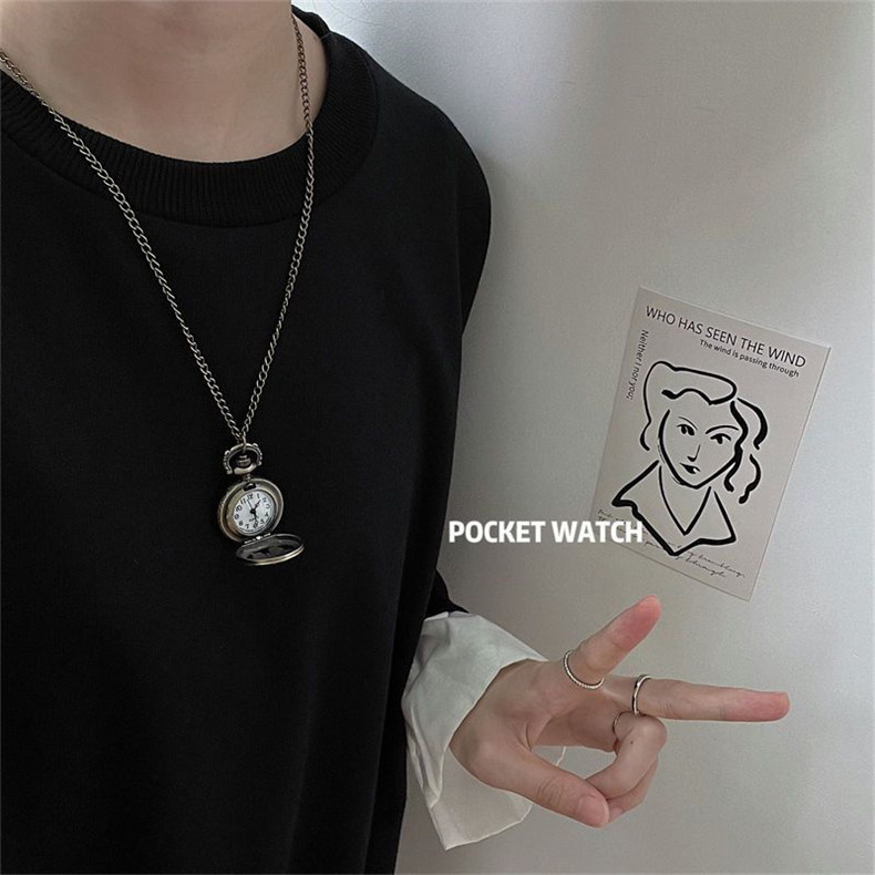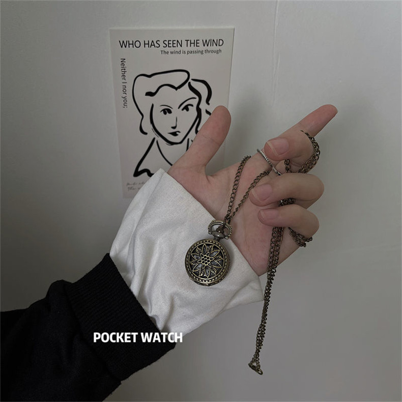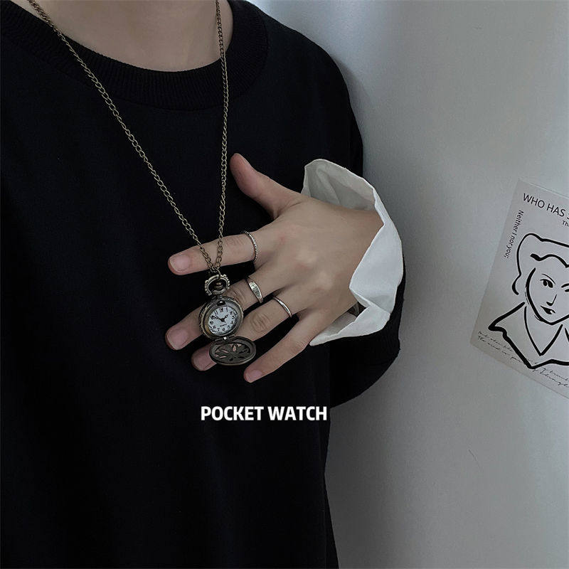 Мужские часы подходит для мужчин и женщин, карманные часы, ретро электронное механическое ожерелье, трендовые кварцевые часы для влюбленных, женский стиль, в корейском стиле, простой и элегантный дизайн