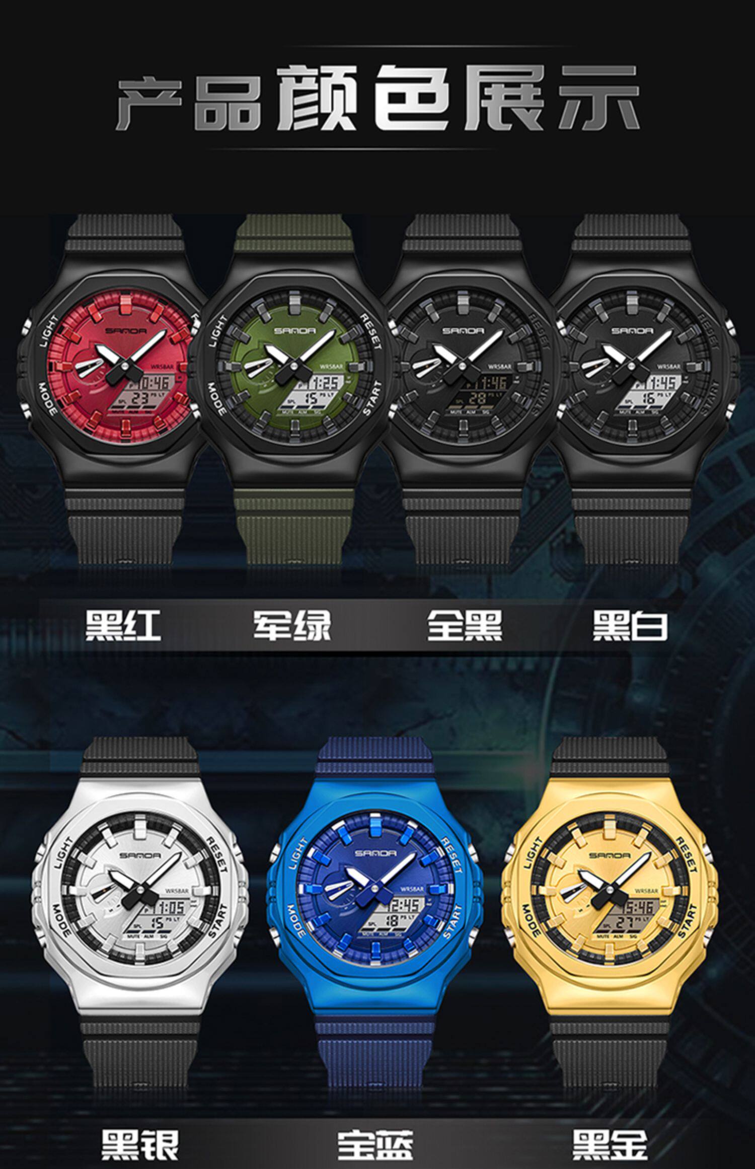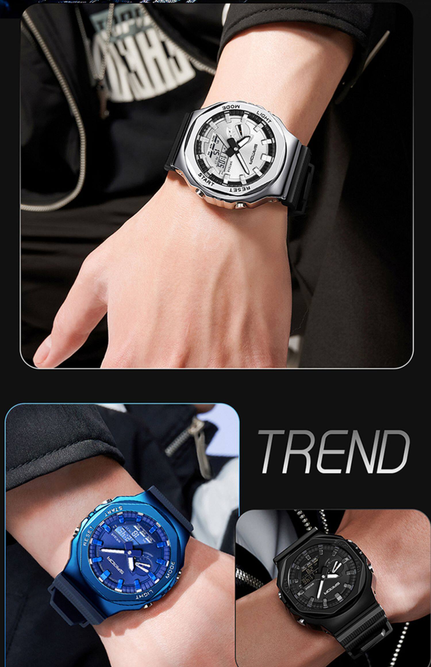 Спортивные универсальные механические электронные мужские часы, коллекция 2023