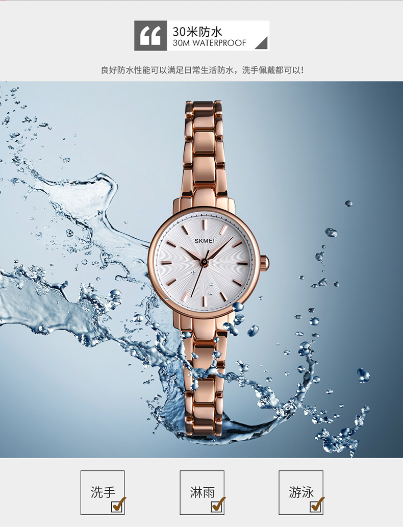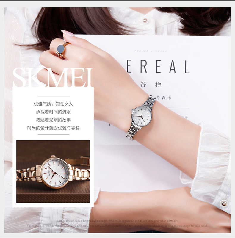 Skmei/时刻美 Водонепроницаемые маленькие кварцевые часы, легкий роскошный стиль, простой и элегантный дизайн, 2023