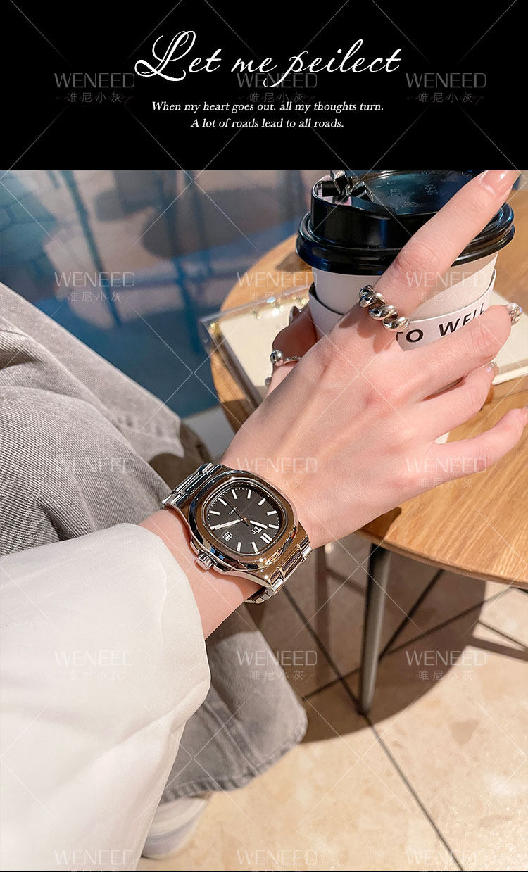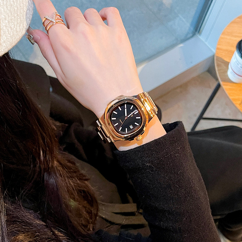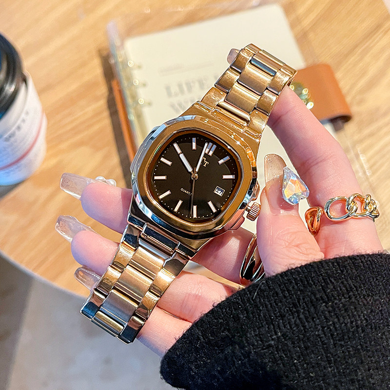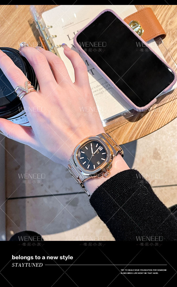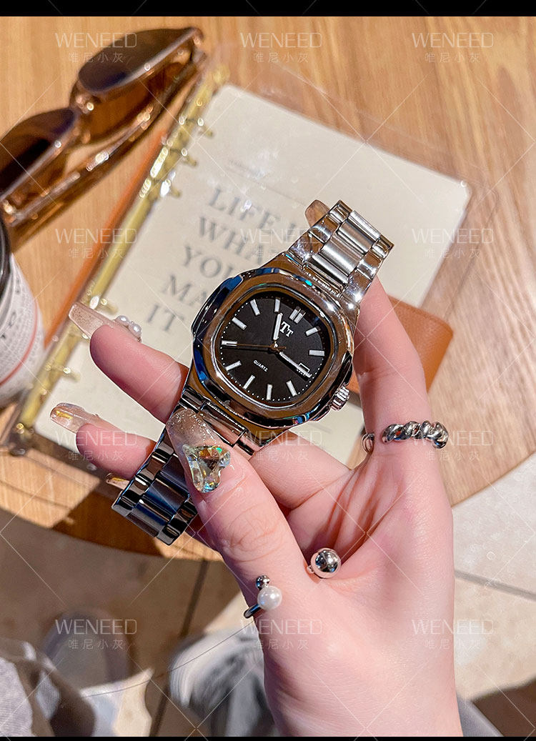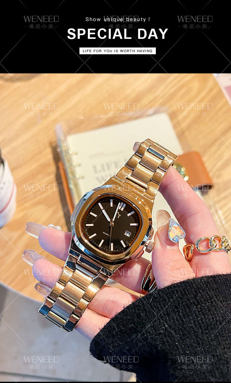 Трендовый квадратный циферблат, модный стальной ремешок, женские часы, легкий роскошный стиль, изысканный стиль