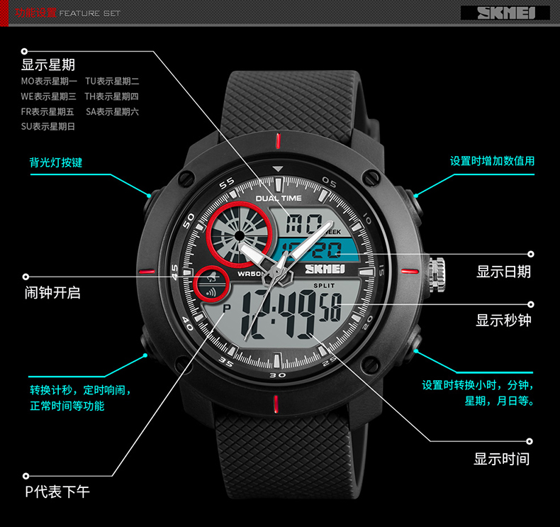 Skmei/时刻美 Модные универсальные водонепроницаемые трендовые цифровые часы, 2023