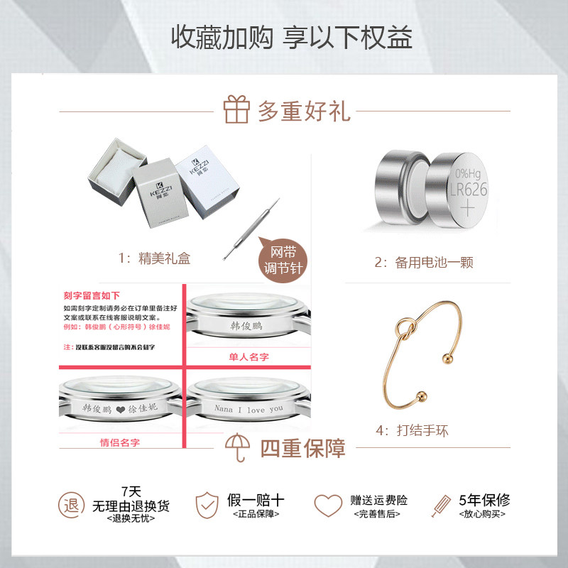 Kezzi Home Portable Watch Женская литературная фанат г -жа Simple Digital Disk Студент Корейская версия с Quartz Fame Watch