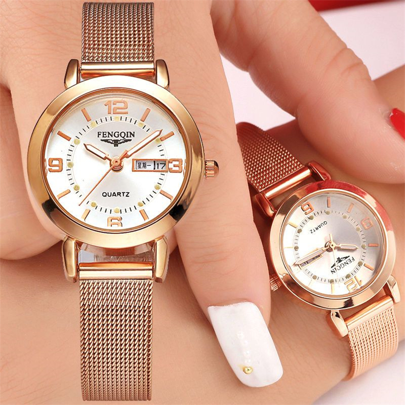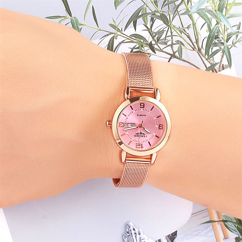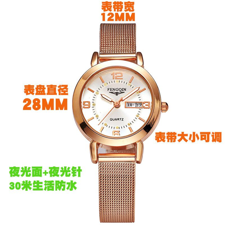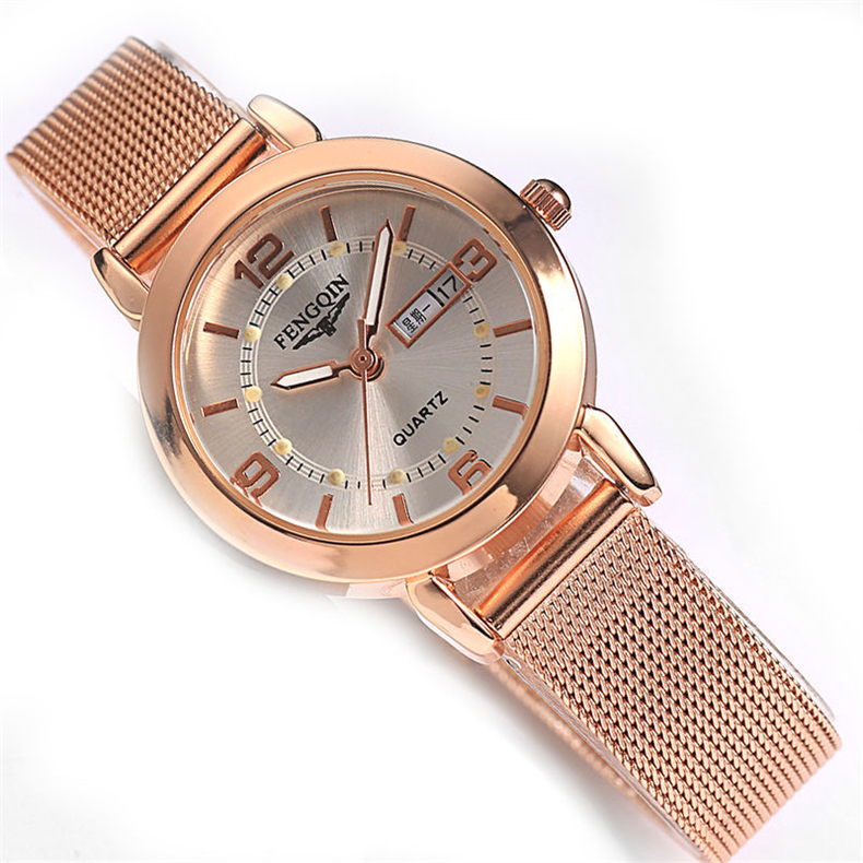 Механические водонепроницаемые кварцевые часы, модный трендовый календарь, стальной ремешок, оптика, в корейском стиле, простой и элегантный дизайн