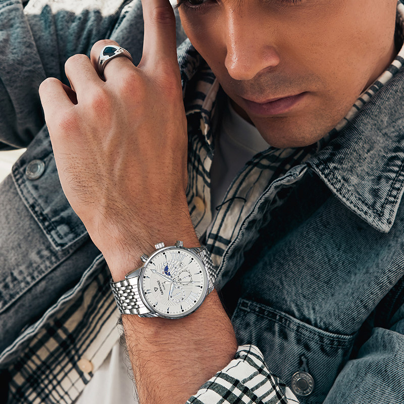 Цвет: BP4-FW-5020-1 Серебряная оболочка белая поверхность стальной ремешок, BP4-FW-5020-2 Серебряная оболочка Черная стальная ремень лица, BP4-FW-5020-4 все черные стальные ремни