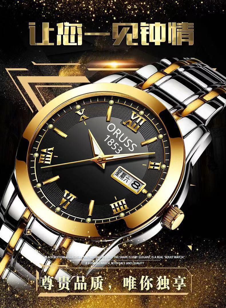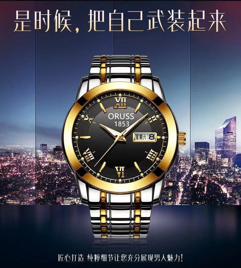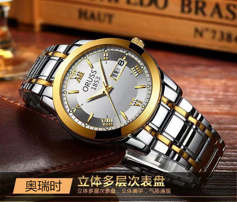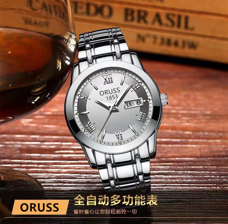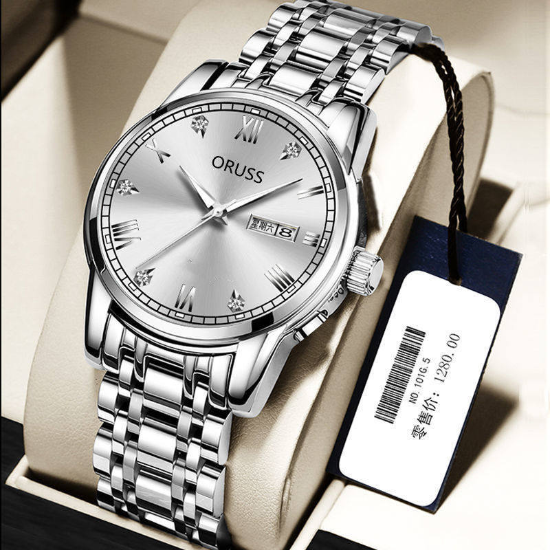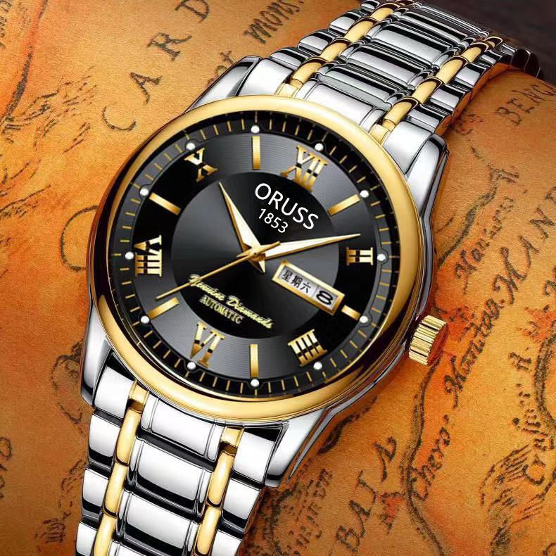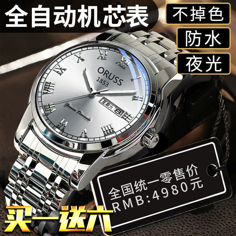 Мужские часы, механические кварцевые часы, водонепроницаемый календарь, модный стальной ремешок, полностью автоматический, изысканный стиль, простой и элегантный дизайн