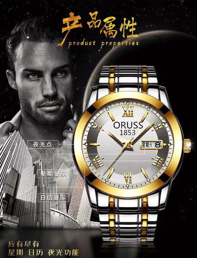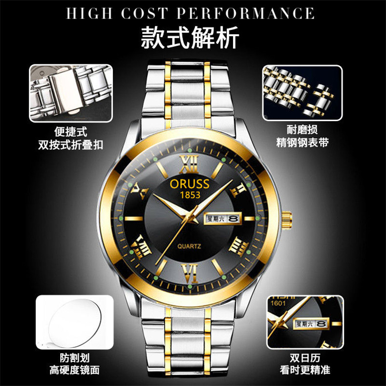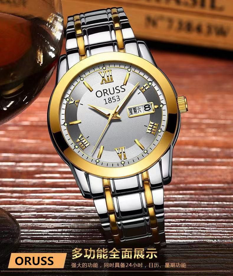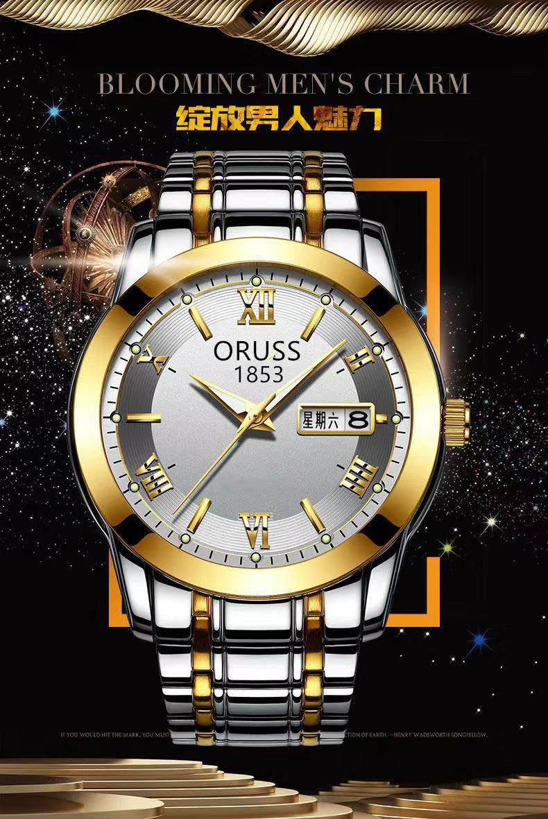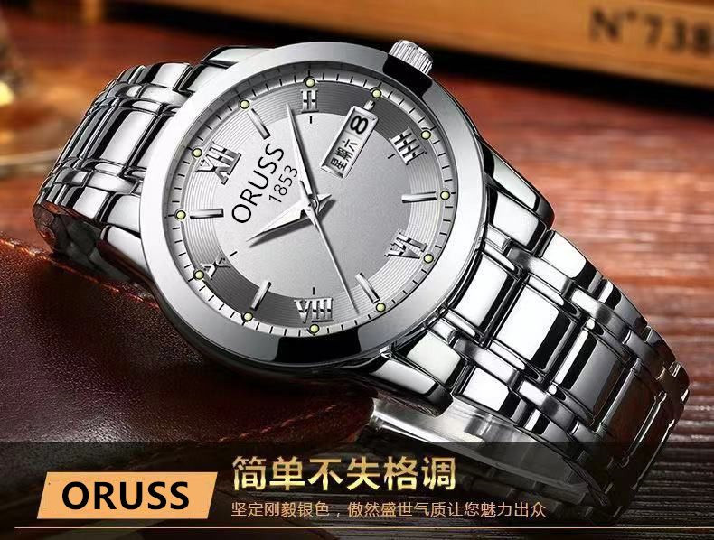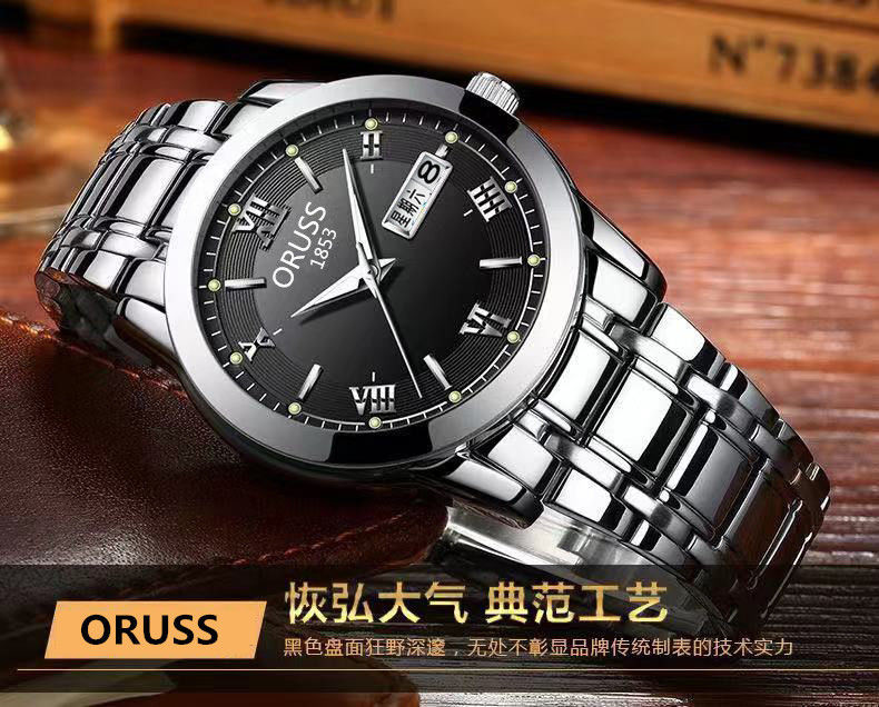 Мужские часы, механические кварцевые часы, водонепроницаемый календарь, модный стальной ремешок, полностью автоматический, изысканный стиль, простой и элегантный дизайн