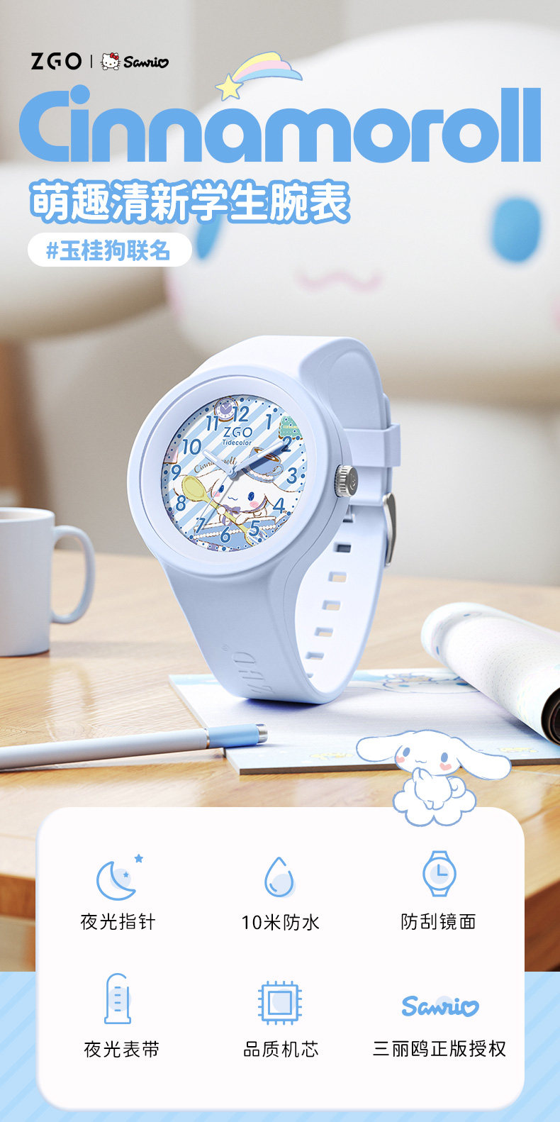 [Санрио искренне] Юмуй собака заперта, наблюдая за наблюдениями, начальные школьники, девочки, девочки, женские водонепроницаемые водонепроницаемые водонепроницаемые