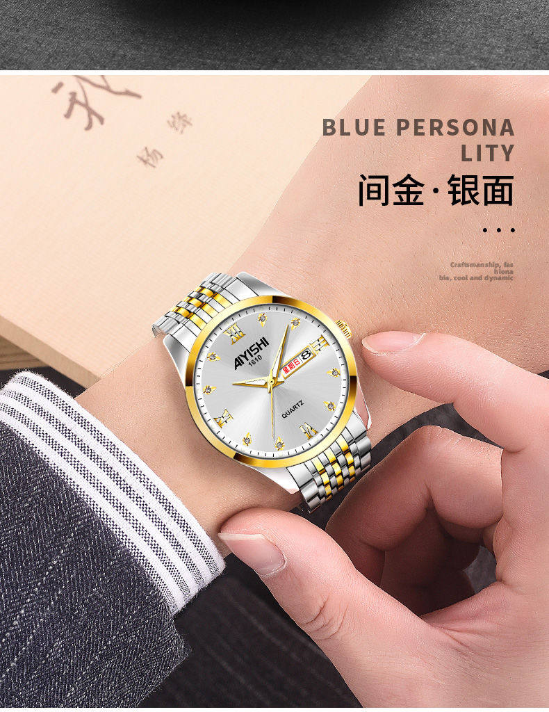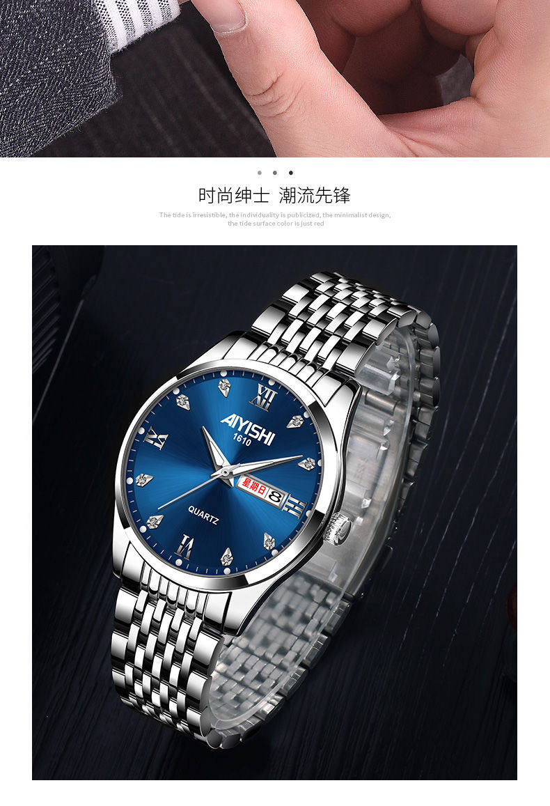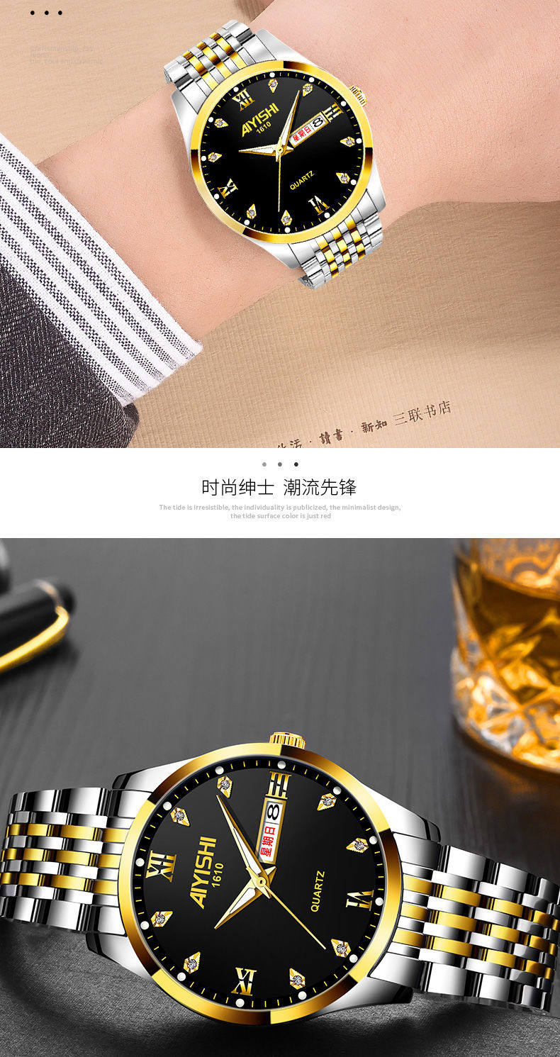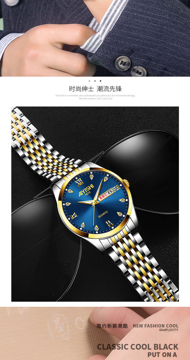 Мужские часы, водонепроницаемый календарь, механический модный трендовый кварцевый стальной ремешок, Швейцария, полностью автоматический, мужской стиль