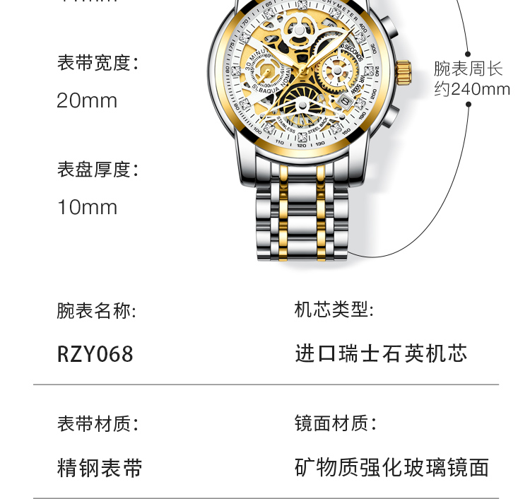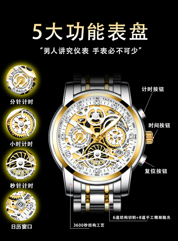 Механические швейцарские часы, велосипедная кассета, водонепроницаемые золотые часы, Швейцария