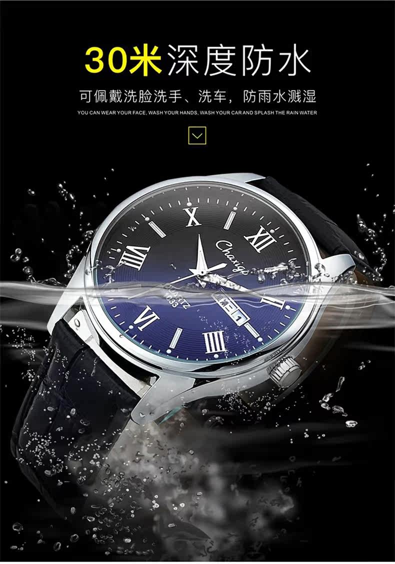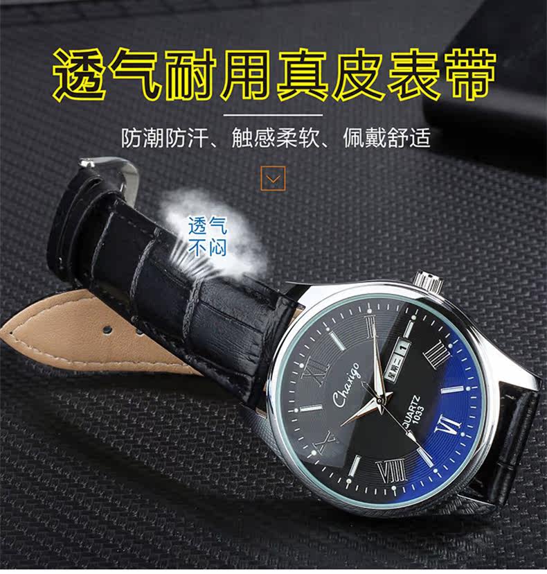 Мужские часы, механические водонепроницаемые модные кварцевые часы, трендовый ремень, полностью автоматический, простой и элегантный дизайн, из натуральной кожи