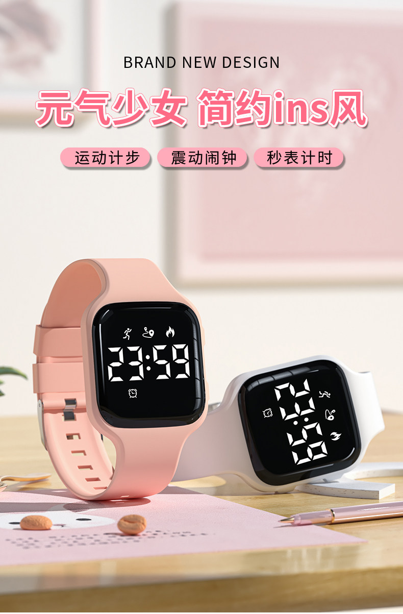 Водонепроницаемые цифровые часы, для средней школы, женский стиль, коллекция 2023, простой и элегантный дизайн