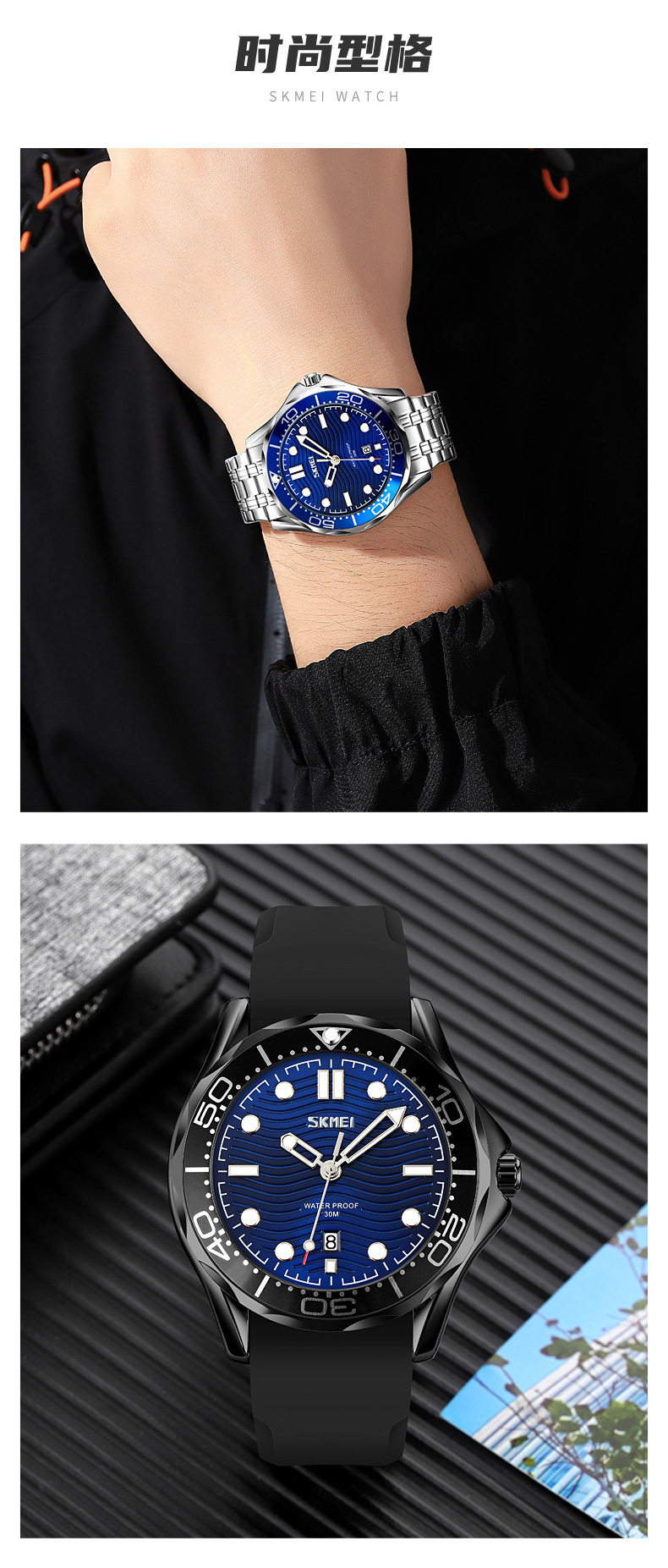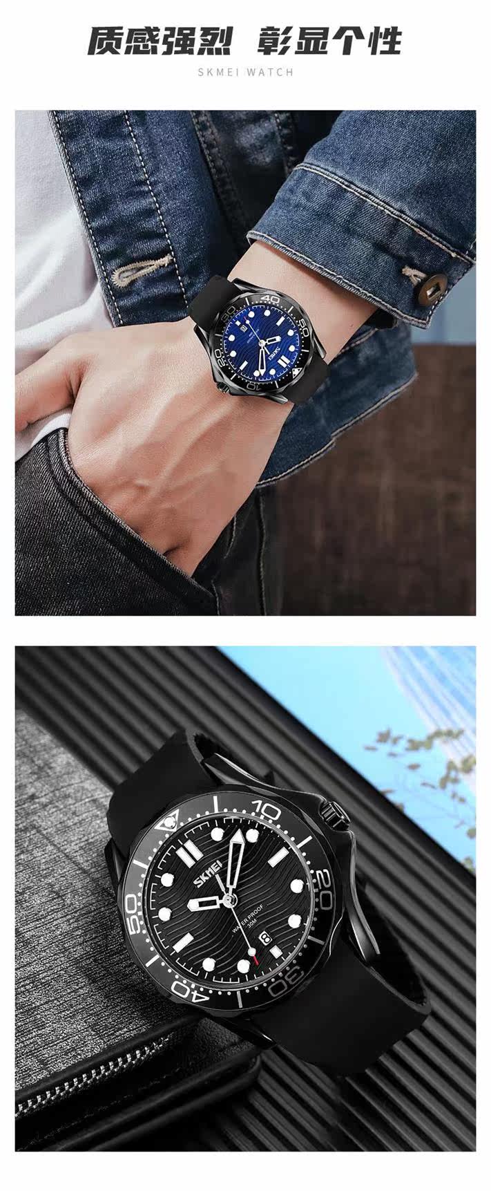 Модные водонепроницаемые кварцевые часы, мужские часы