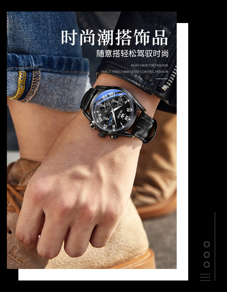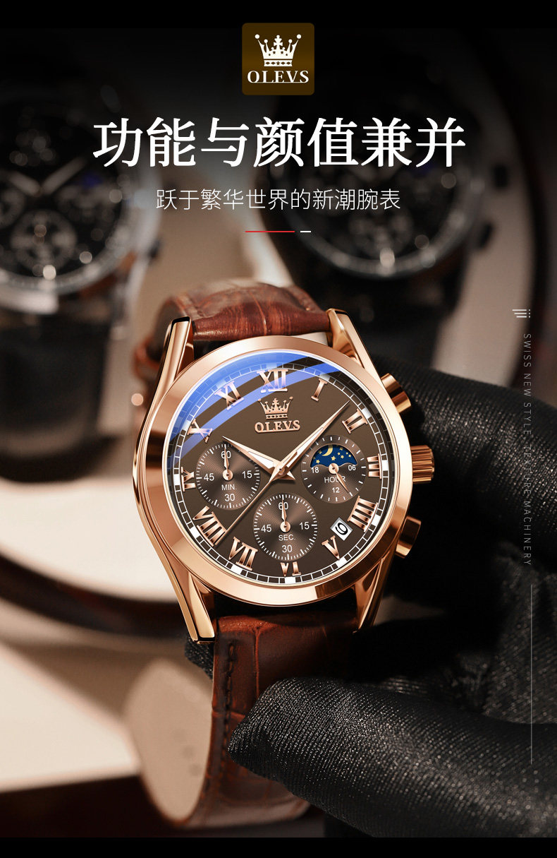 Швейцарские часы, мужские часы, водонепроницаемые механические механические часы, кварцевый электронный ремень
