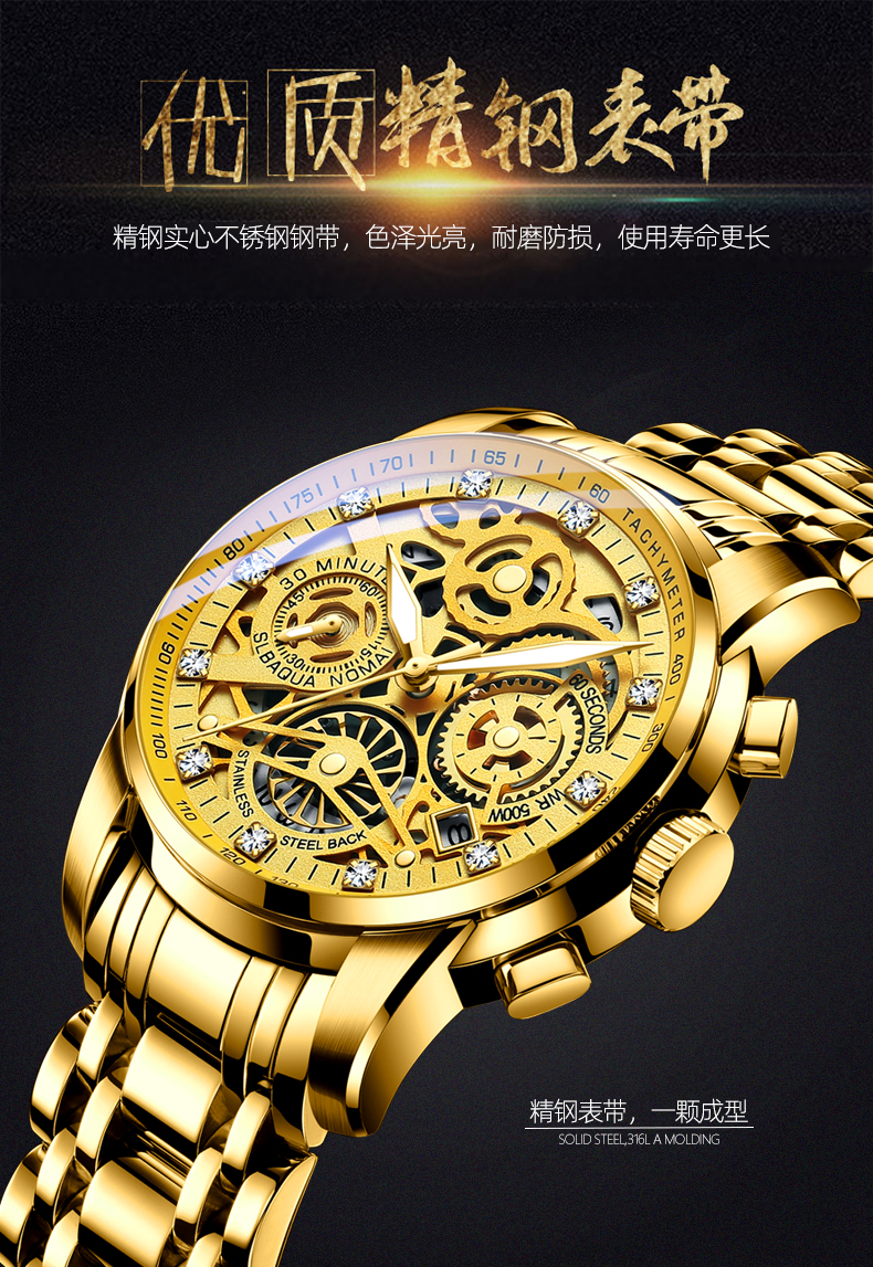 Водонепроницаемые механические трендовые мужские часы для взрослых, Швейцария, полностью автоматический