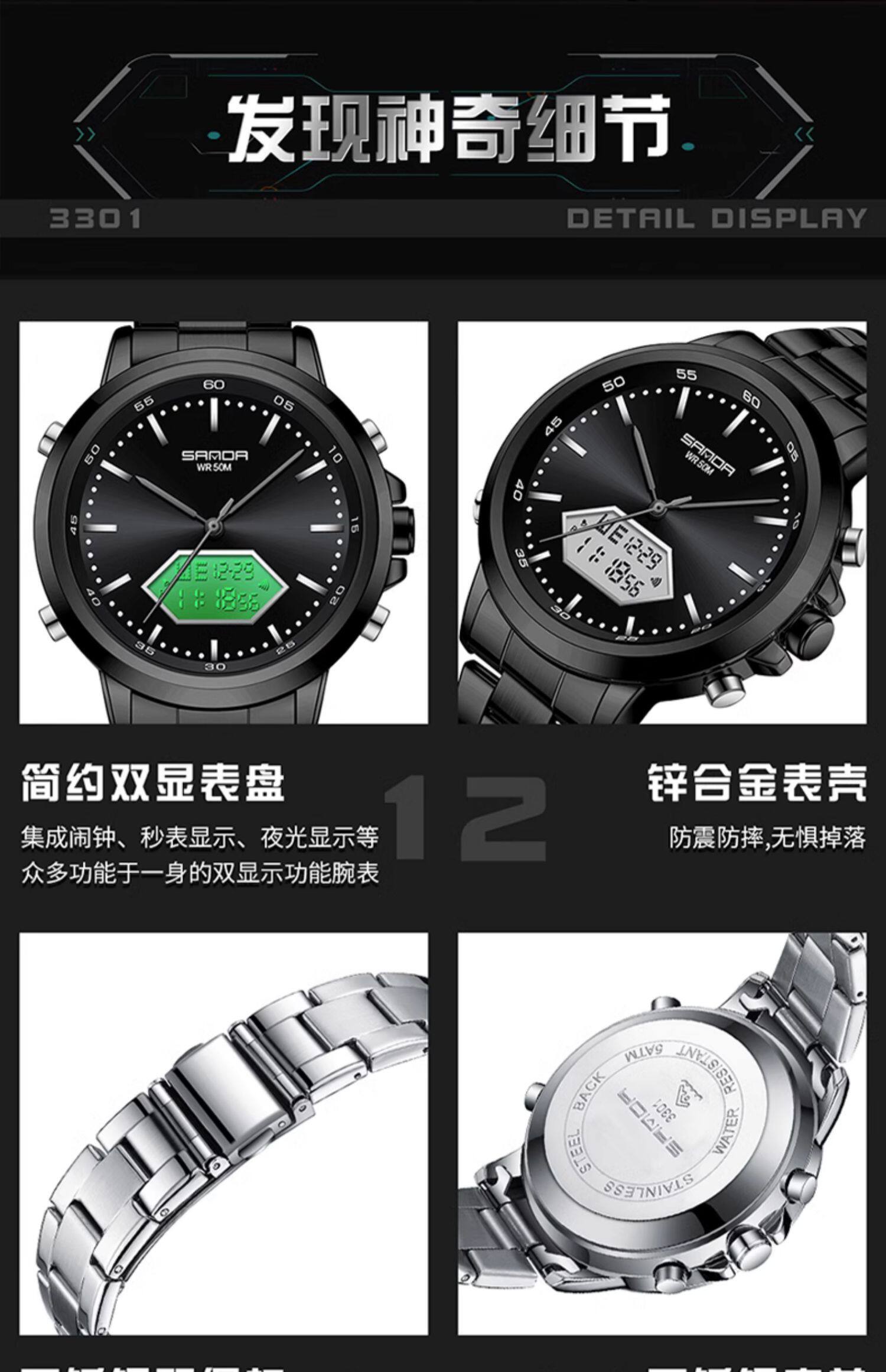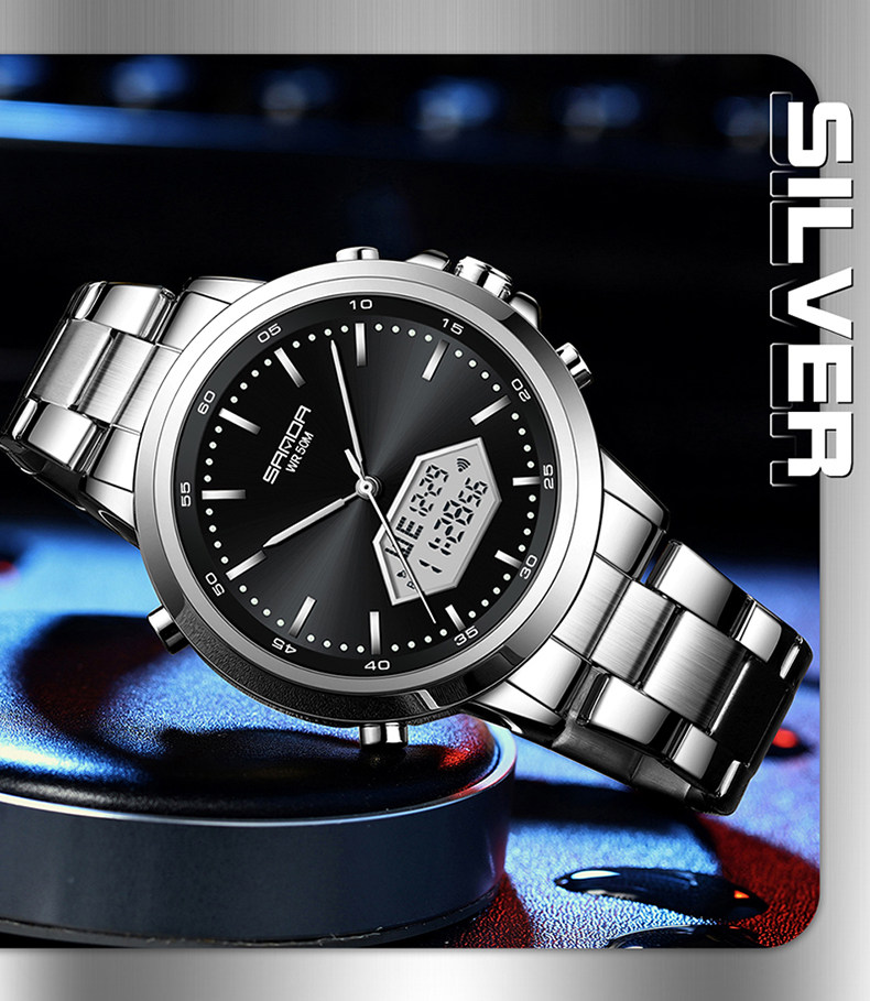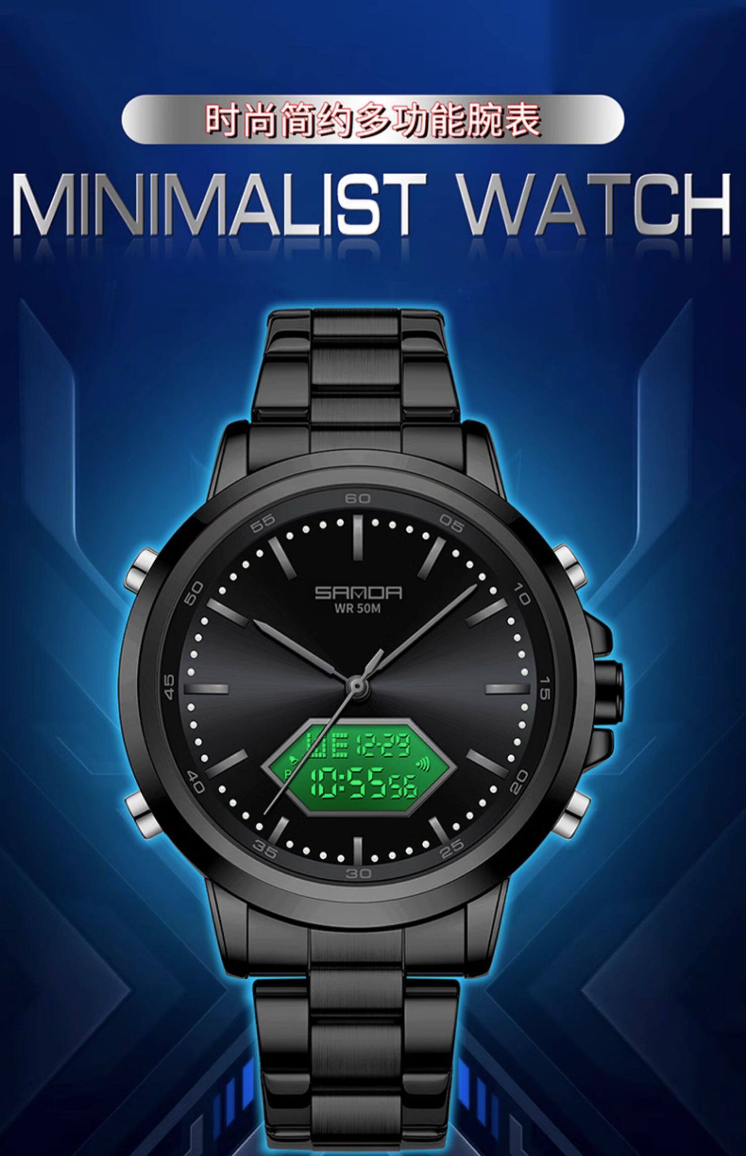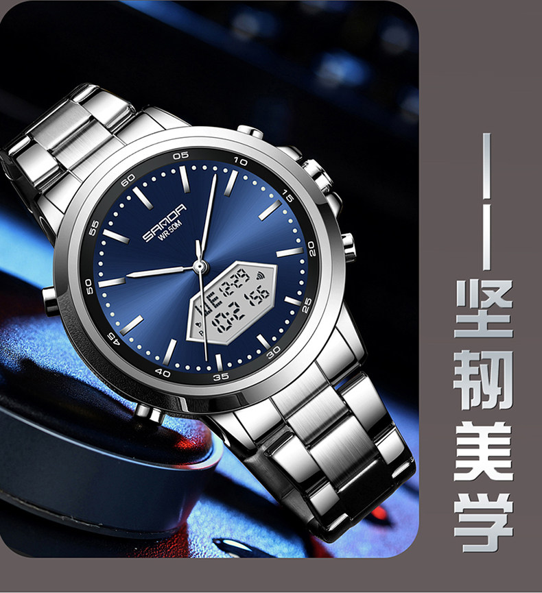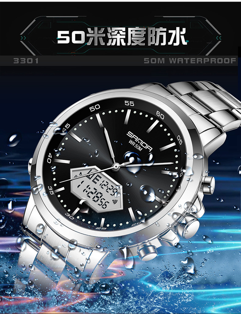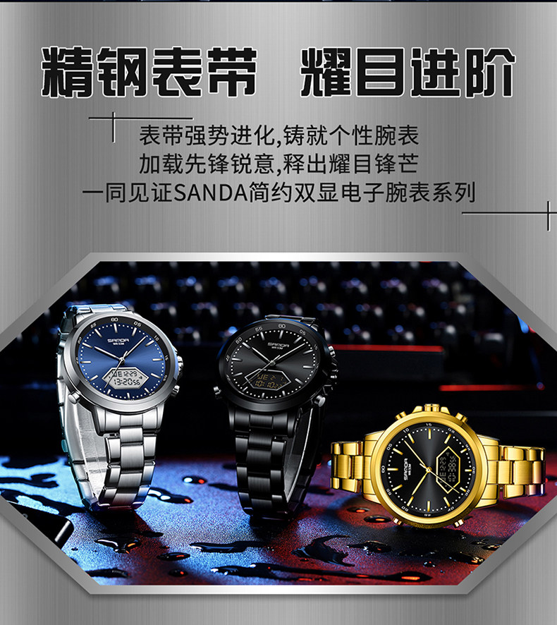 Мужские часы, универсальные цифровые часы, дорожный водонепроницаемый стальной ремешок, для средней школы