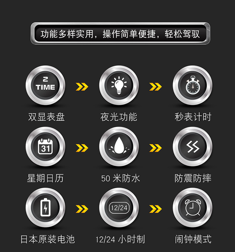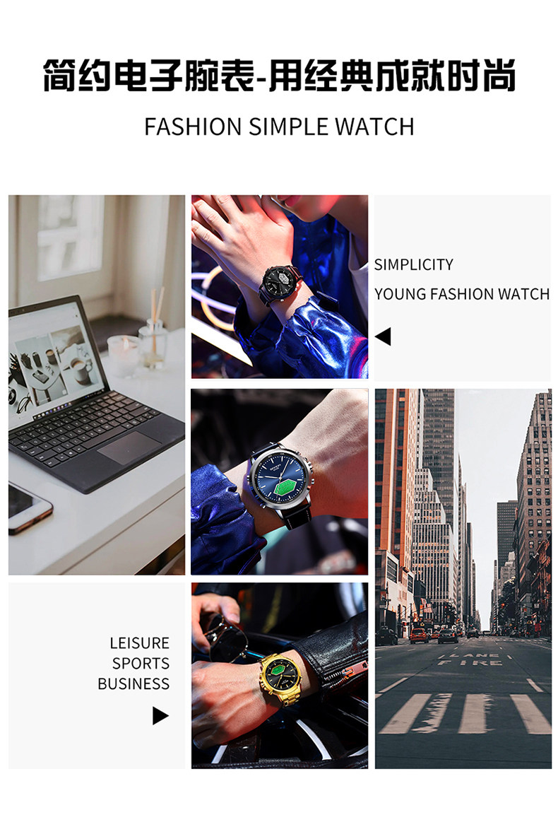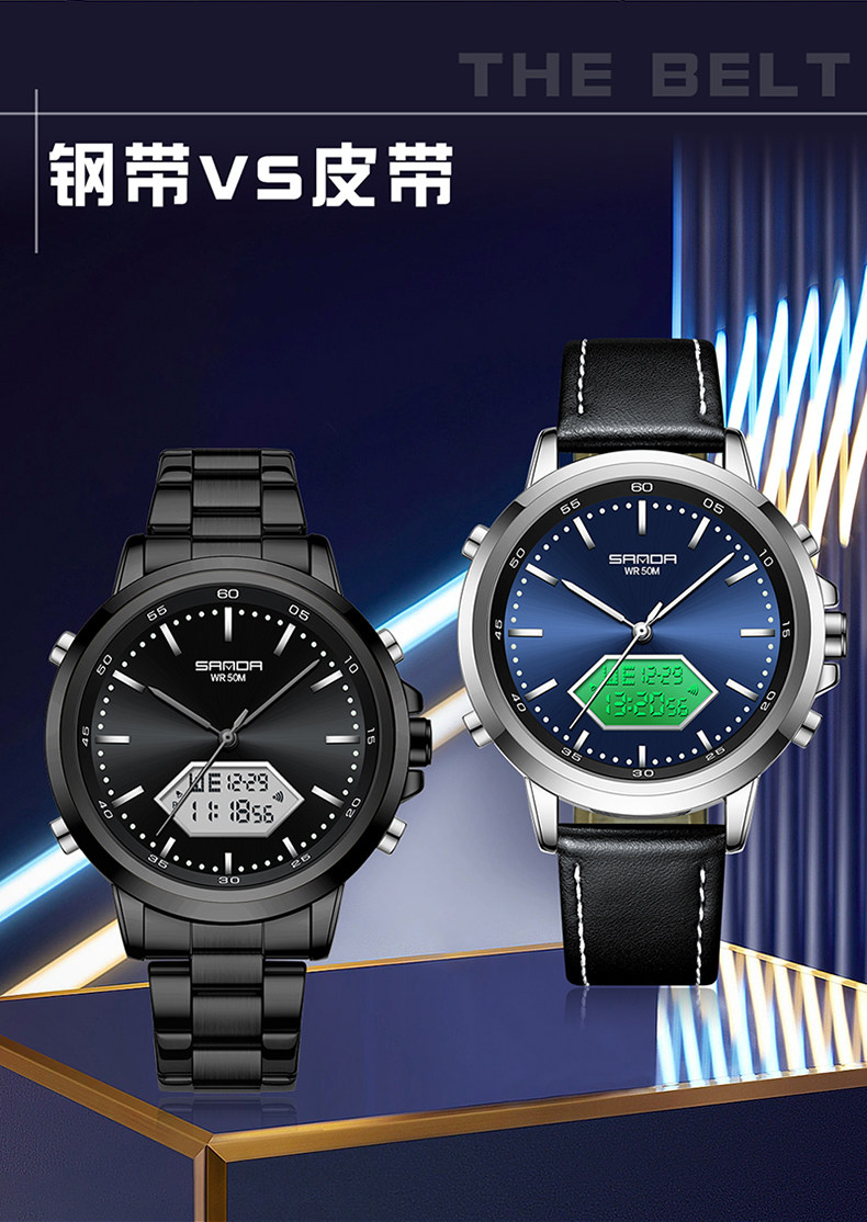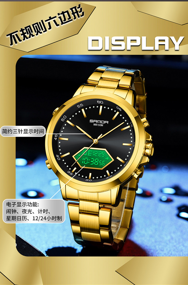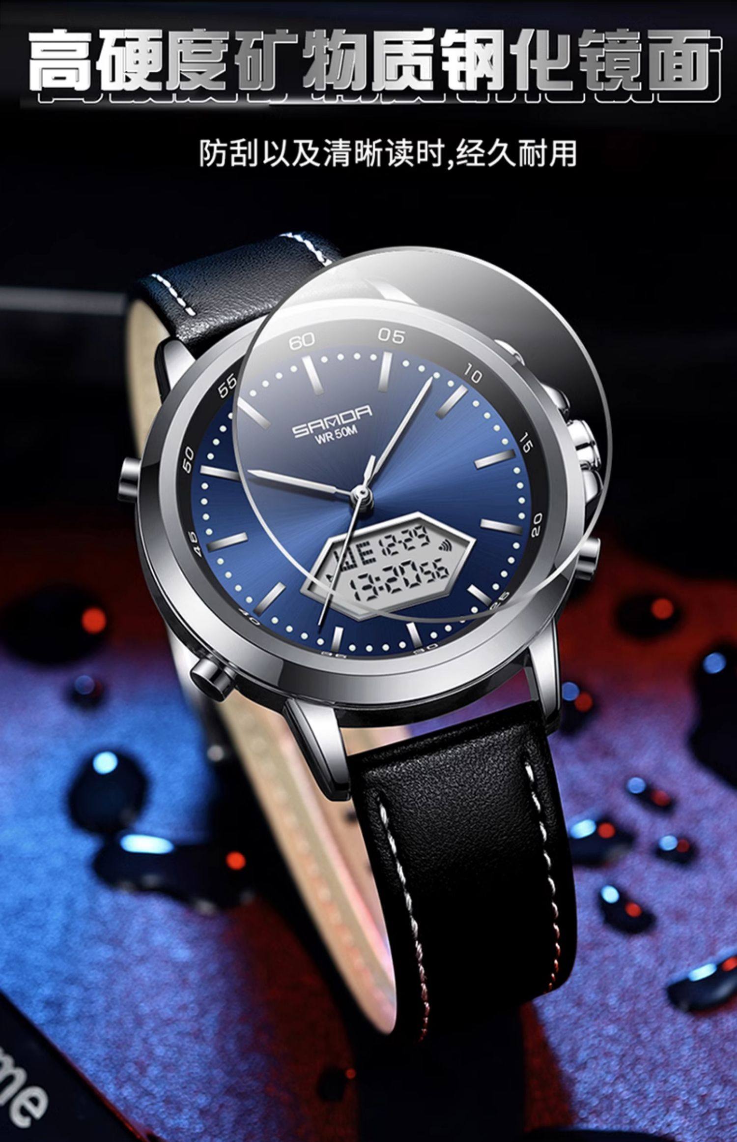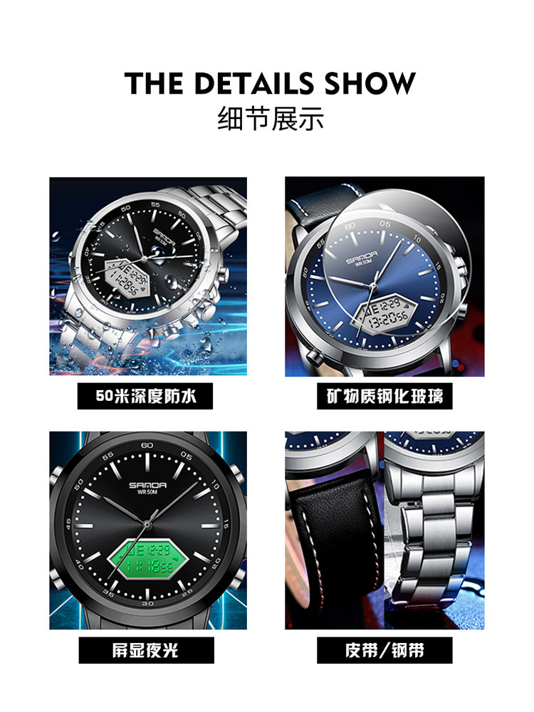 Мужские часы, универсальные цифровые часы, дорожный водонепроницаемый стальной ремешок, для средней школы