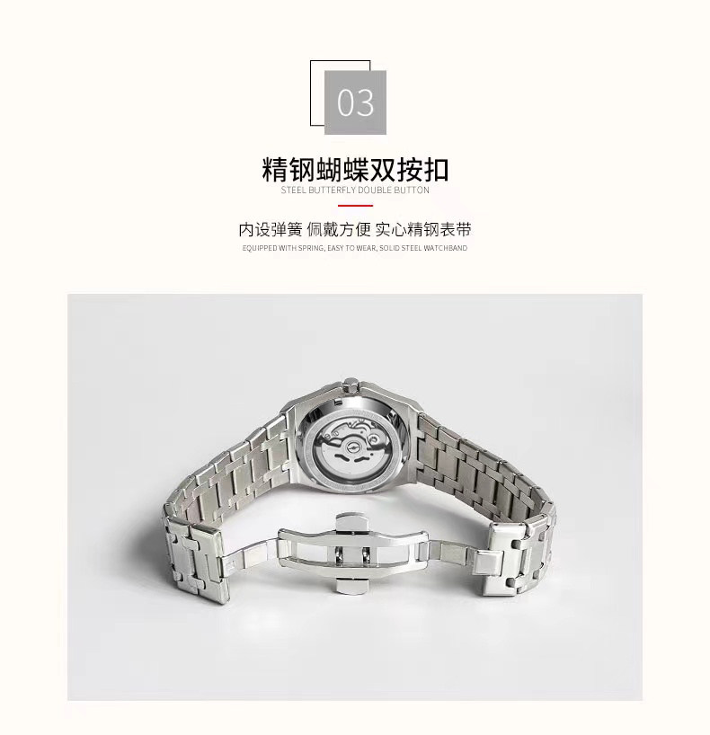 Механические механические часы, мужские часы, водонепроницаемый двусторонний календарь с бабочкой, полностью автоматический