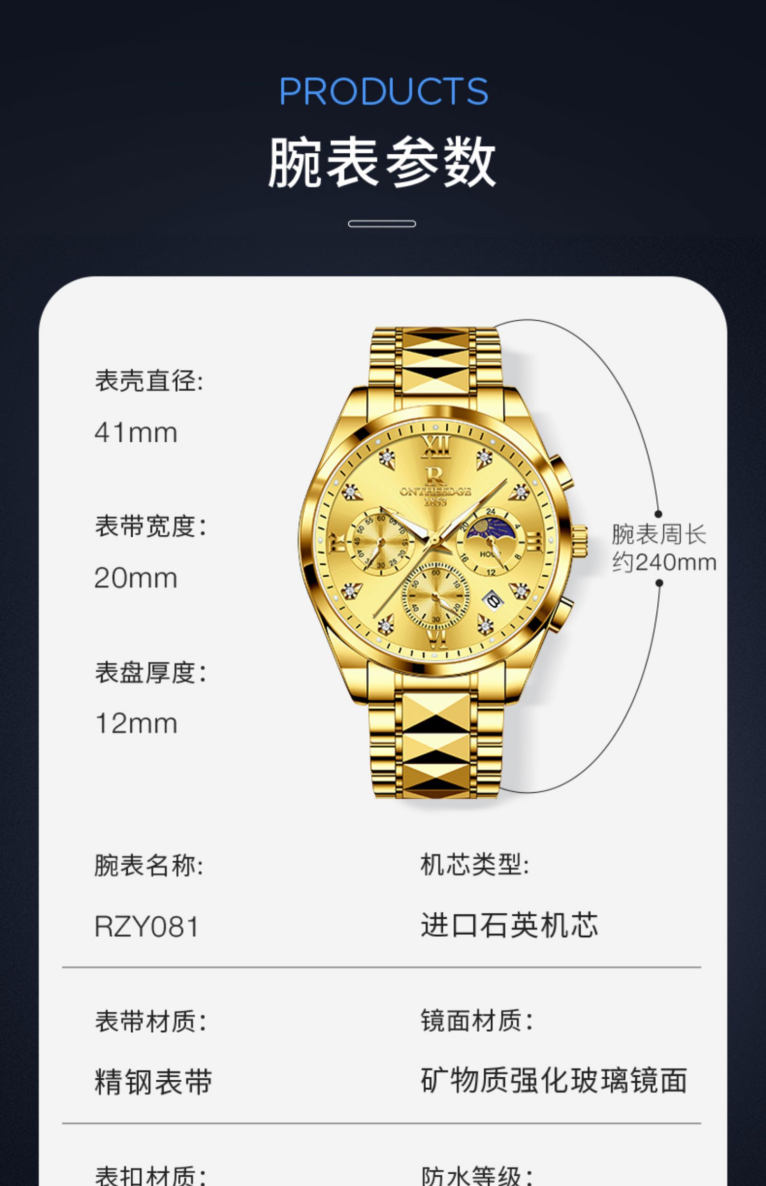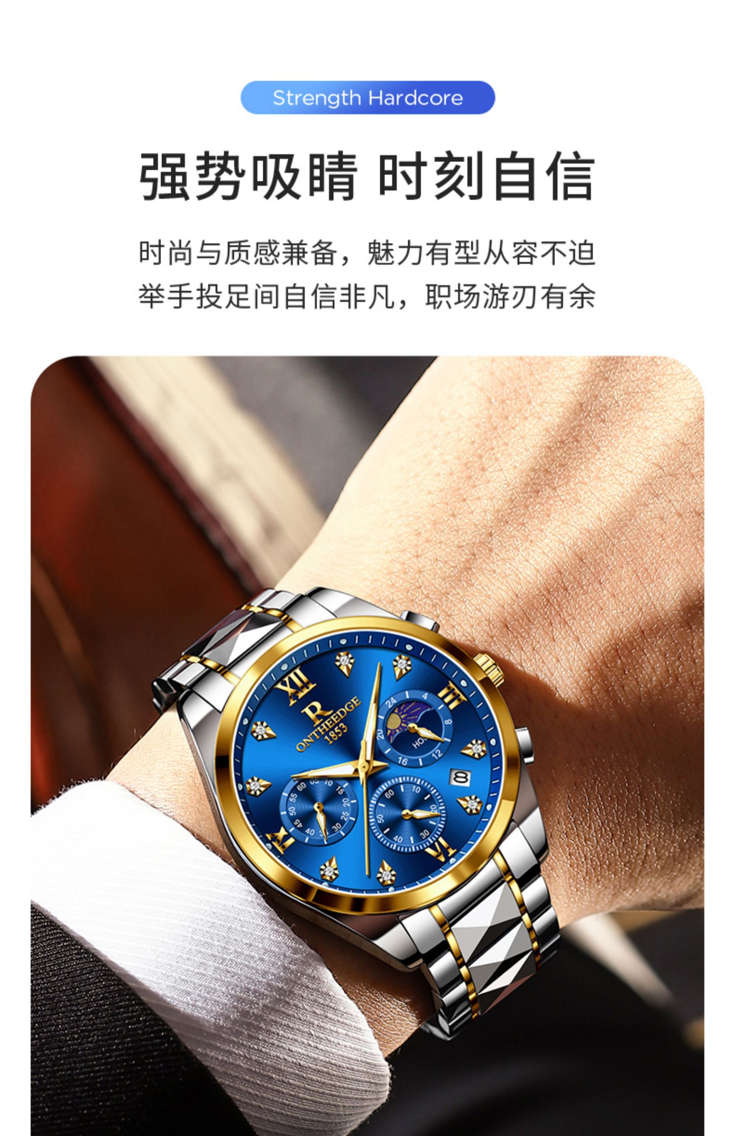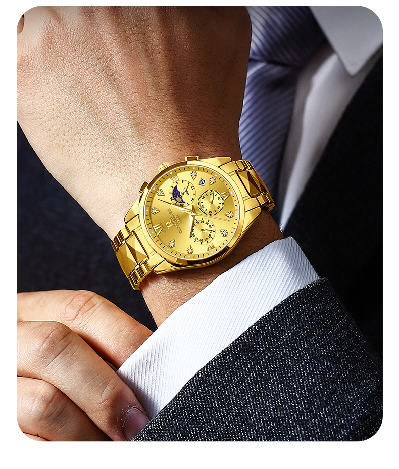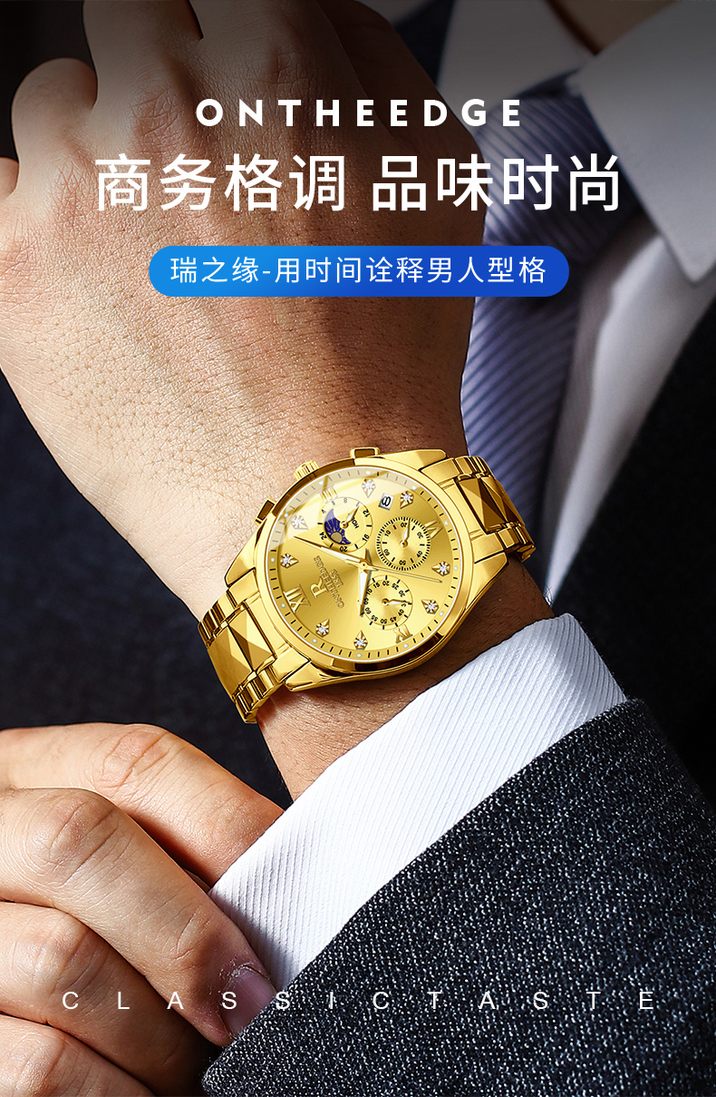 瑞之缘 Мужские часы, механические водонепроницаемые золотые часы, золотые кварцевые часы