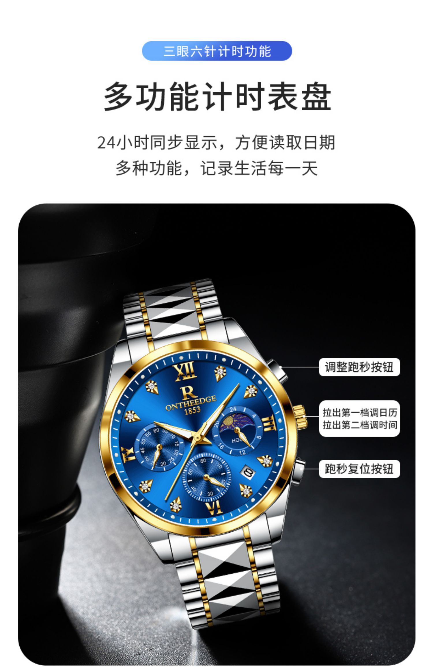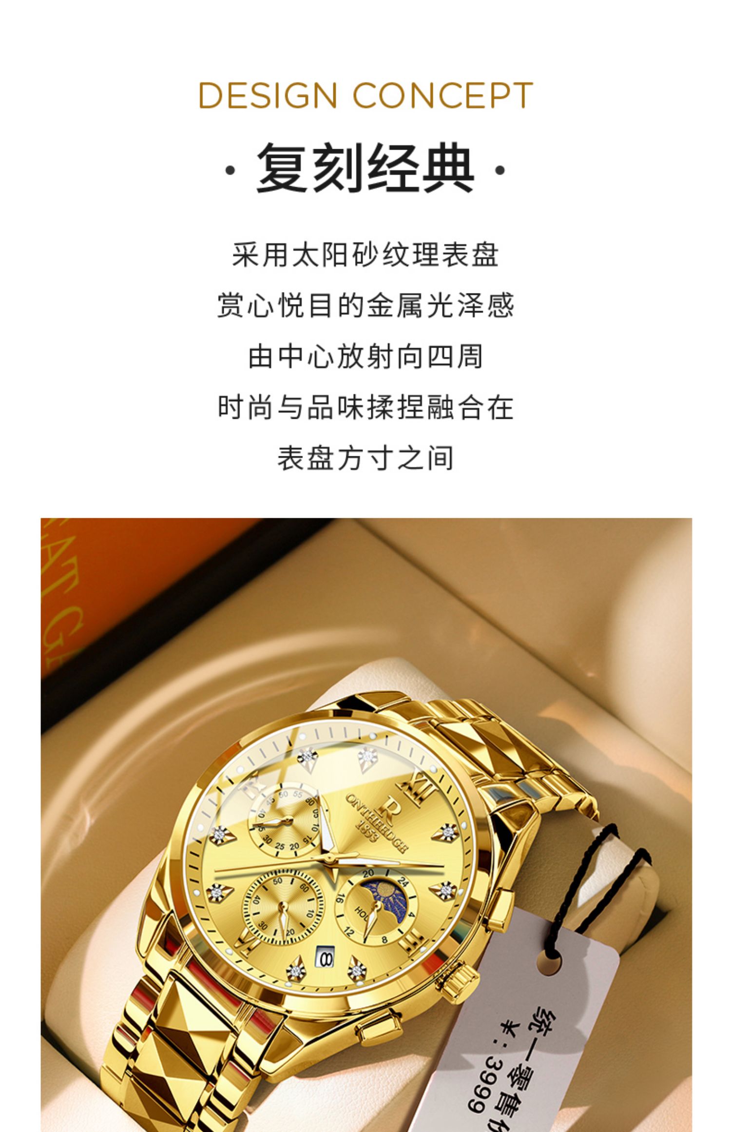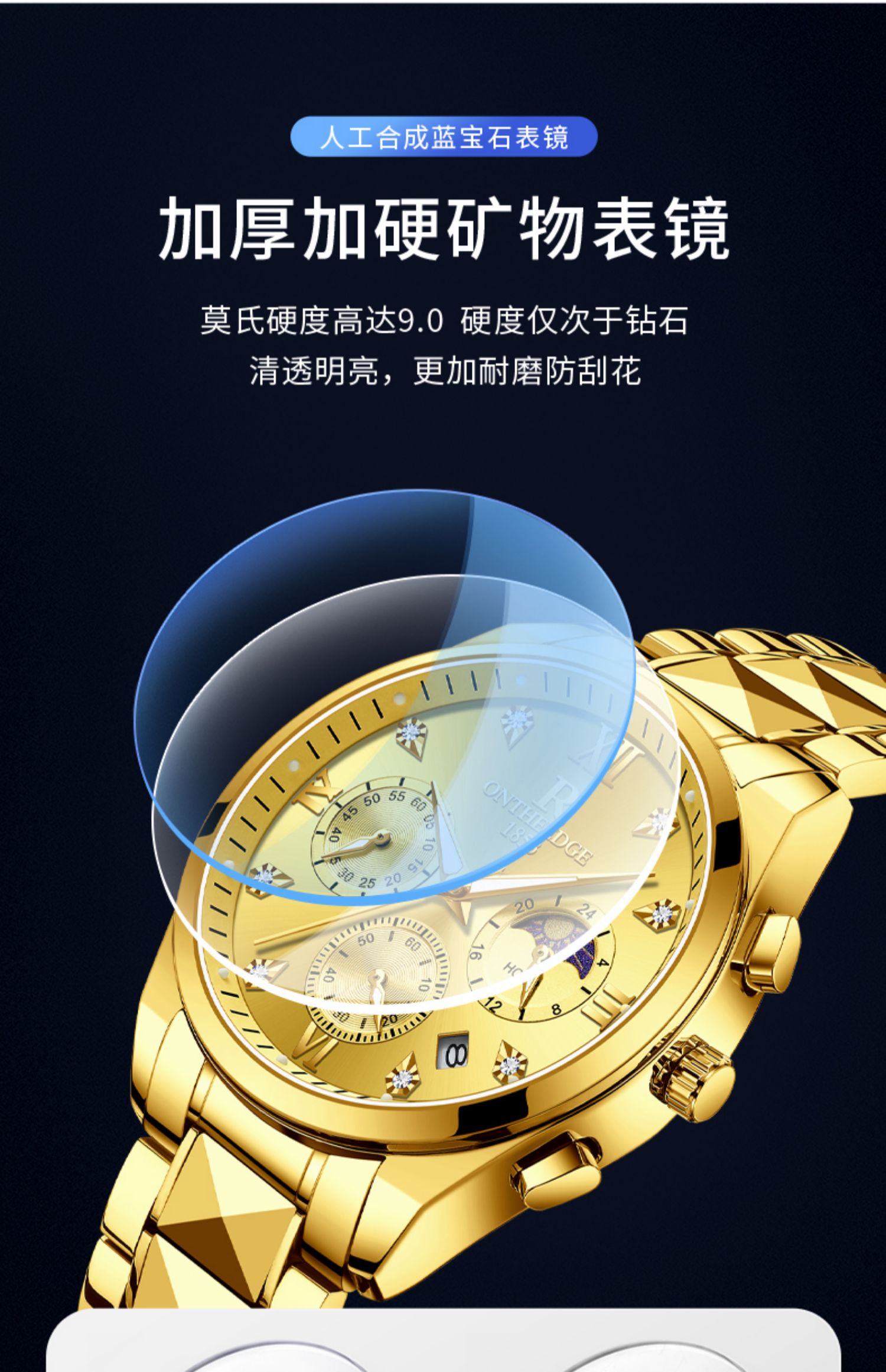 瑞之缘 Мужские часы, механические водонепроницаемые золотые часы, золотые кварцевые часы