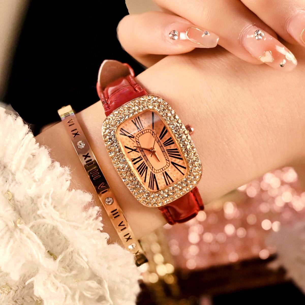 Высококлассные брендовые швейцарские часы, инкрустировано бриллиантами, легкий роскошный стиль
