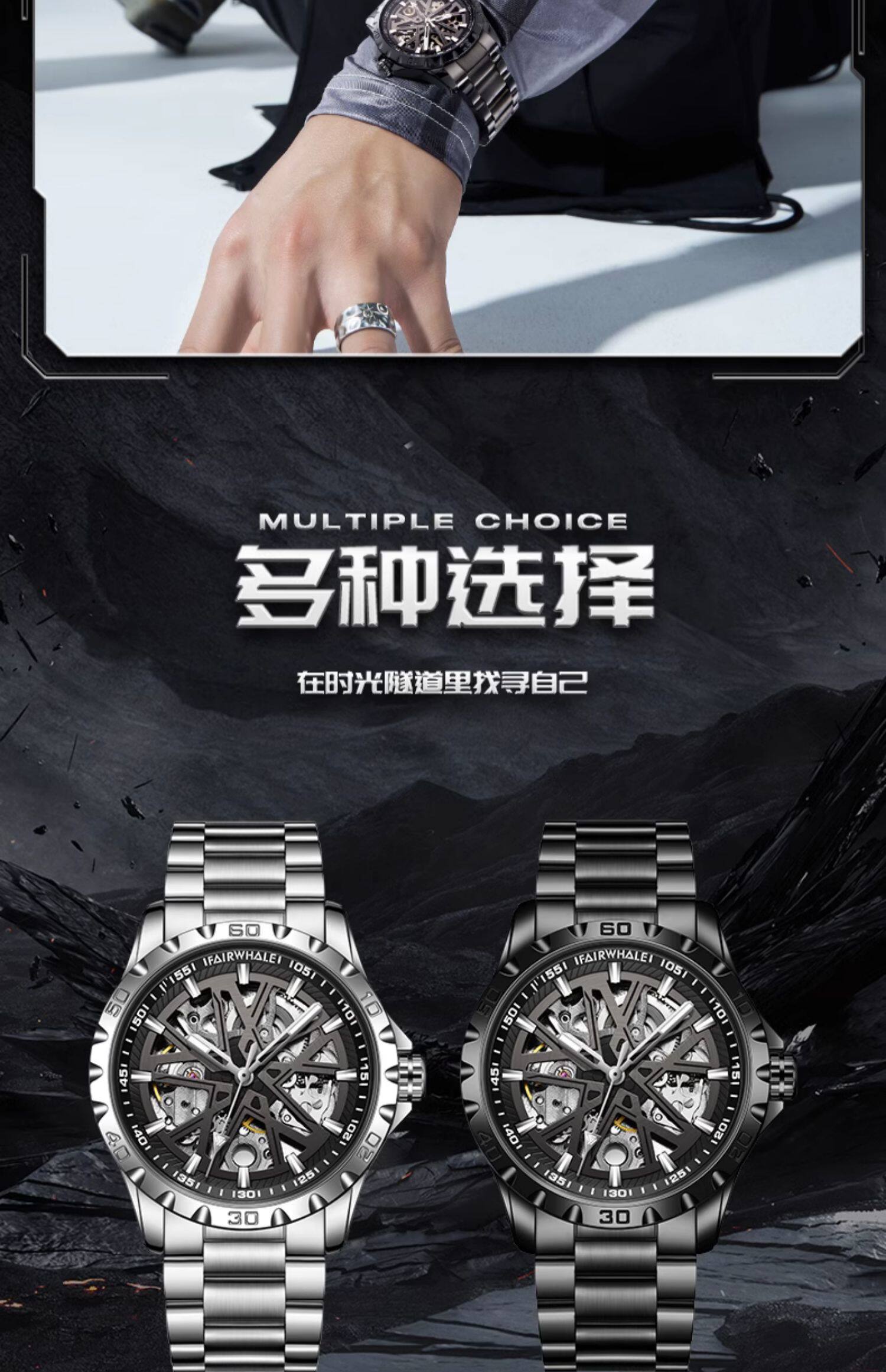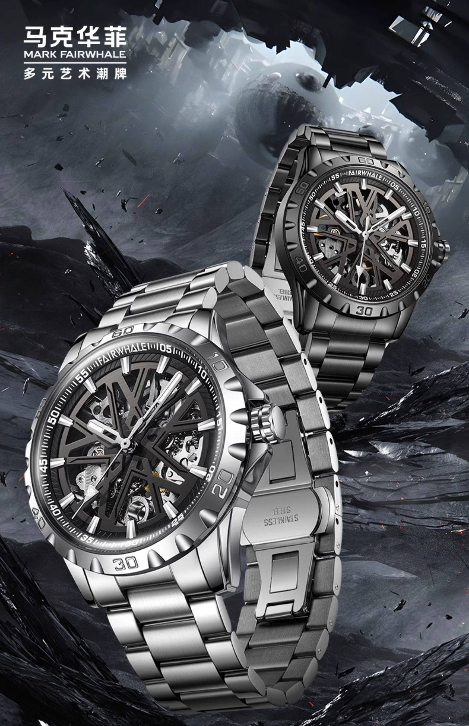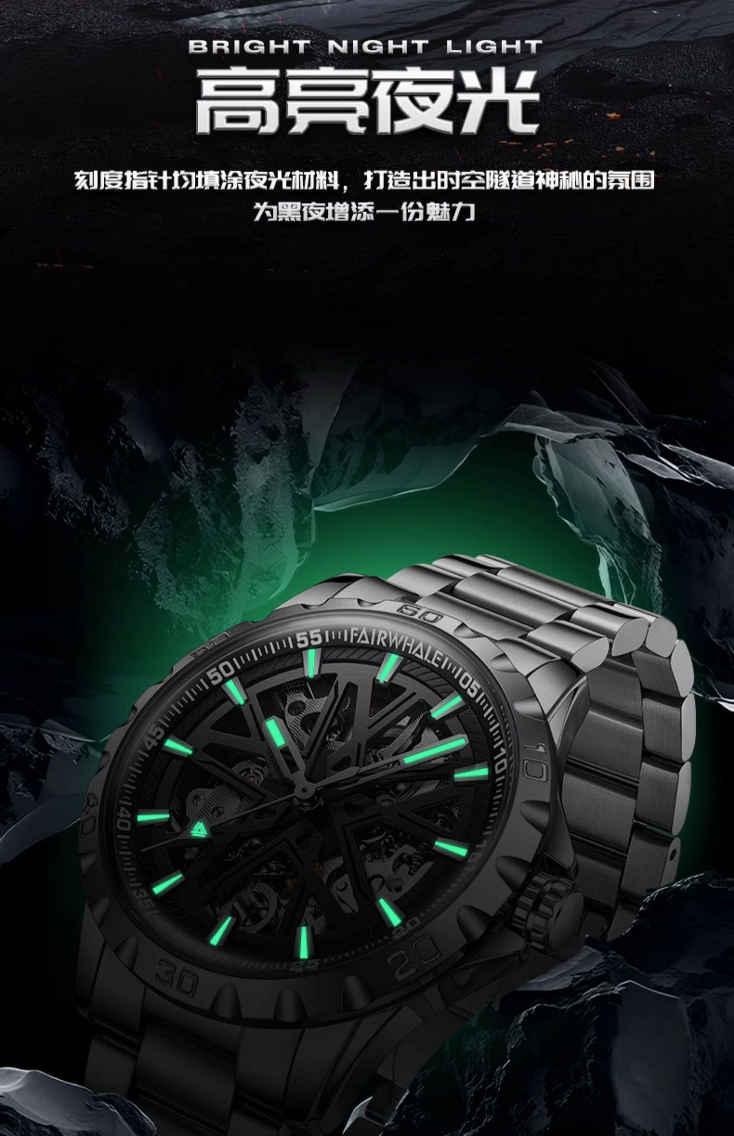 Мужские механические светящиеся часы, трендовая водонепроницаемая велосипедная кассета