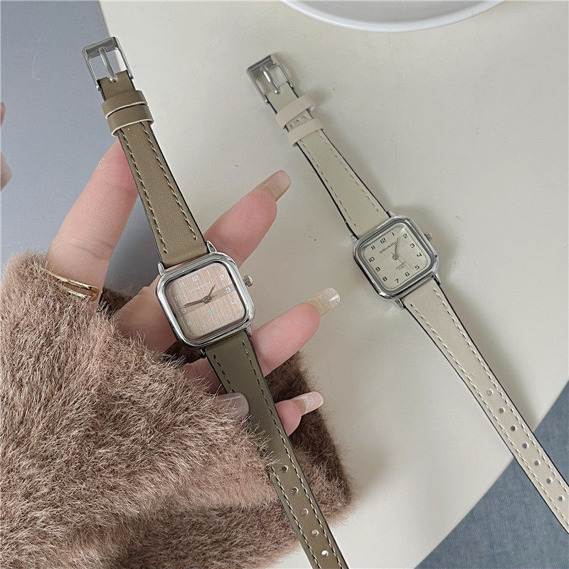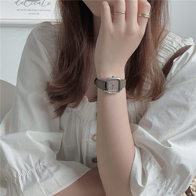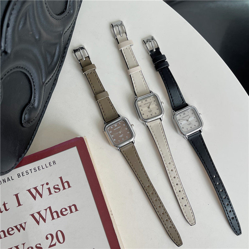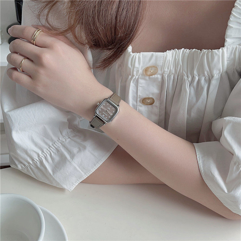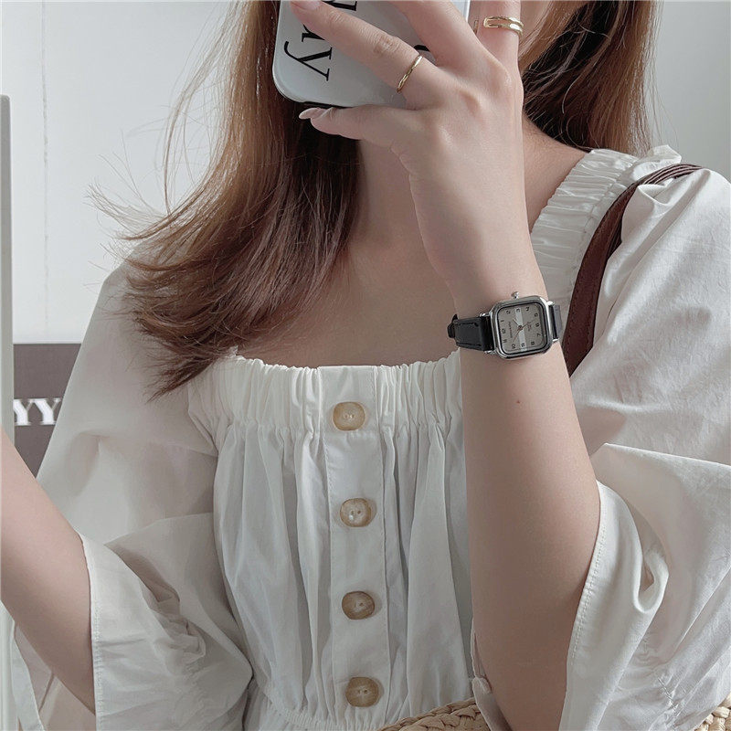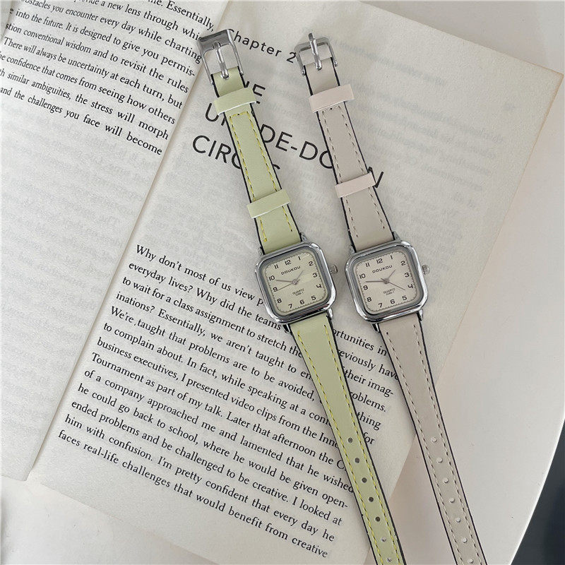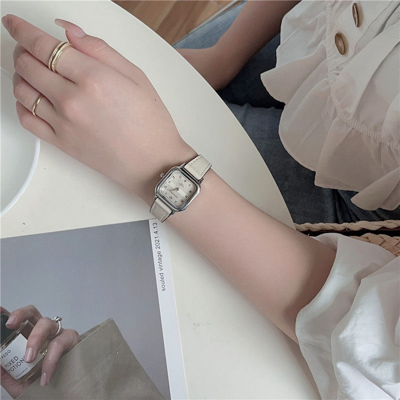 Женские часы с маленьким кубиком сахара, студенческие, красивые, простые, нишевые, ретро, корейский стиль, компактные и изысканные квадратные часы для экзаменов.