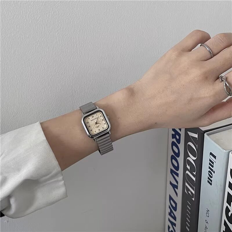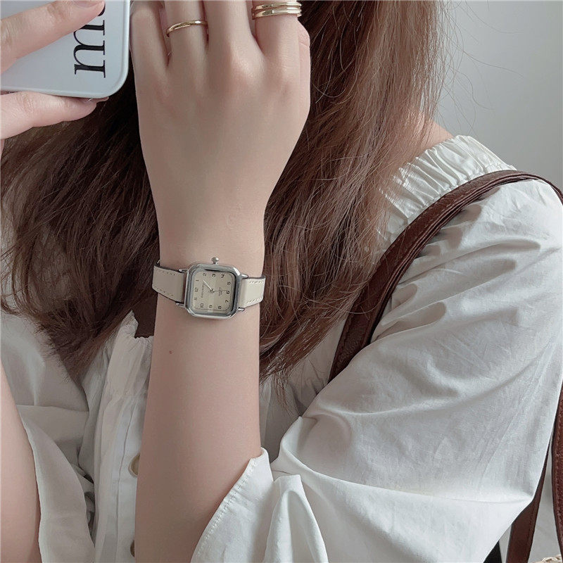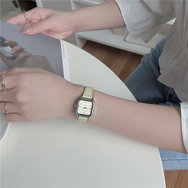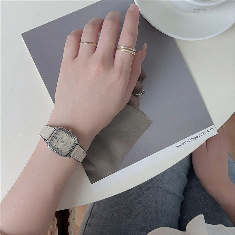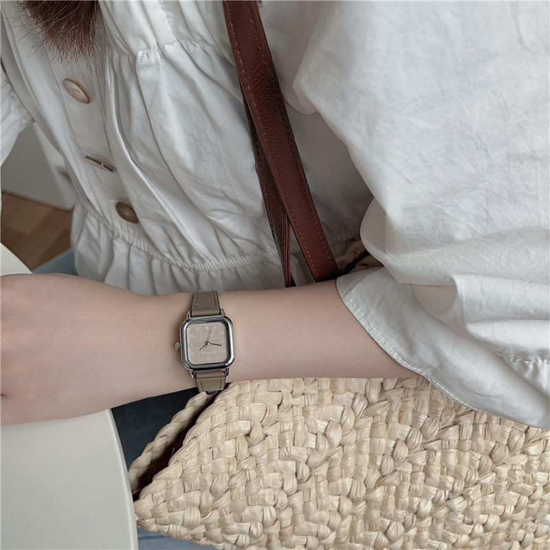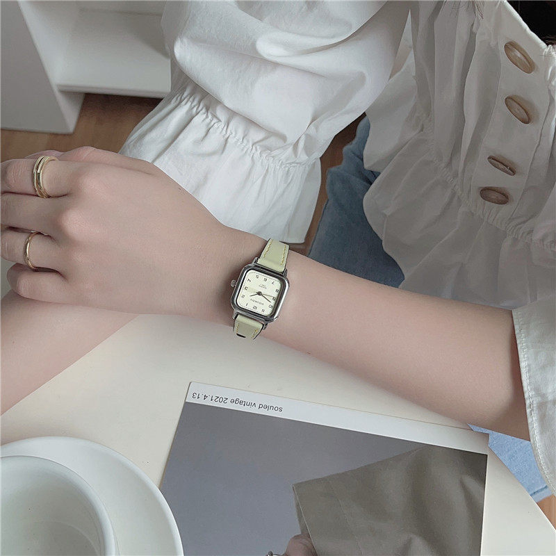 Женские часы с маленьким кубиком сахара, студенческие, красивые, простые, нишевые, ретро, корейский стиль, компактные и изысканные квадратные часы для экзаменов.