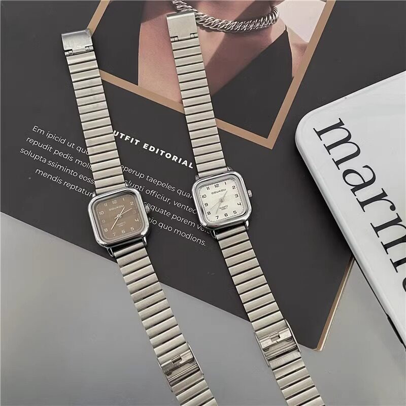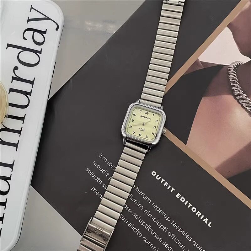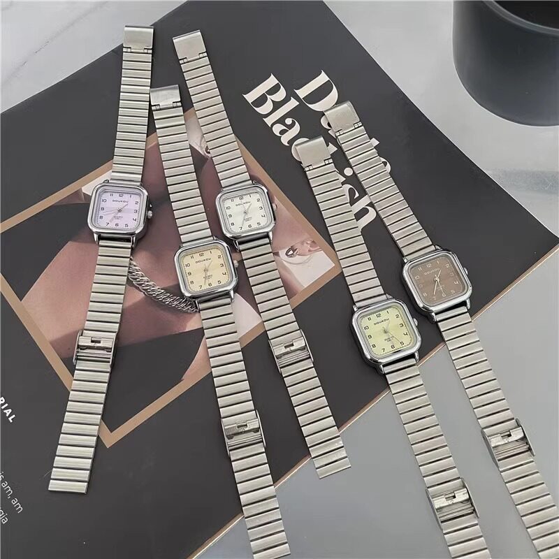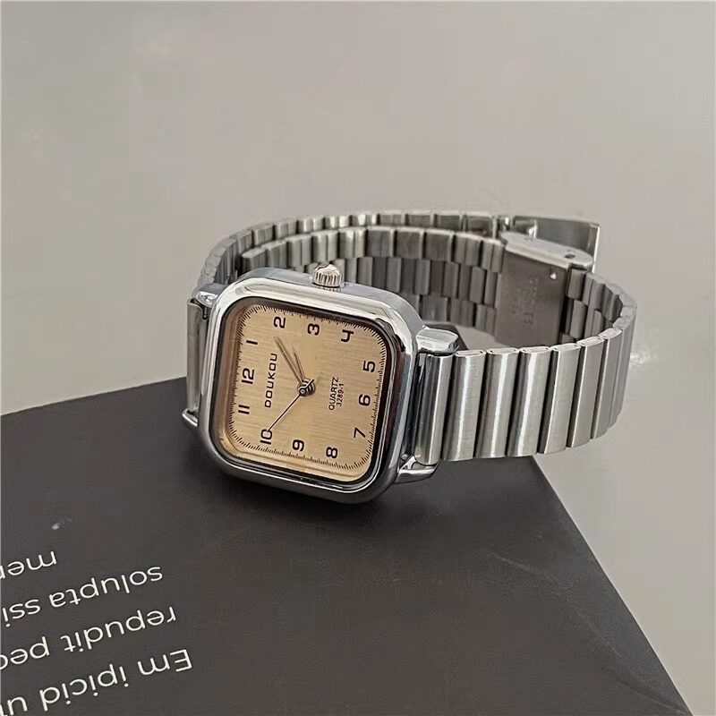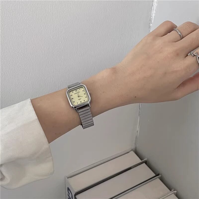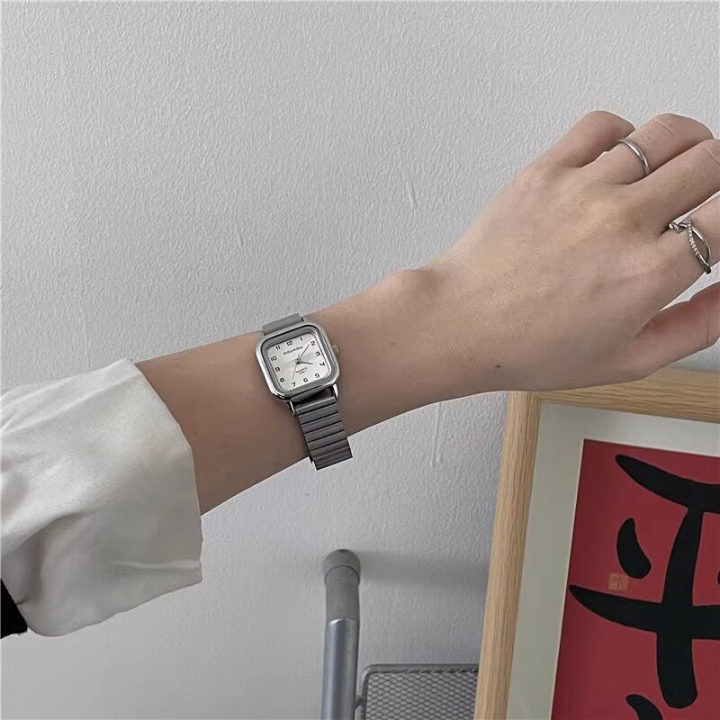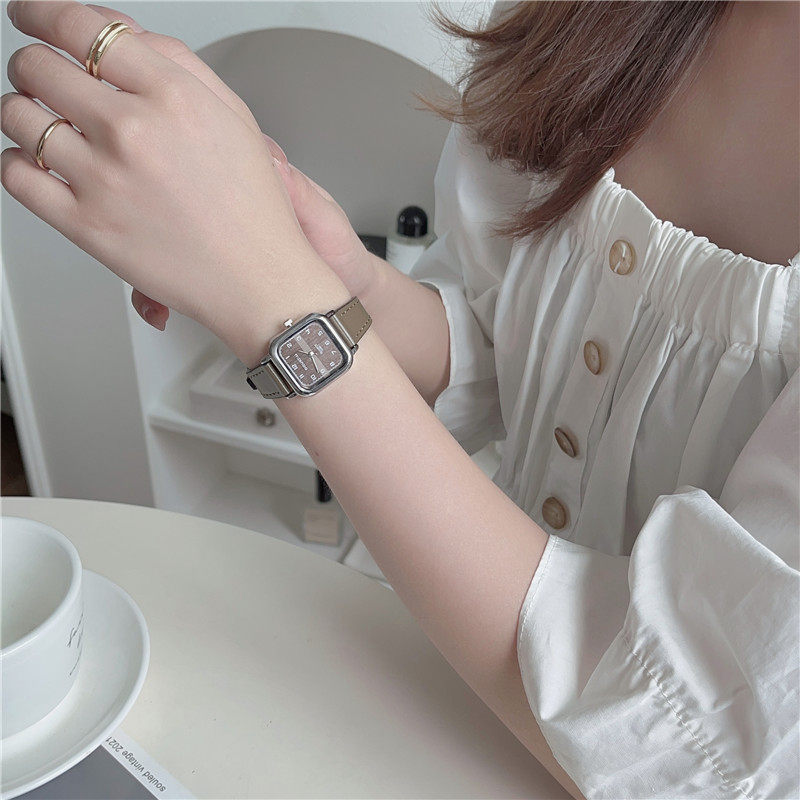 Женские часы с маленьким кубиком сахара, студенческие, красивые, простые, нишевые, ретро, корейский стиль, компактные и изысканные квадратные часы для экзаменов.