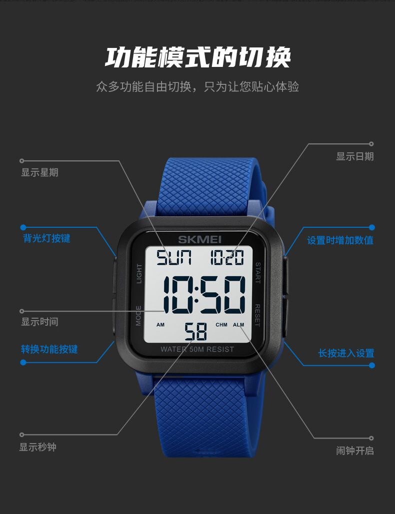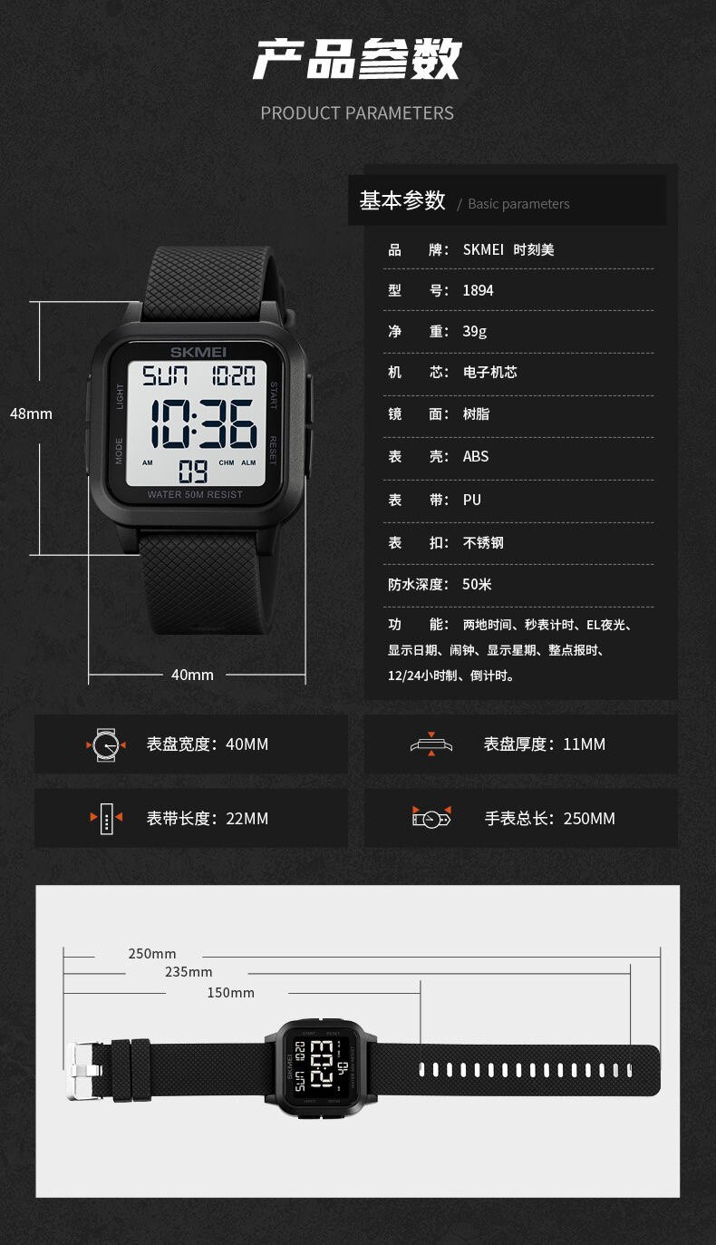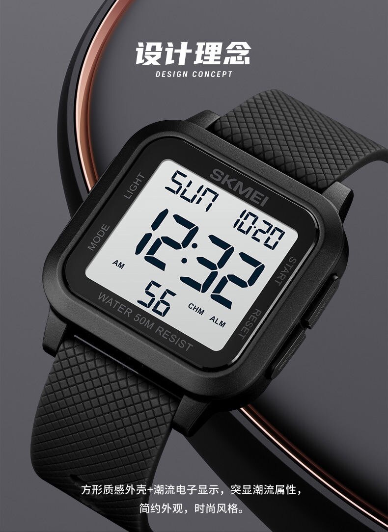 Универсальные трендовые водонепроницаемые цифровые часы, простой и элегантный дизайн
