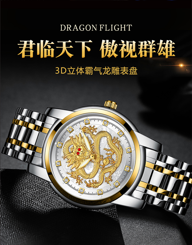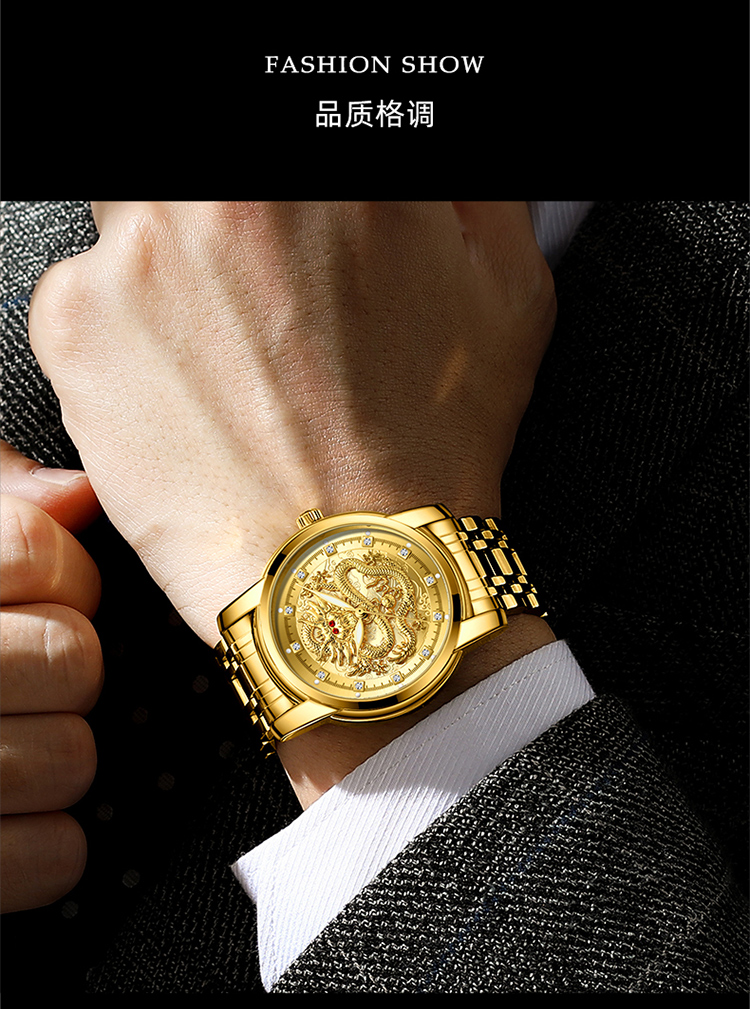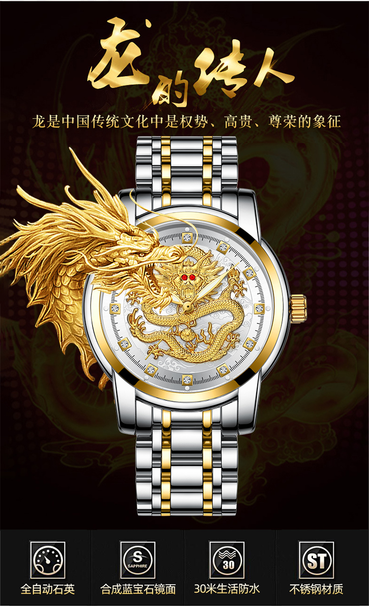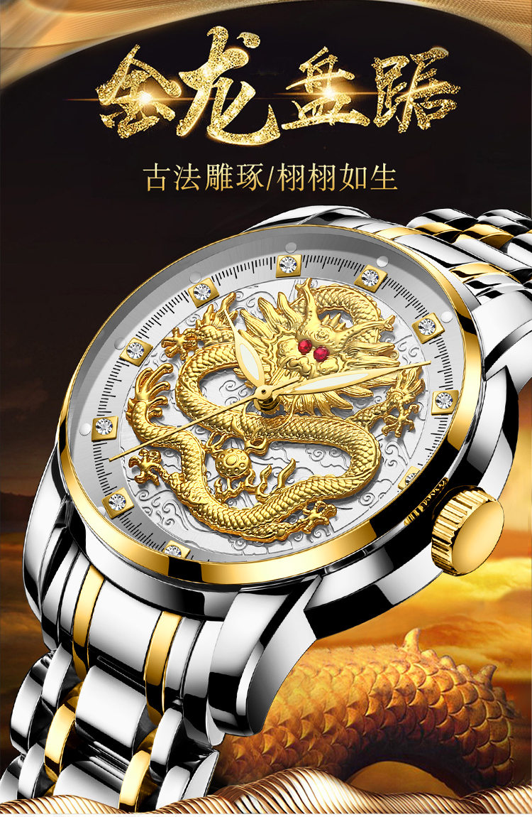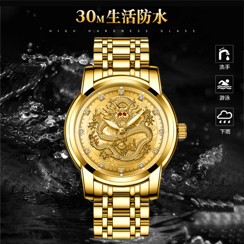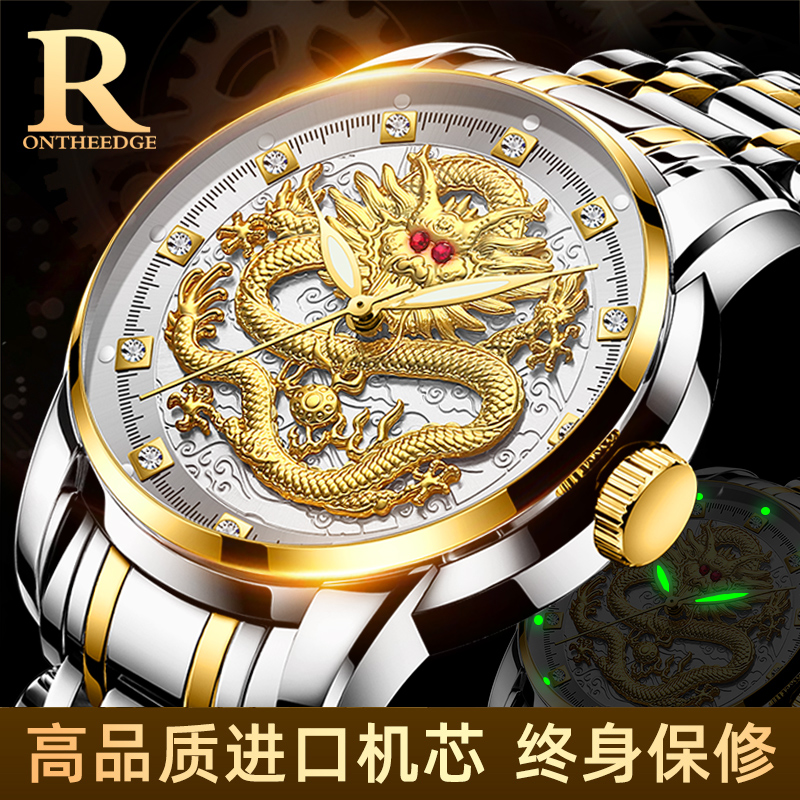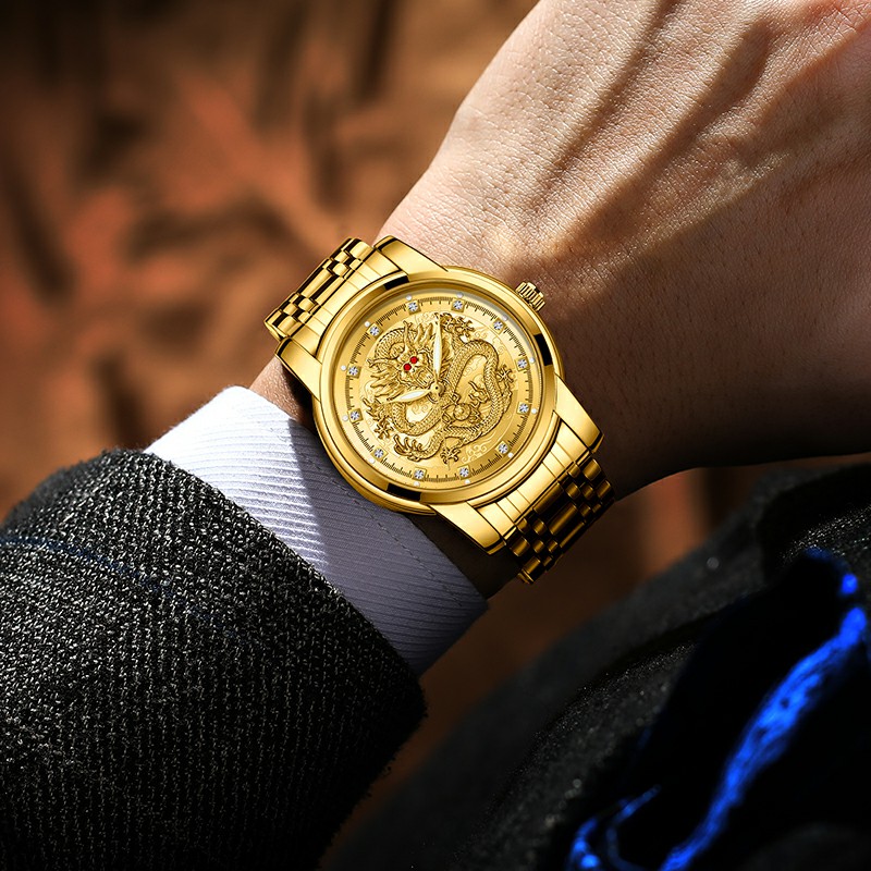 Год дракона китайский дракон чистый золотой мужские часы подлинные