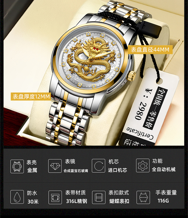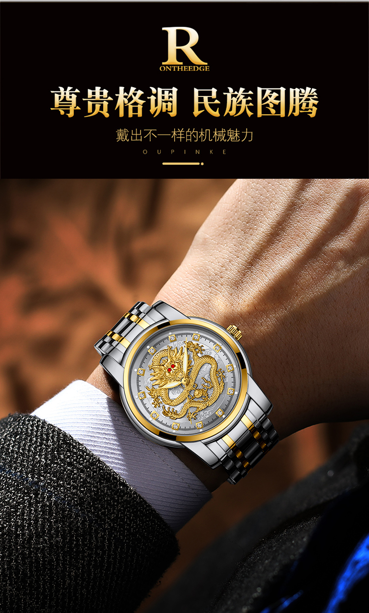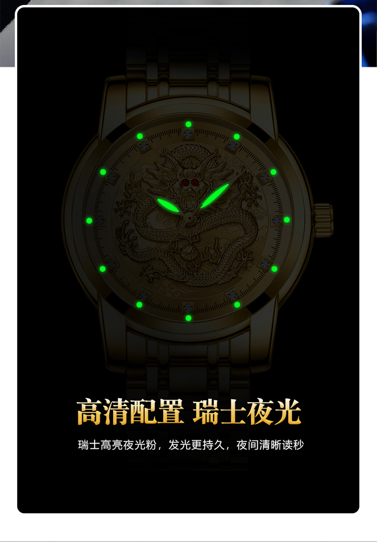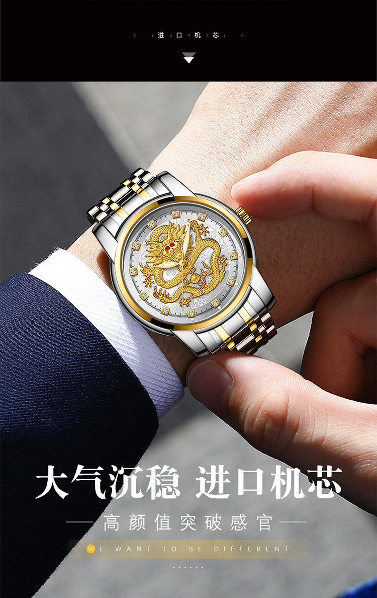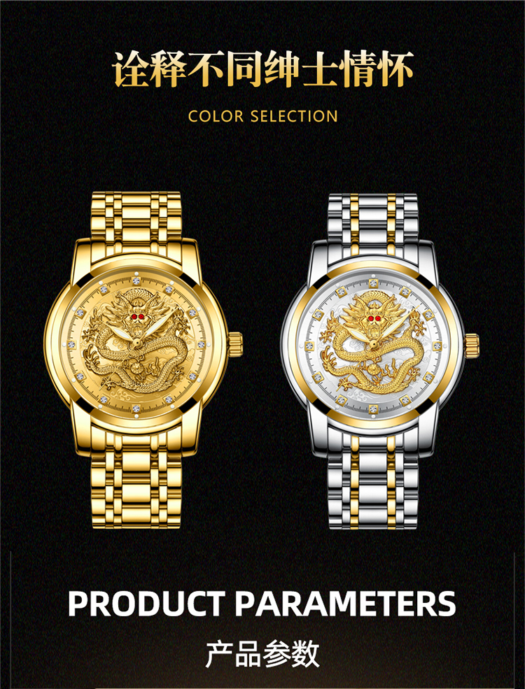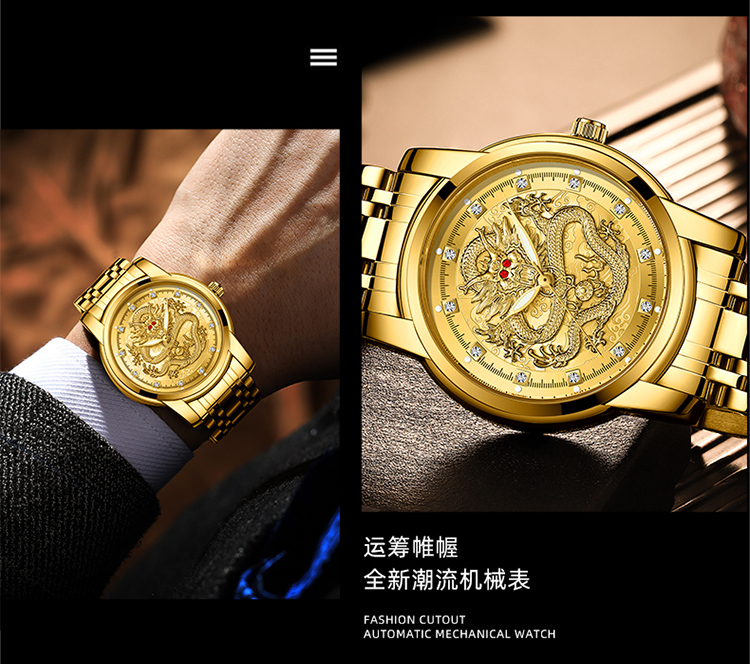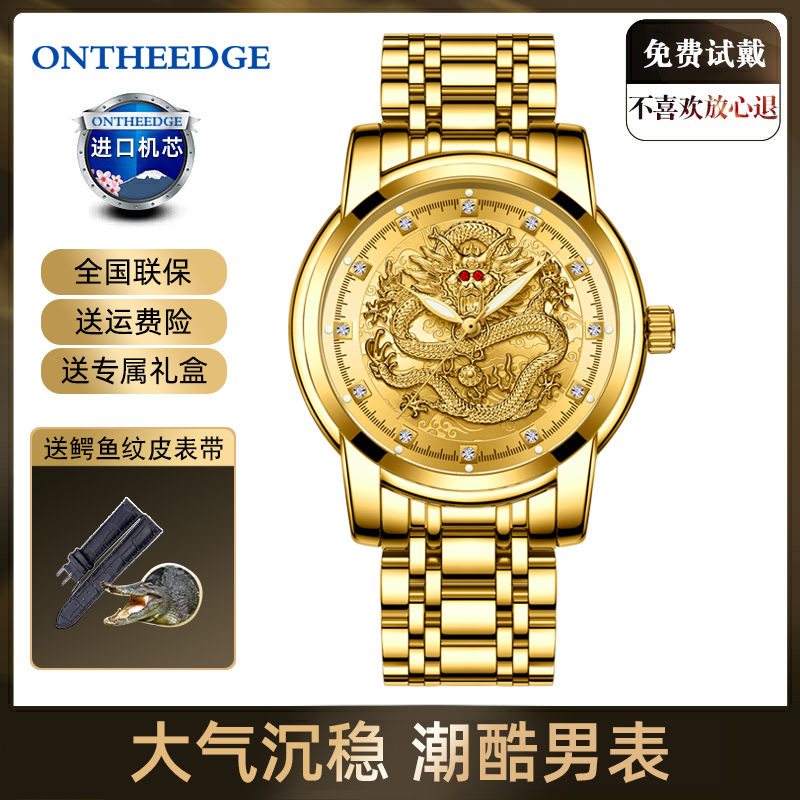 Год дракона китайский дракон чистый золотой мужские часы подлинные