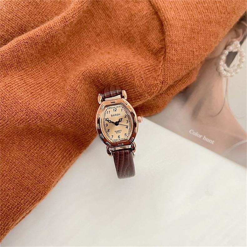 Изысканные универсальные брендовые ретро маленькие небольшие свежие кварцевые часы для отдыха, изысканный стиль