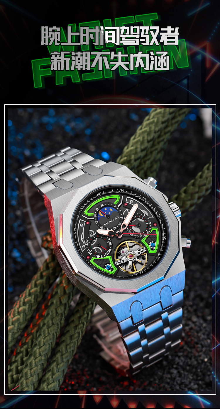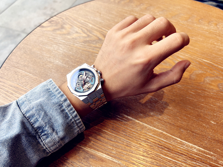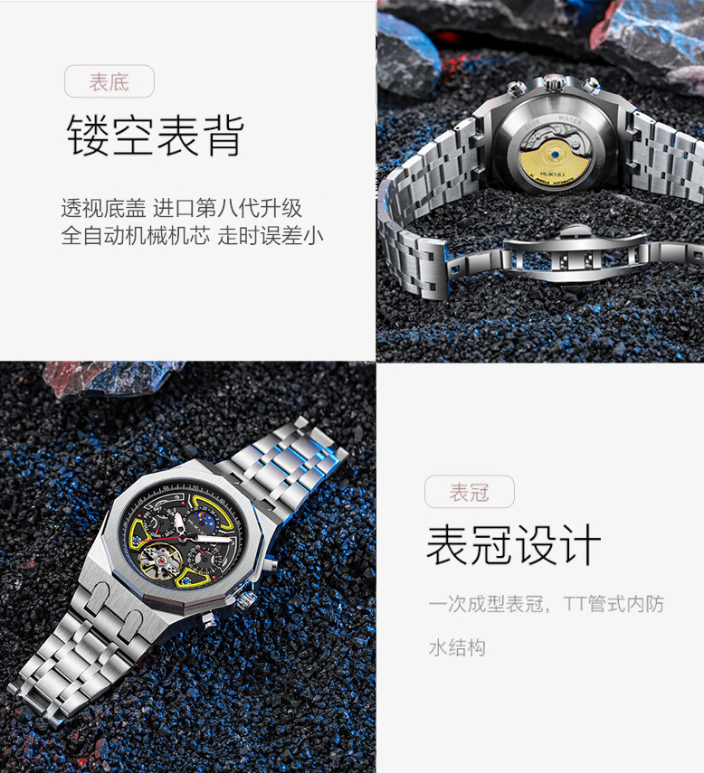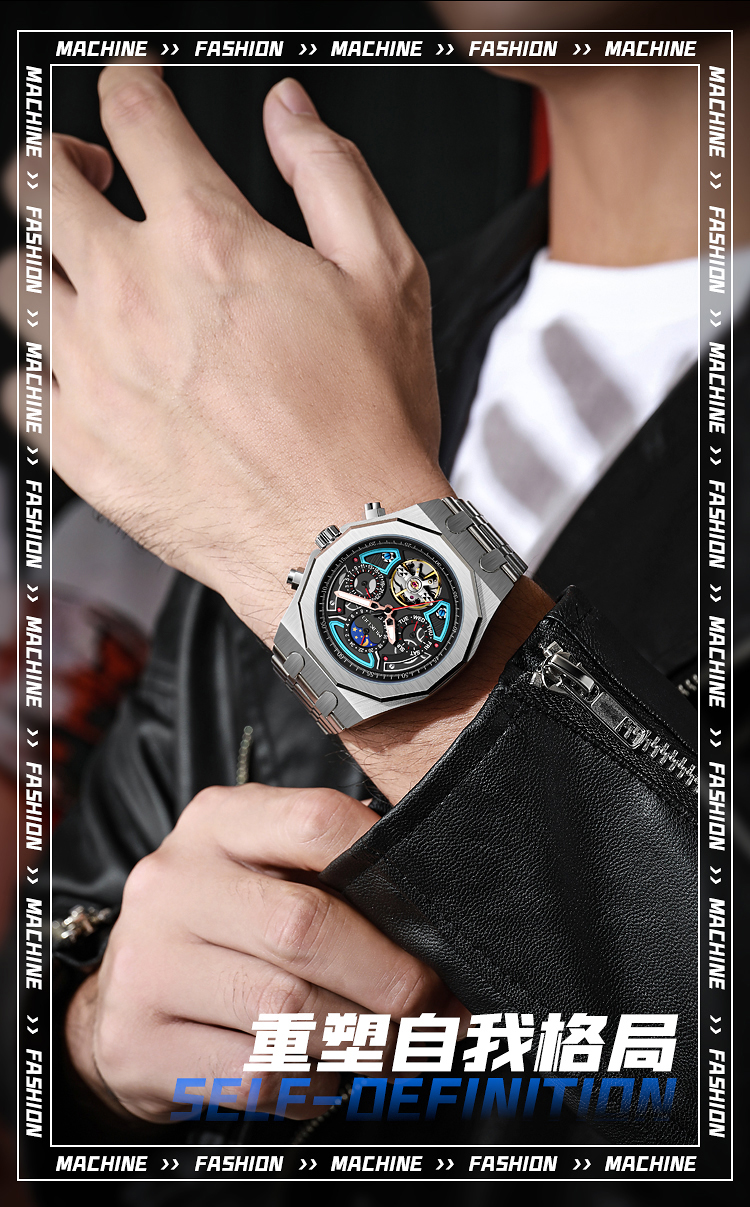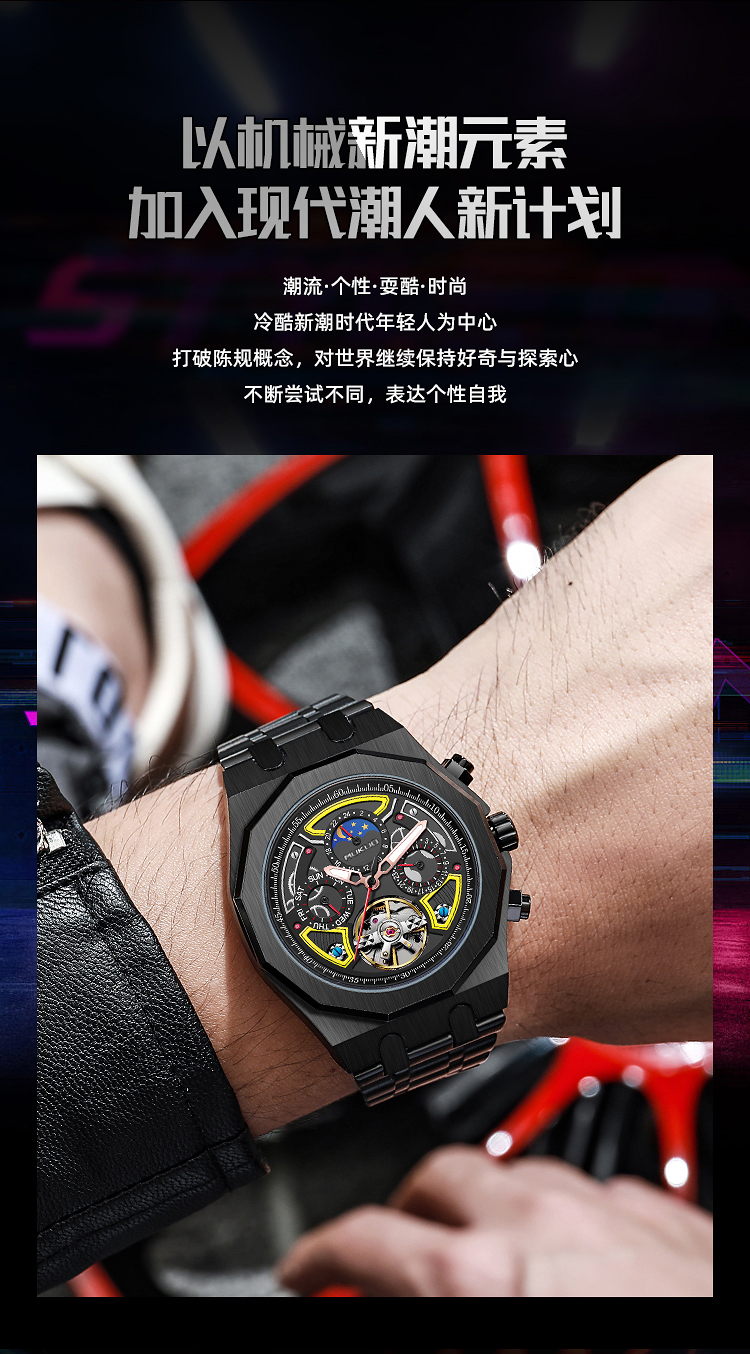 Мужские часы, механические модные трендовые водонепроницаемые механические часы, полностью автоматический