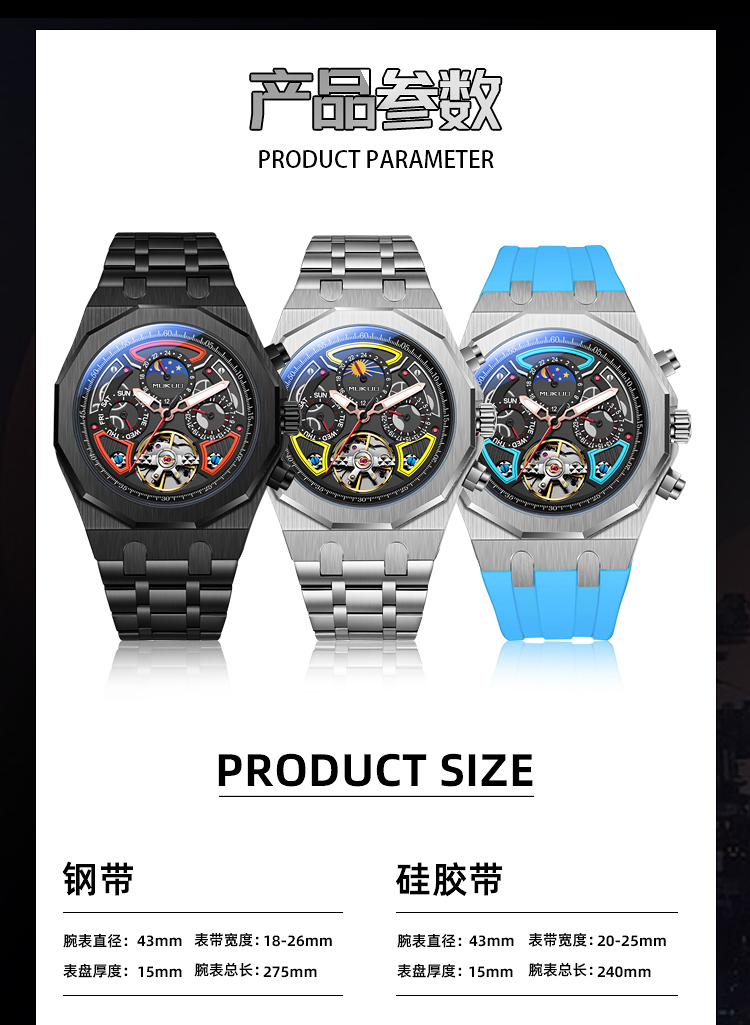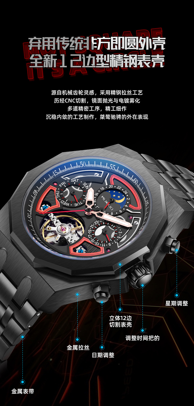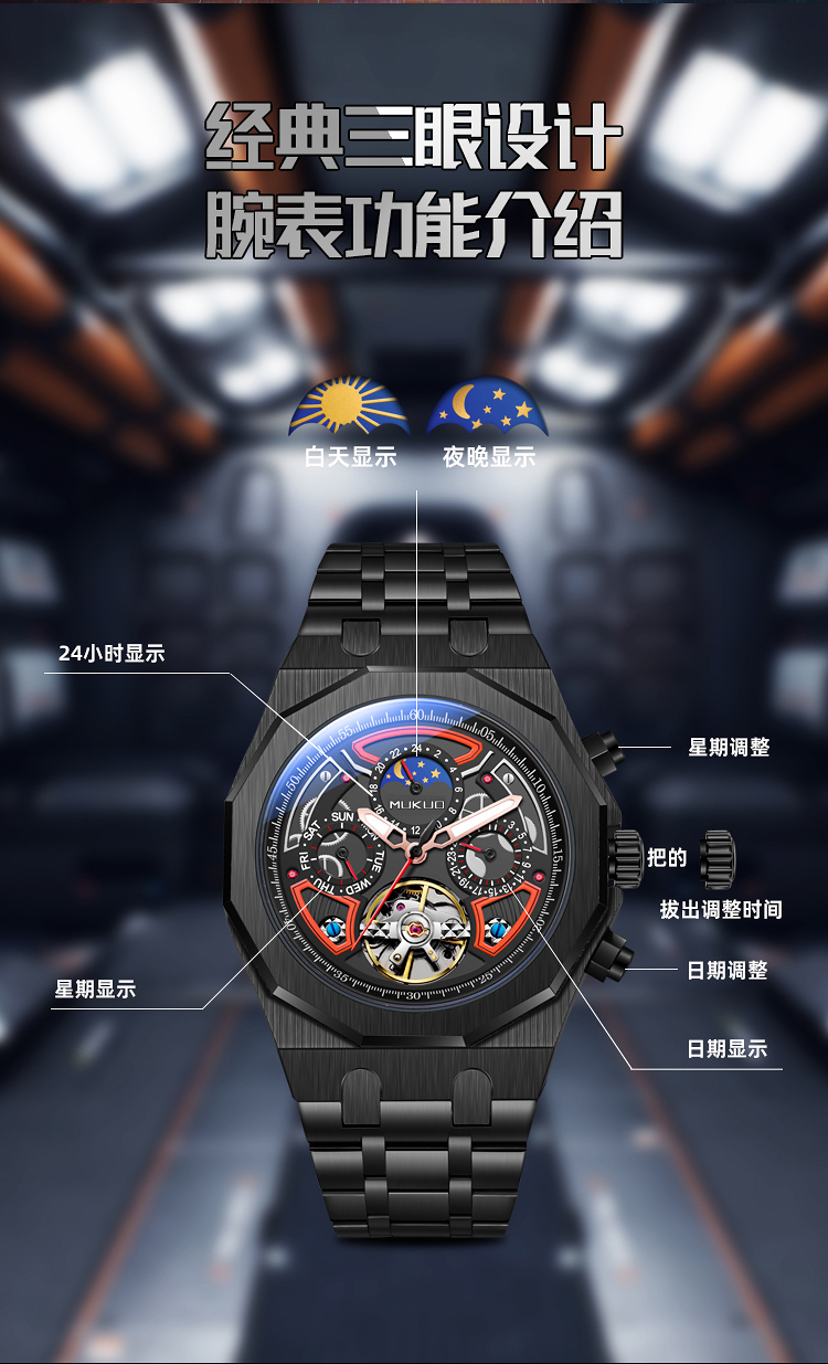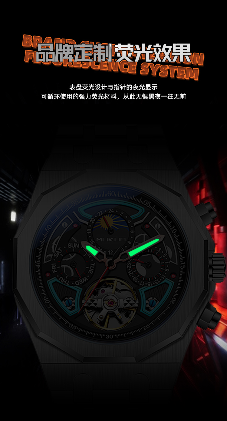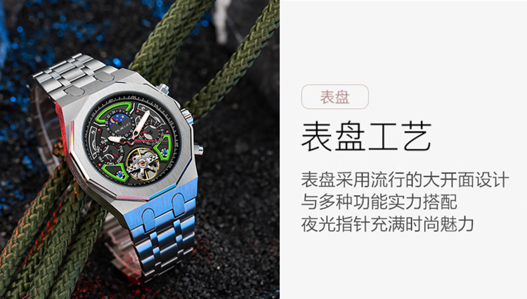 Мужские часы, механические модные трендовые водонепроницаемые механические часы, полностью автоматический