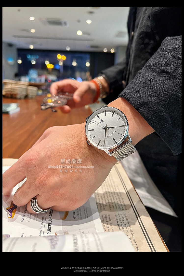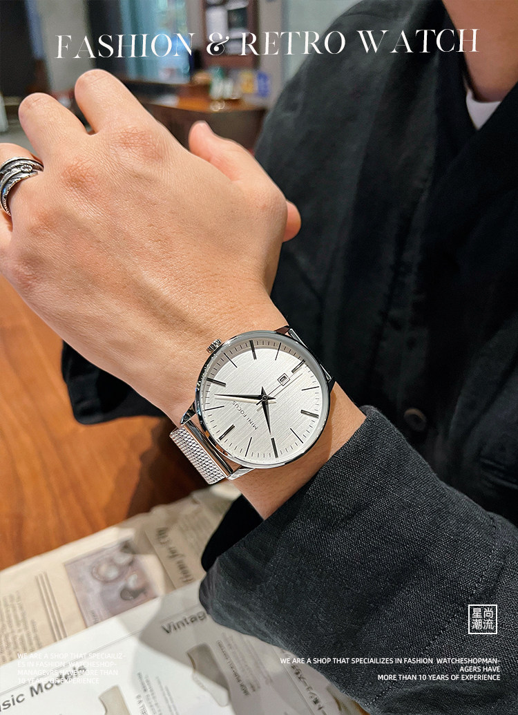 Классический ультратонкий стальной ремешок, элегантные мужские часы, швейцарские часы, простой и элегантный дизайн, изысканный стиль