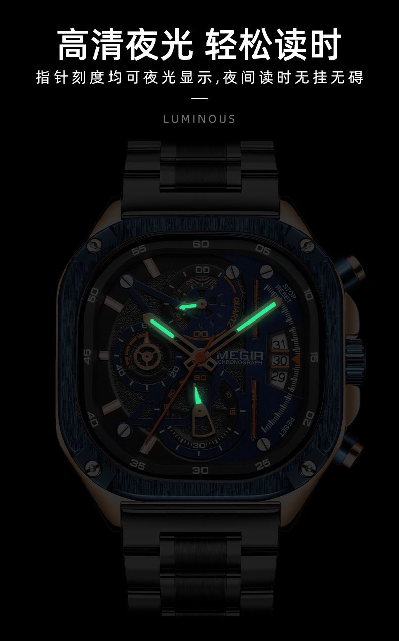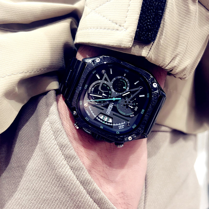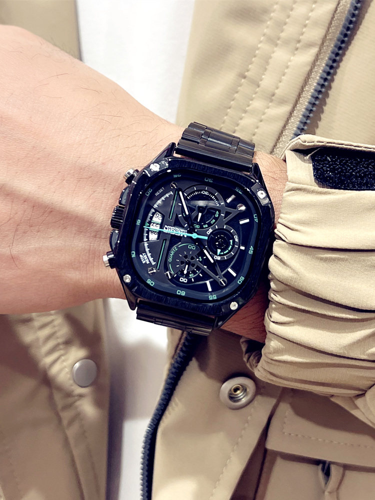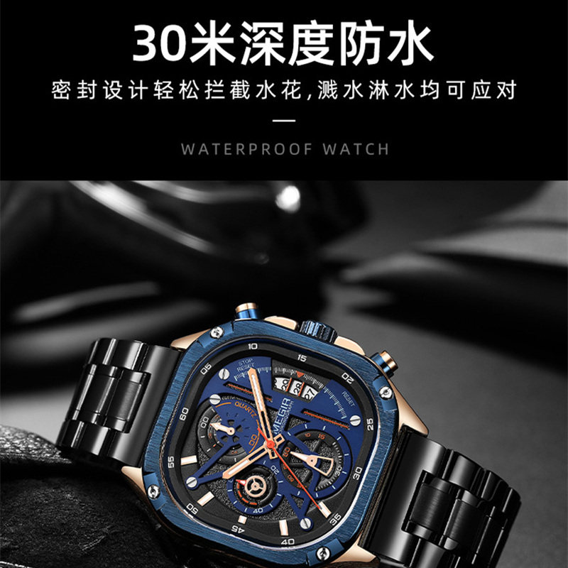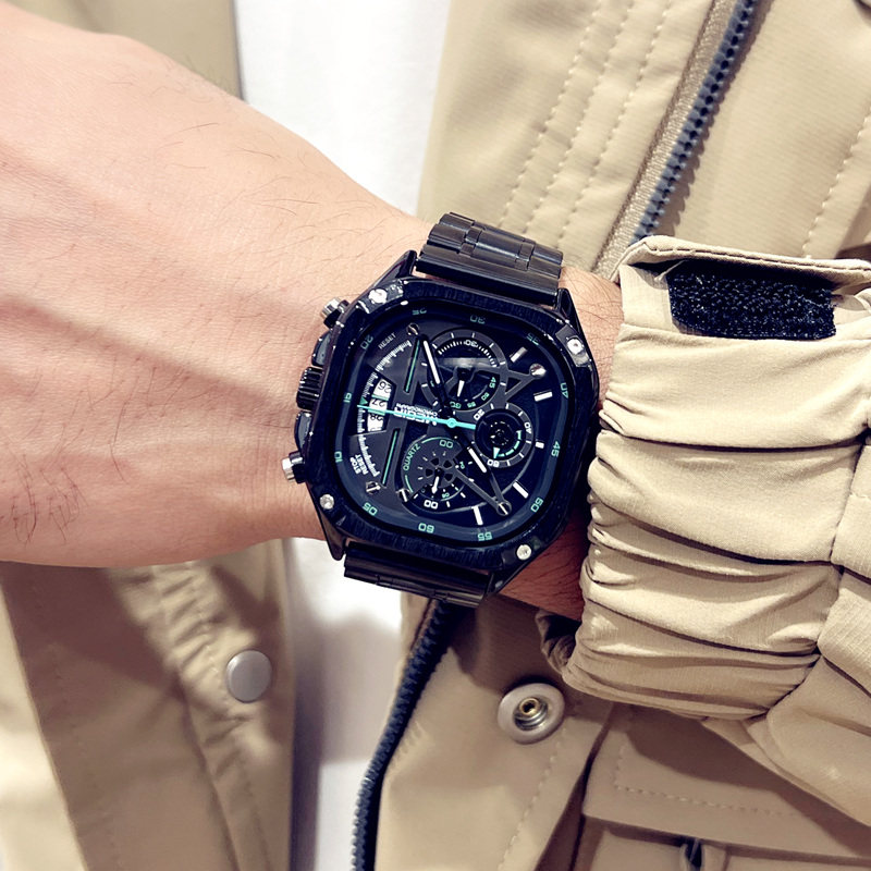 Квадратные элитные водонепроницаемые мужские часы, модный трендовый стальной ремешок, европейский стиль, в корейском стиле