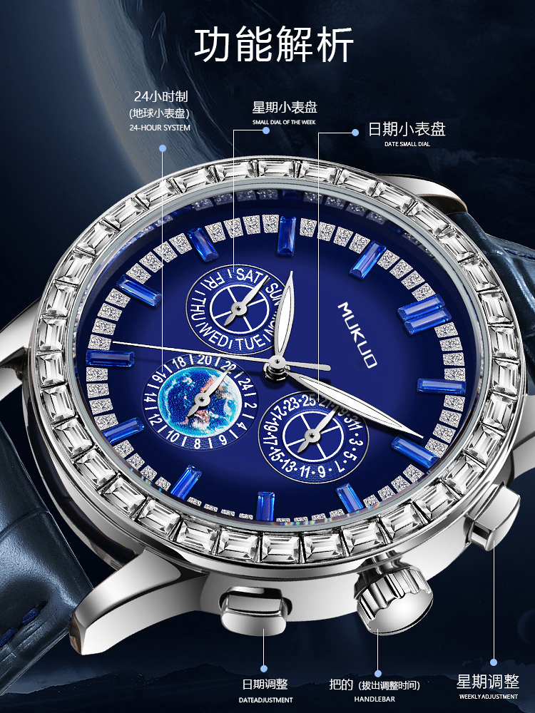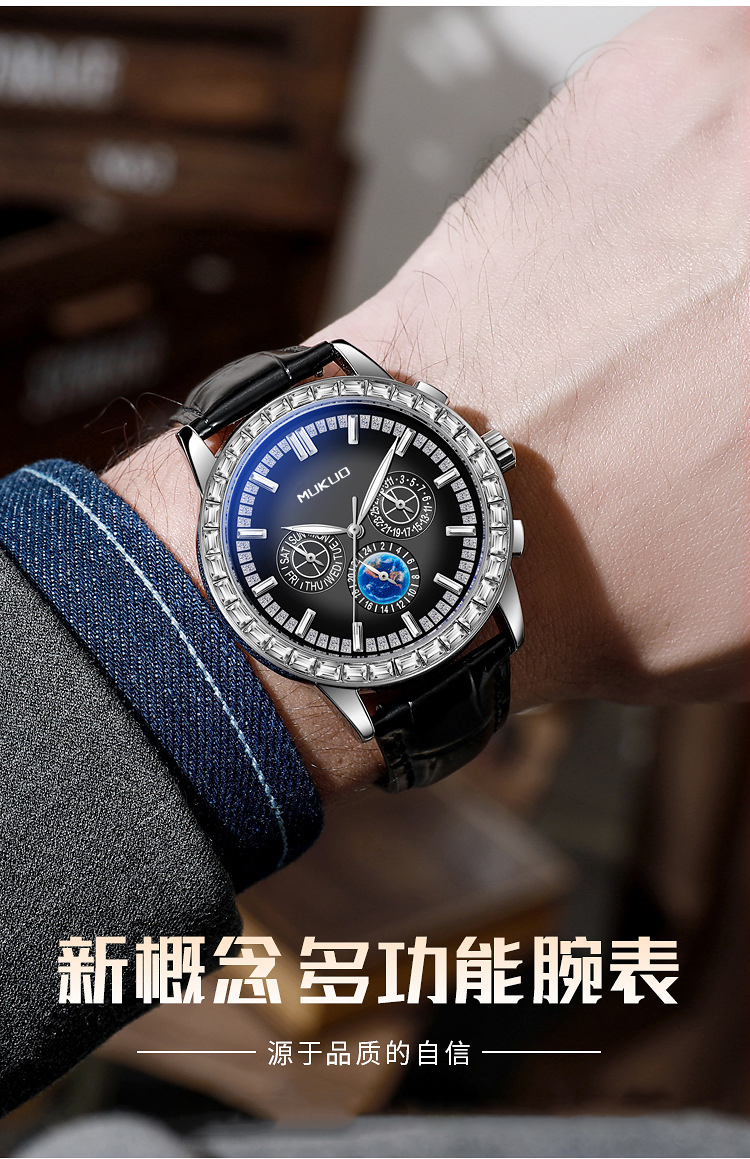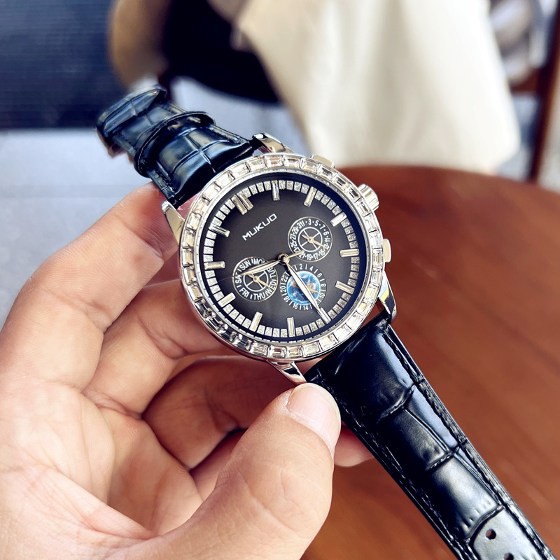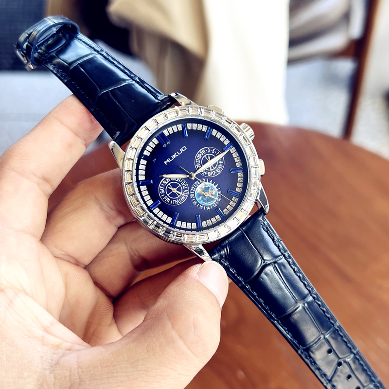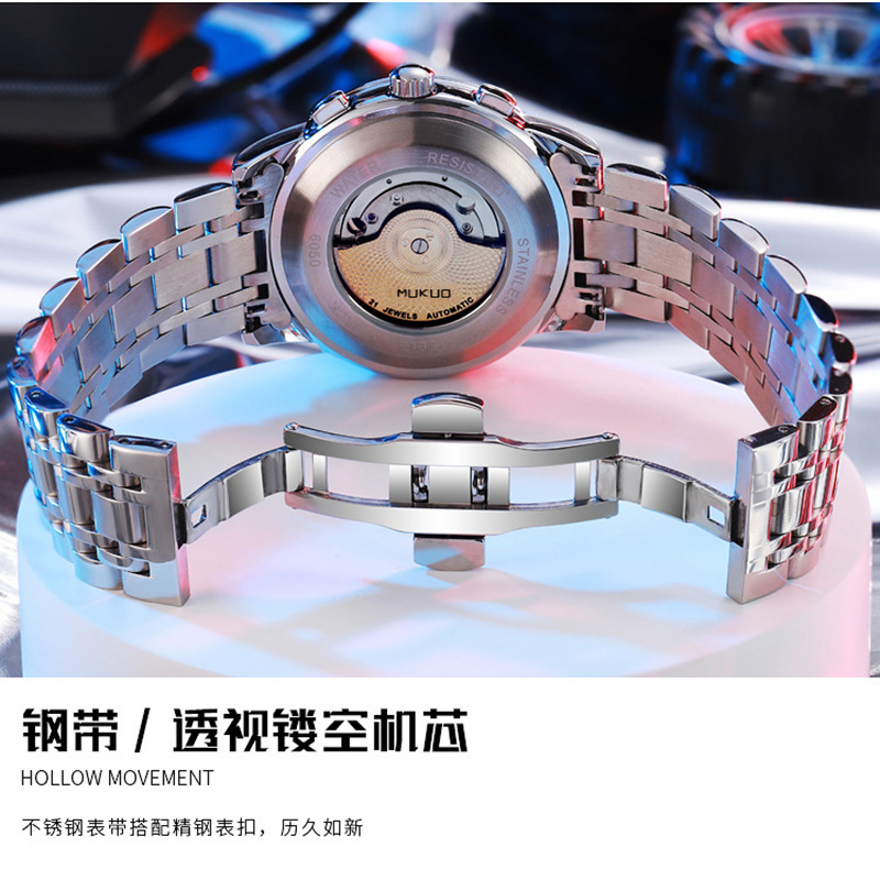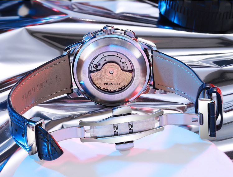 Механические механические часы, водонепроницаемые мужские часы, трендовый универсальный ремень, полностью автоматический, из натуральной кожи