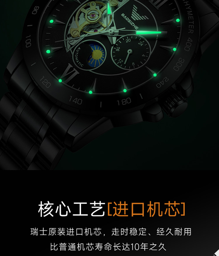 Швейцарские часы, мужские часы, мужские механические водонепроницаемые механические часы, полностью автоматический, Швейцария, оптика