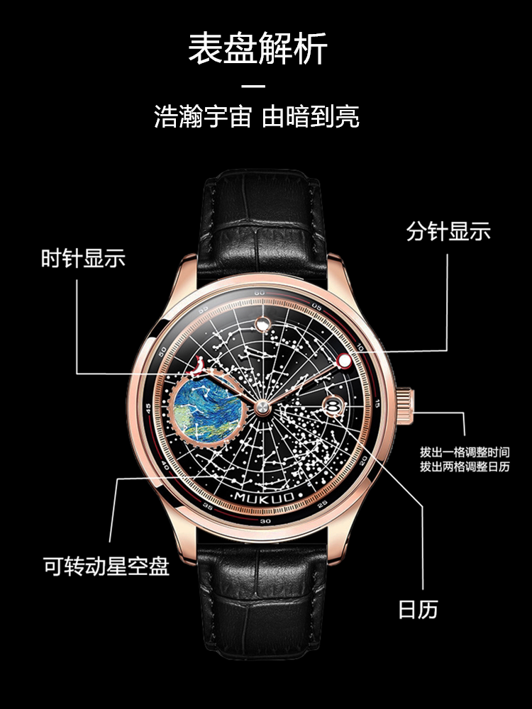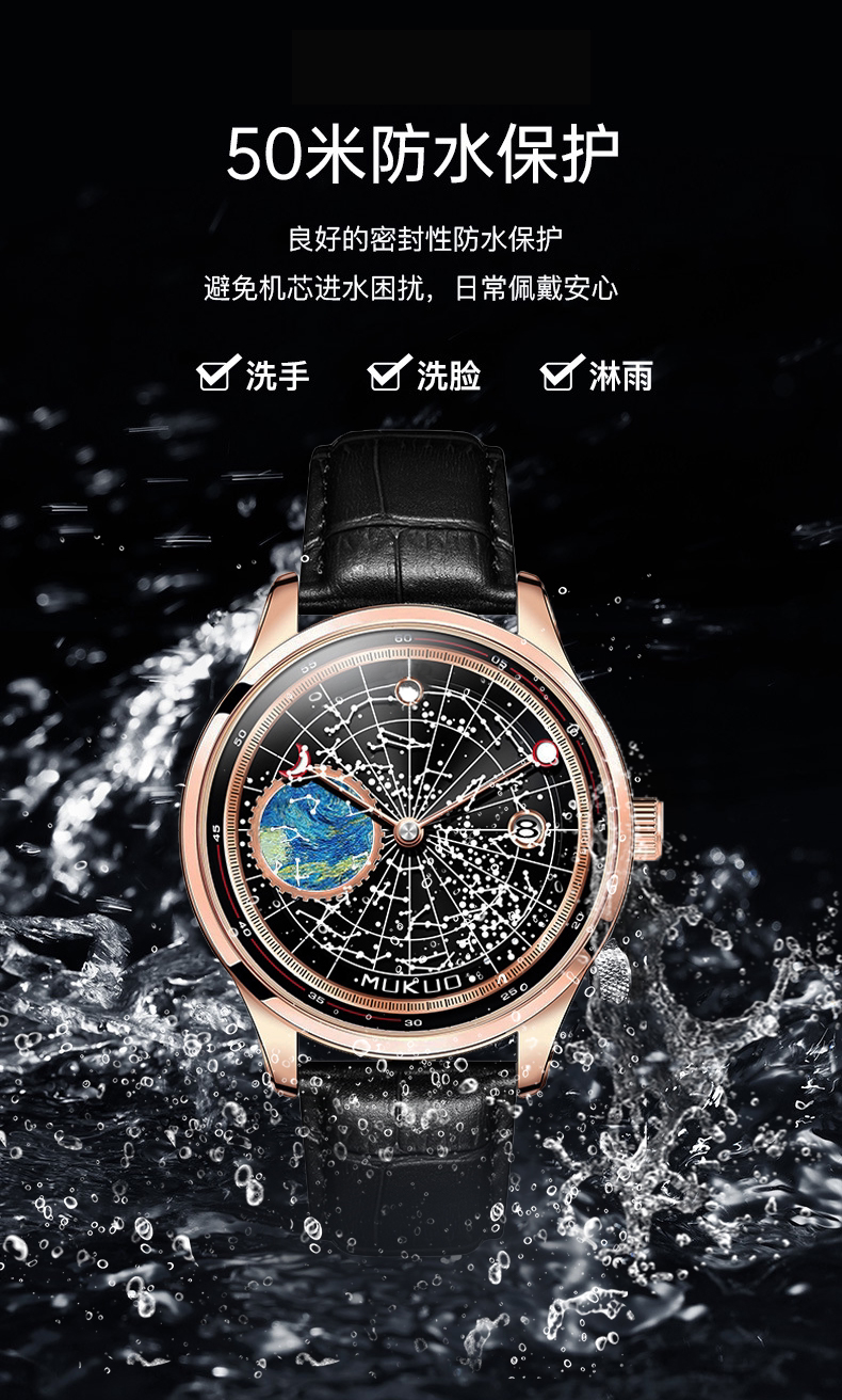 Элитные мужские часы, автоматические механические механические часы, водонепроницаемое звездное небо для школьников, европейский стиль, полностью автоматический