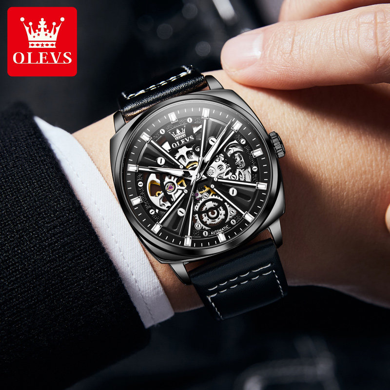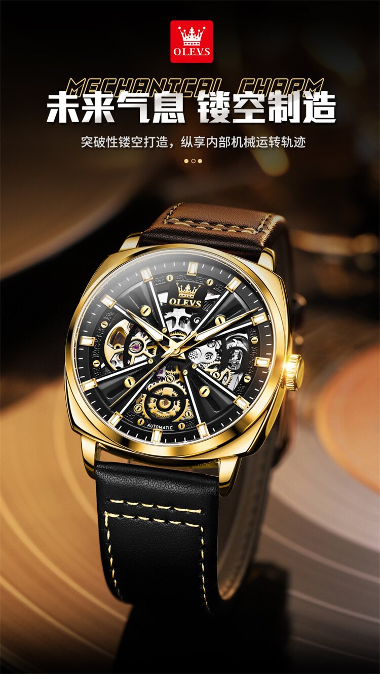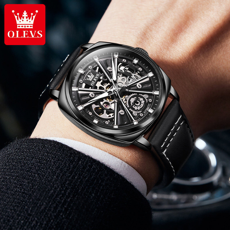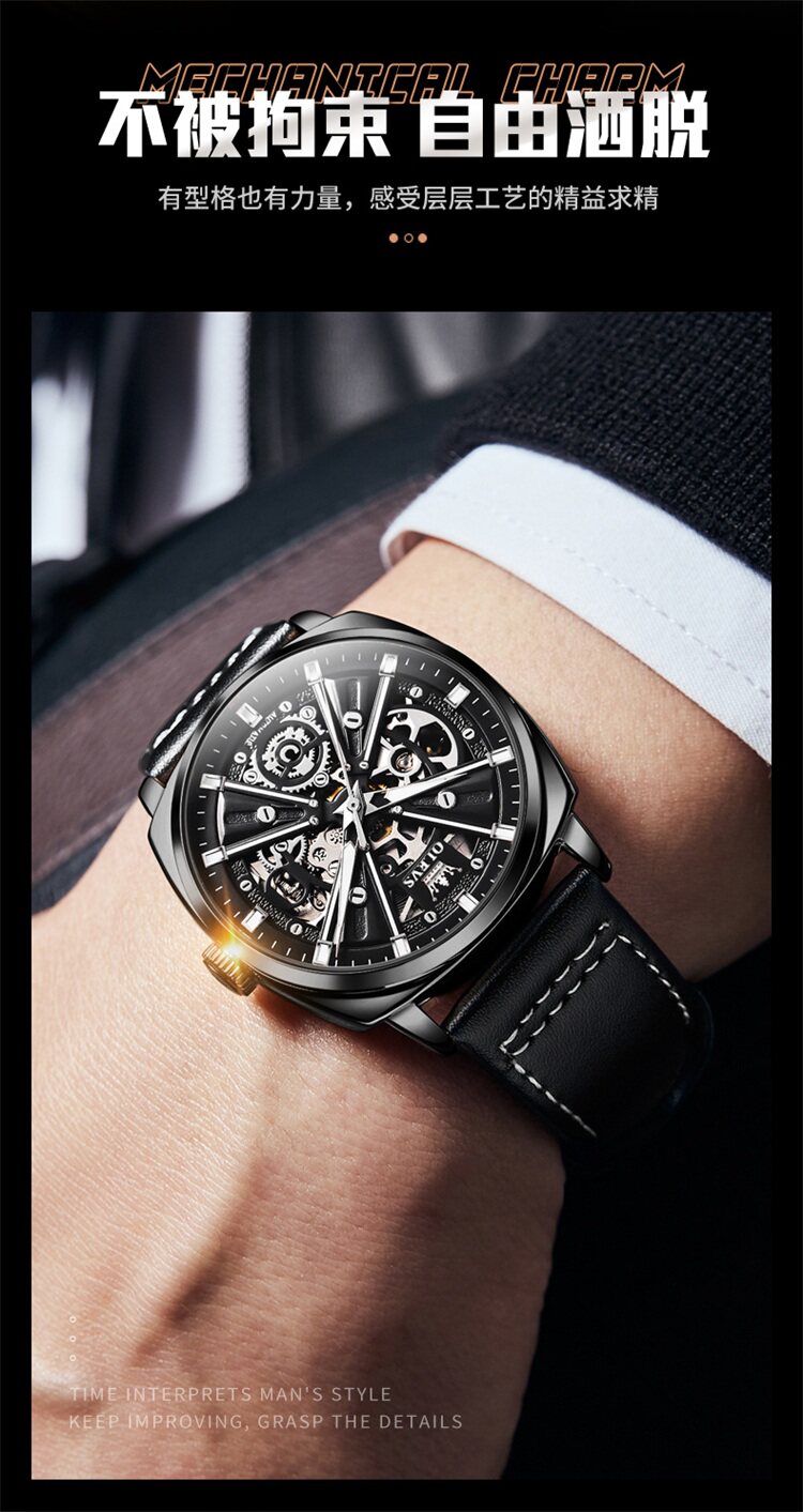 Швейцарские часы, мужские часы, механические водонепроницаемые квадратные механические часы, Швейцария, полностью автоматический, из натуральной кожи
