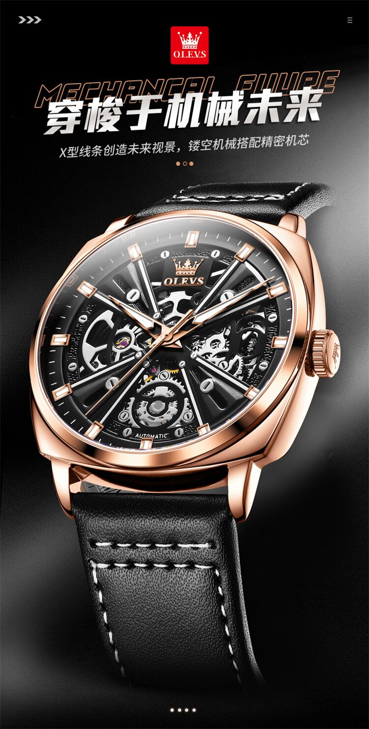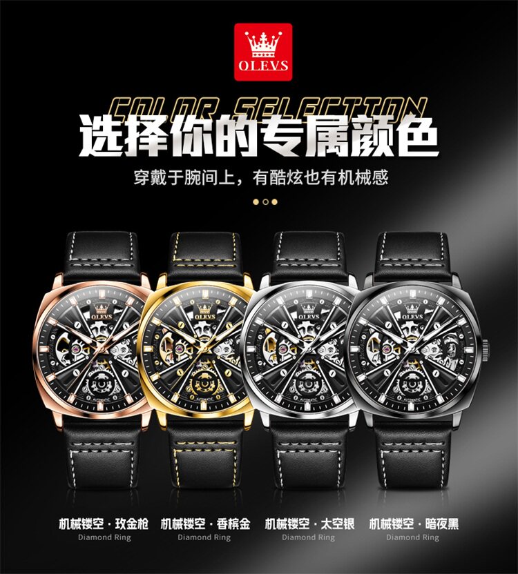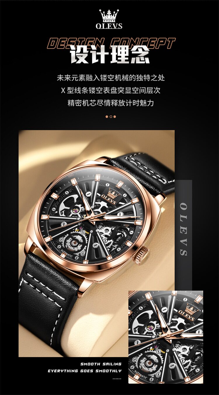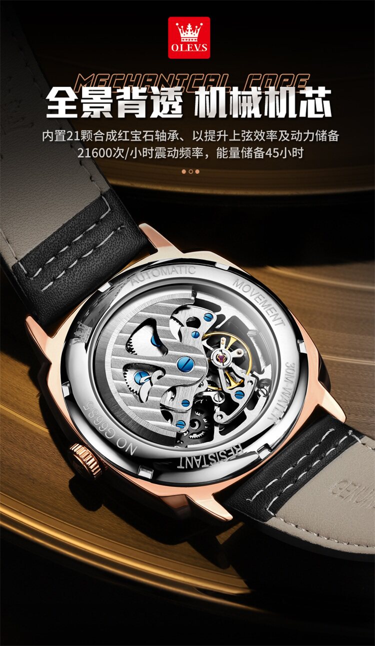 Швейцарские часы, мужские часы, механические водонепроницаемые квадратные механические часы, Швейцария, полностью автоматический, из натуральной кожи