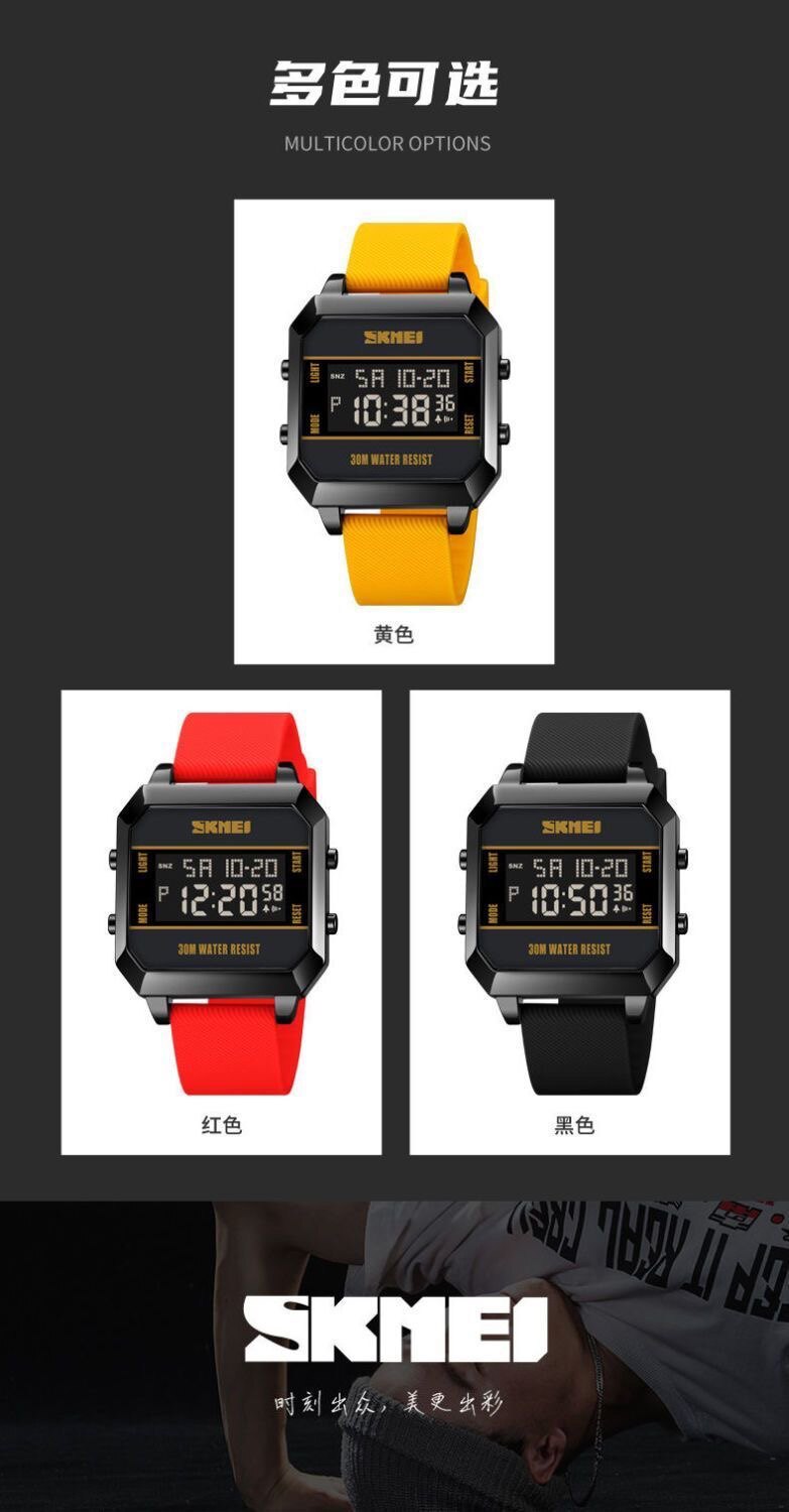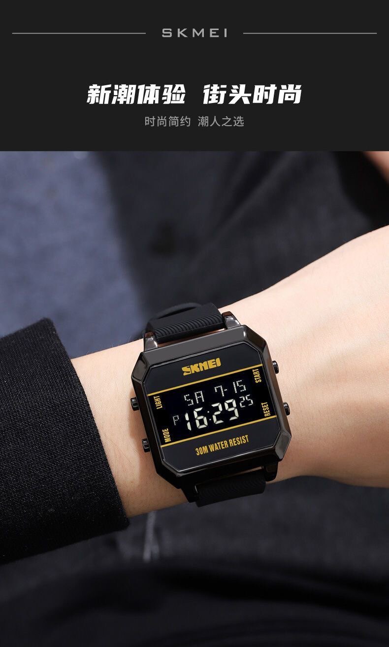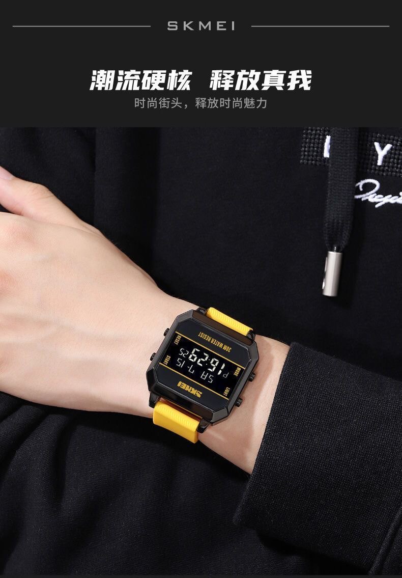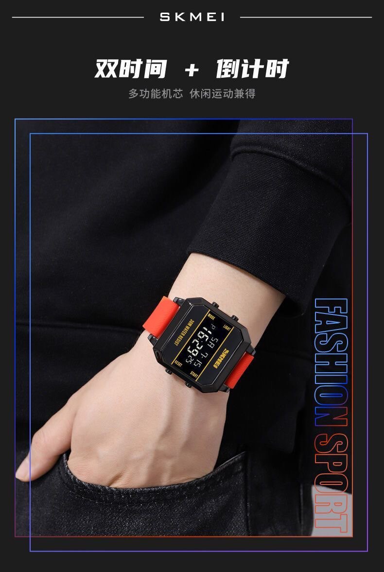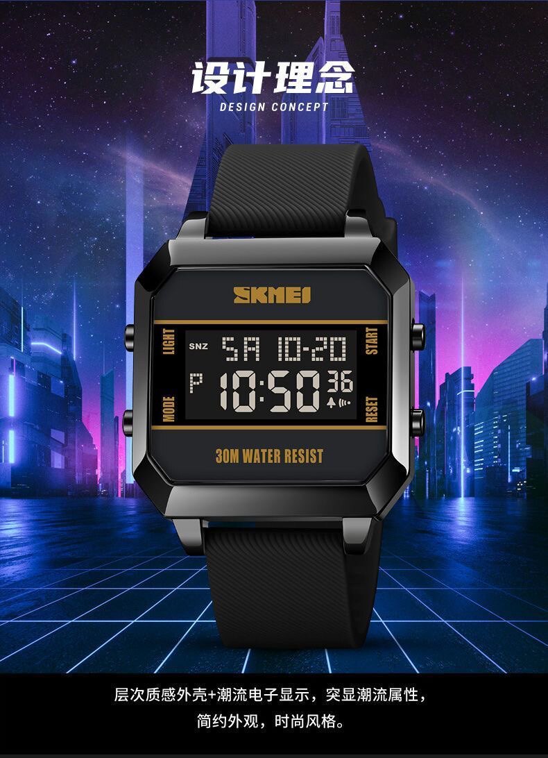 Модные трендовые квадратные водонепроницаемые цифровые часы, мужские часы