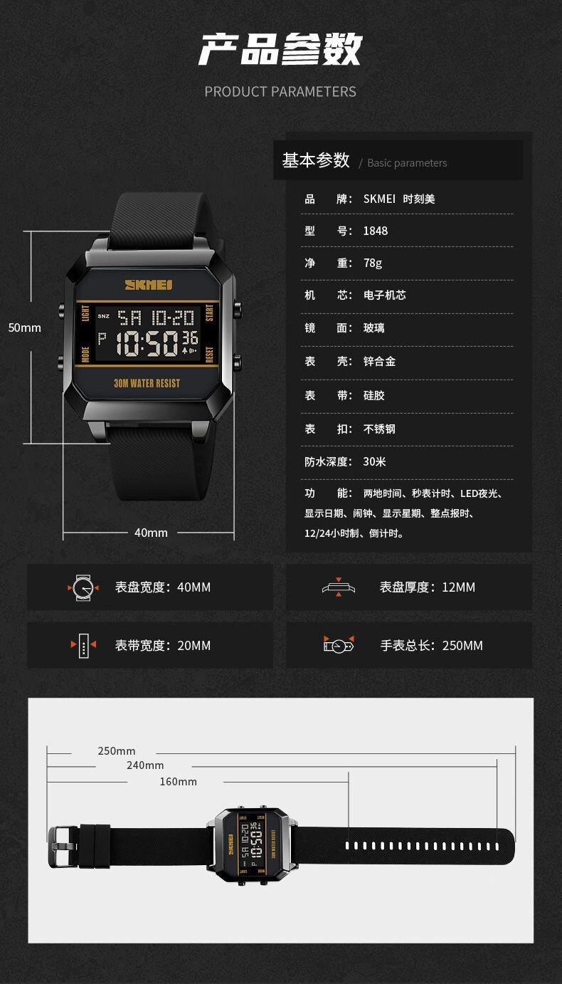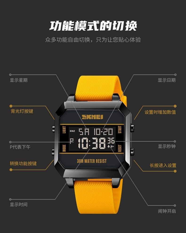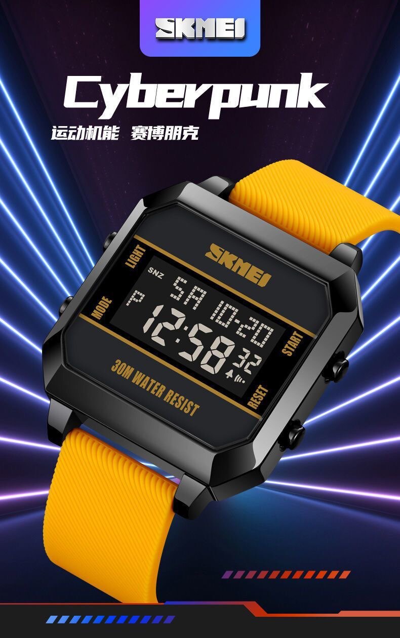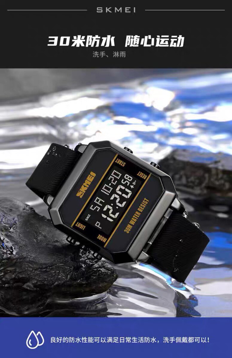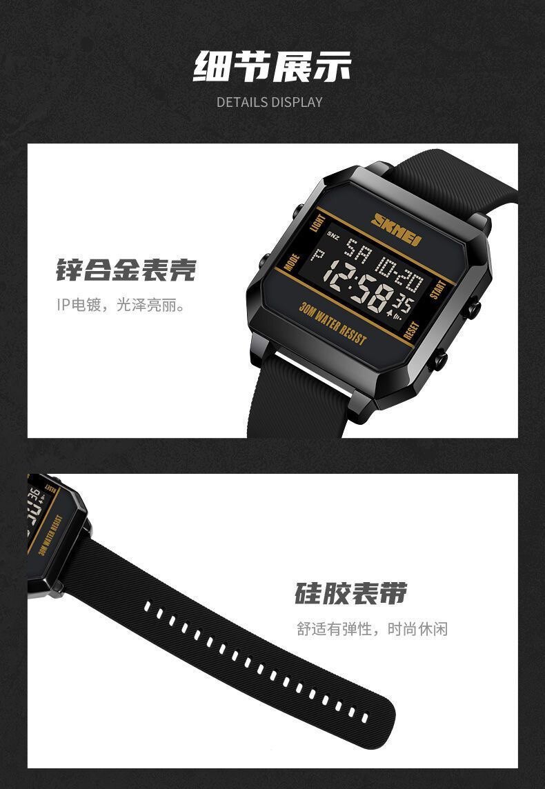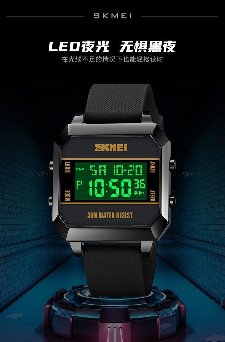 Модные трендовые квадратные водонепроницаемые цифровые часы, мужские часы