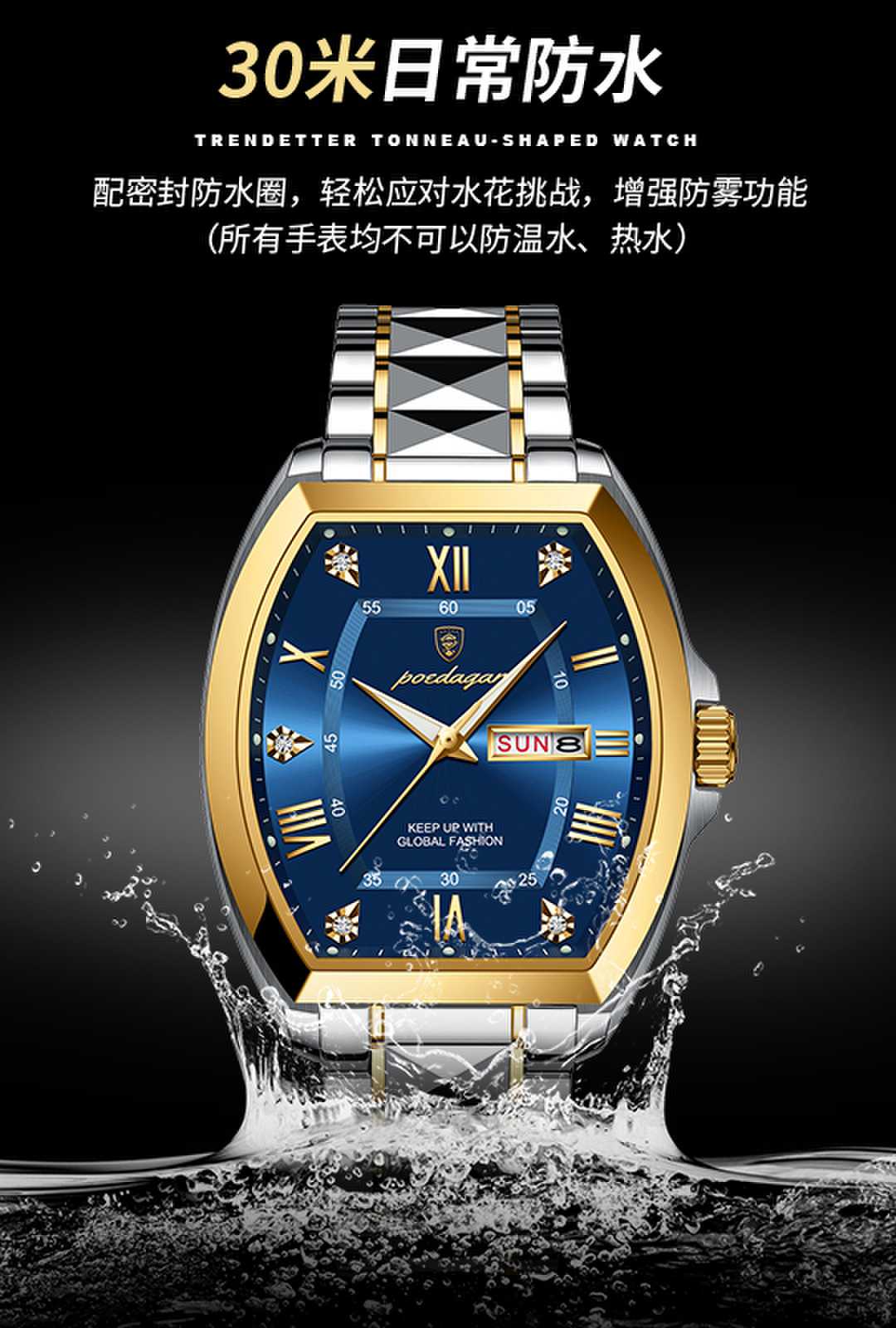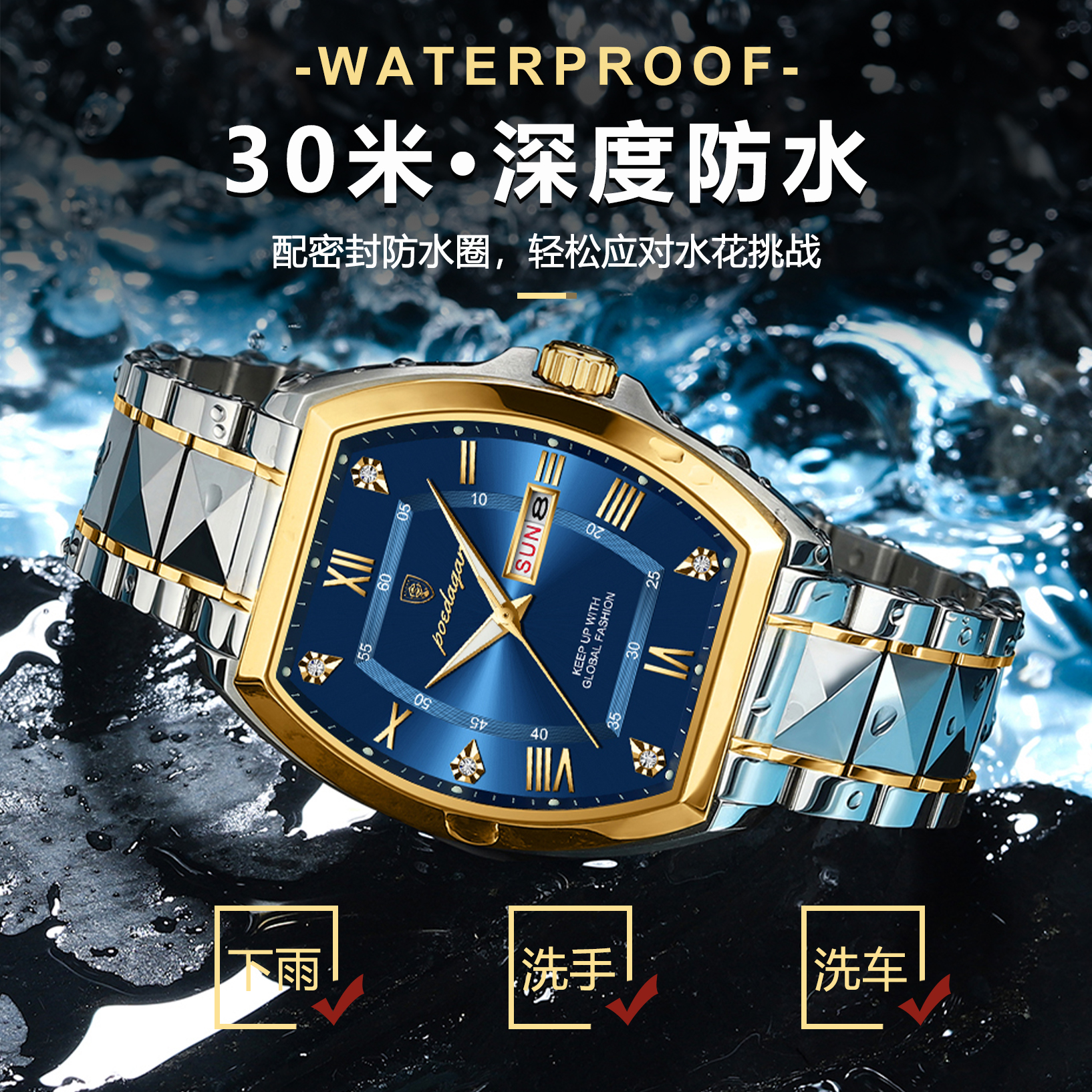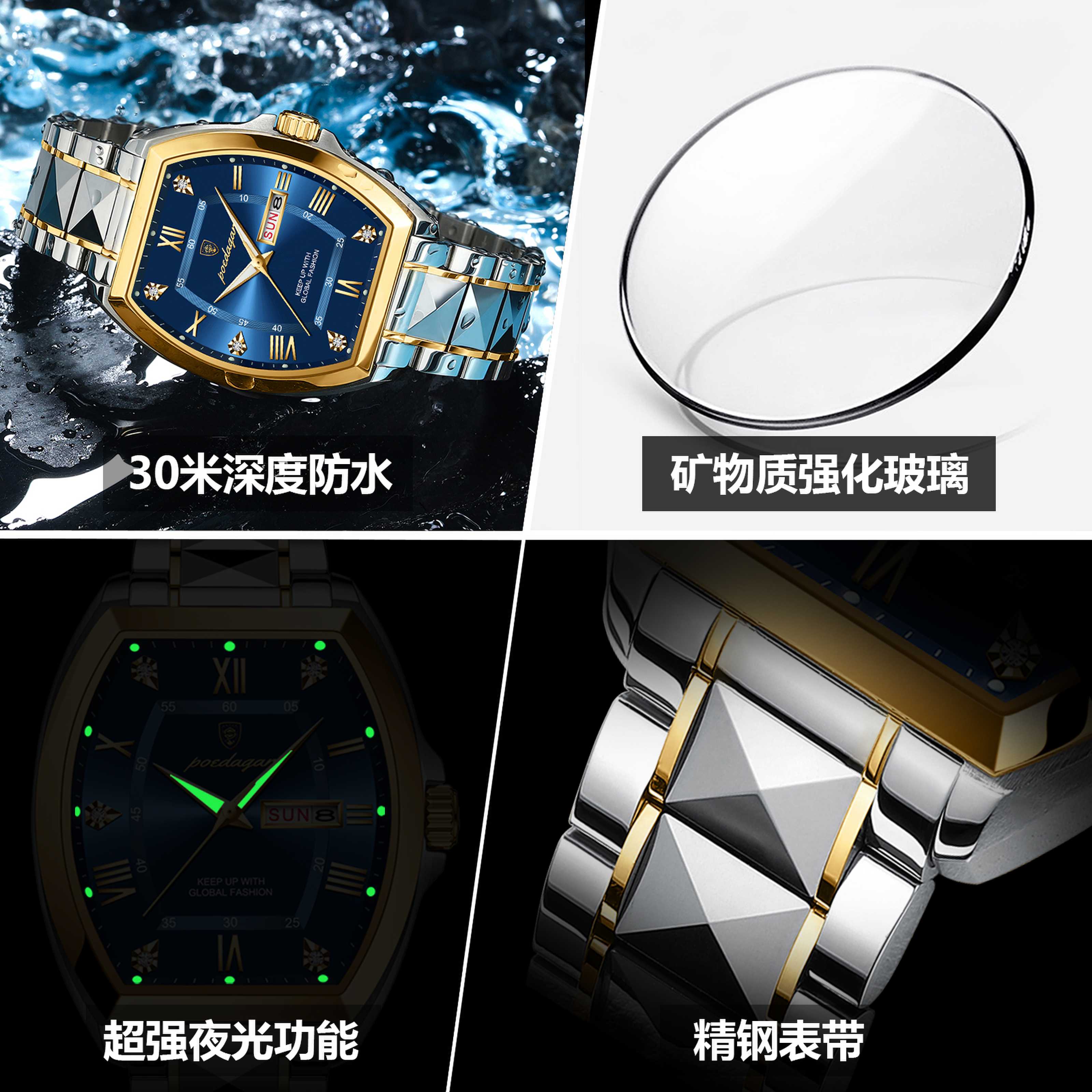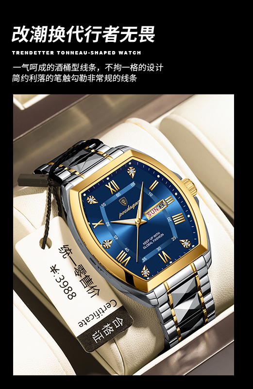 Механические водонепроницаемые швейцарские часы, модный календарь, мужские часы, Швейцария, полностью автоматический